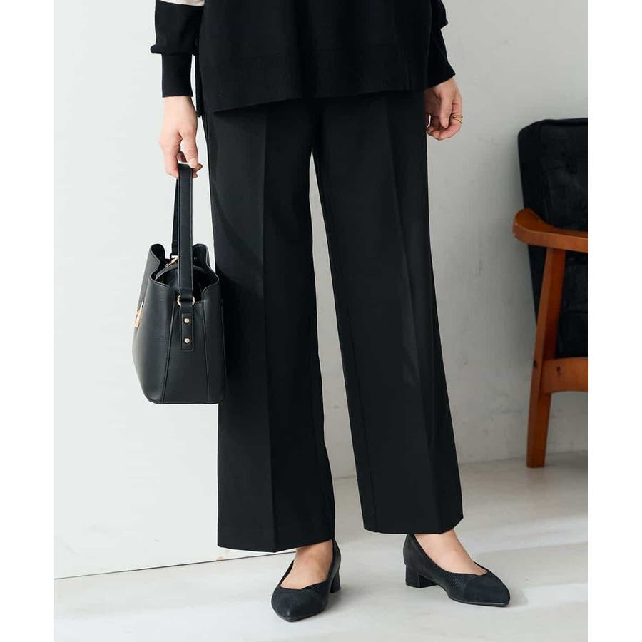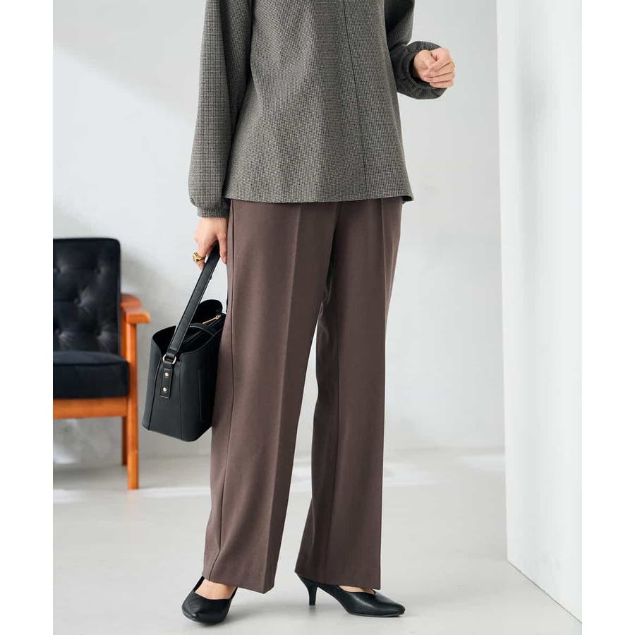 【イージーケア/洗える/ストレッチ】裏起毛美ラクるスッキリ見えストレートパンツ