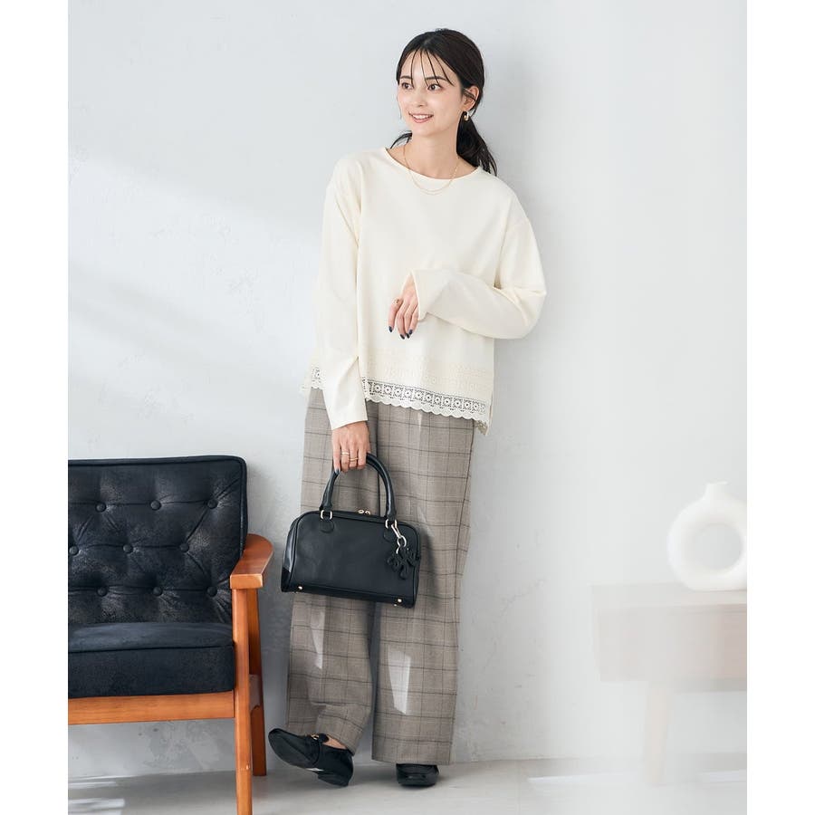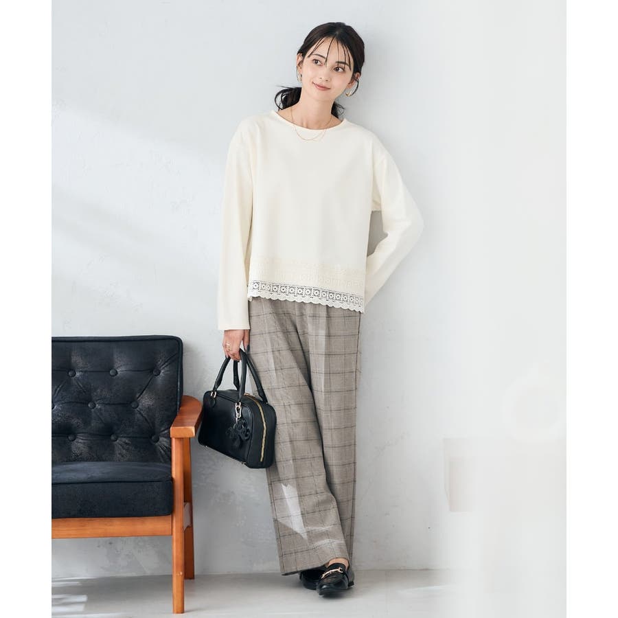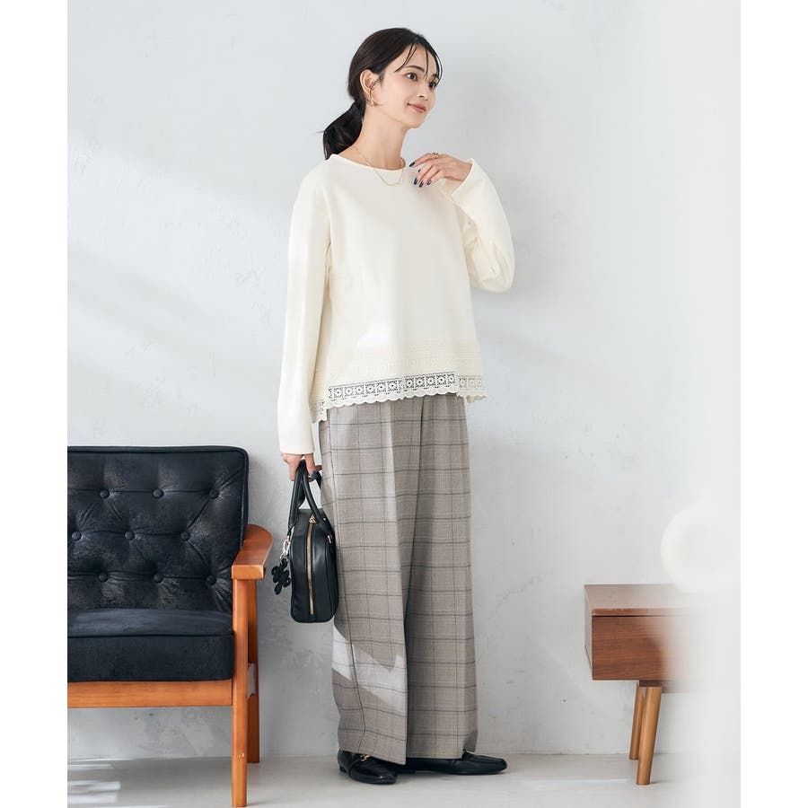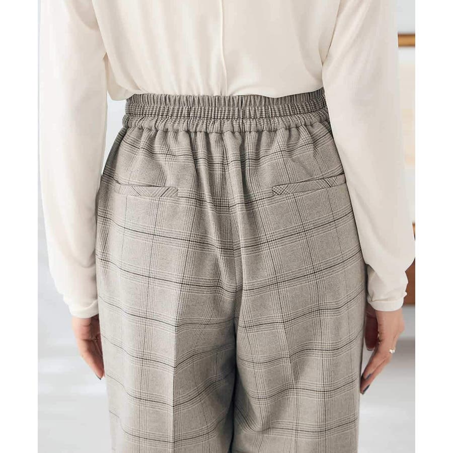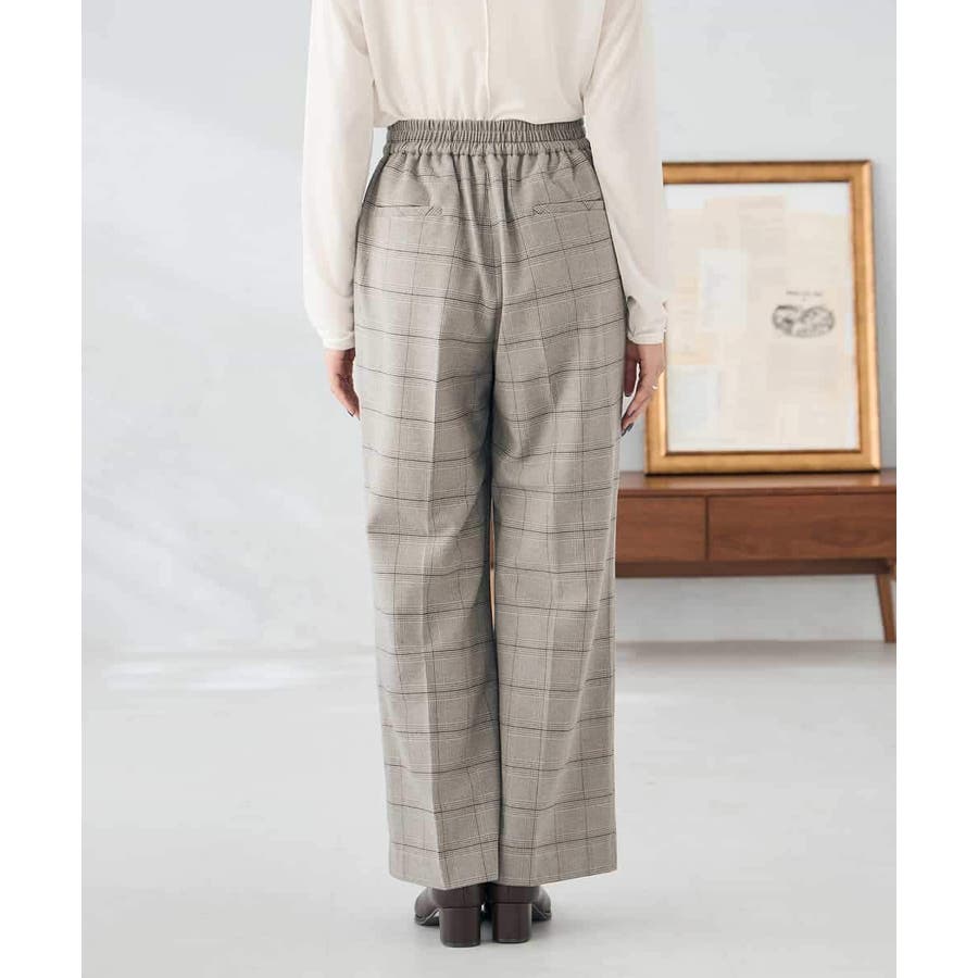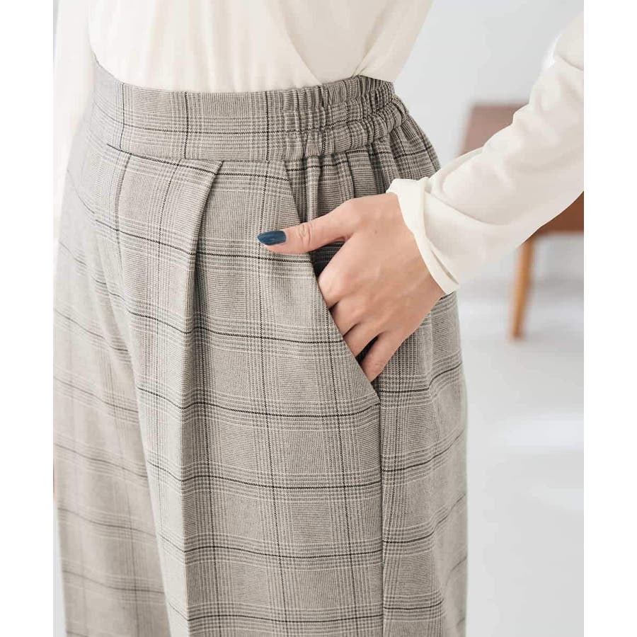 裏起毛美ラクるスッキリ見えチェックワイドパンツ