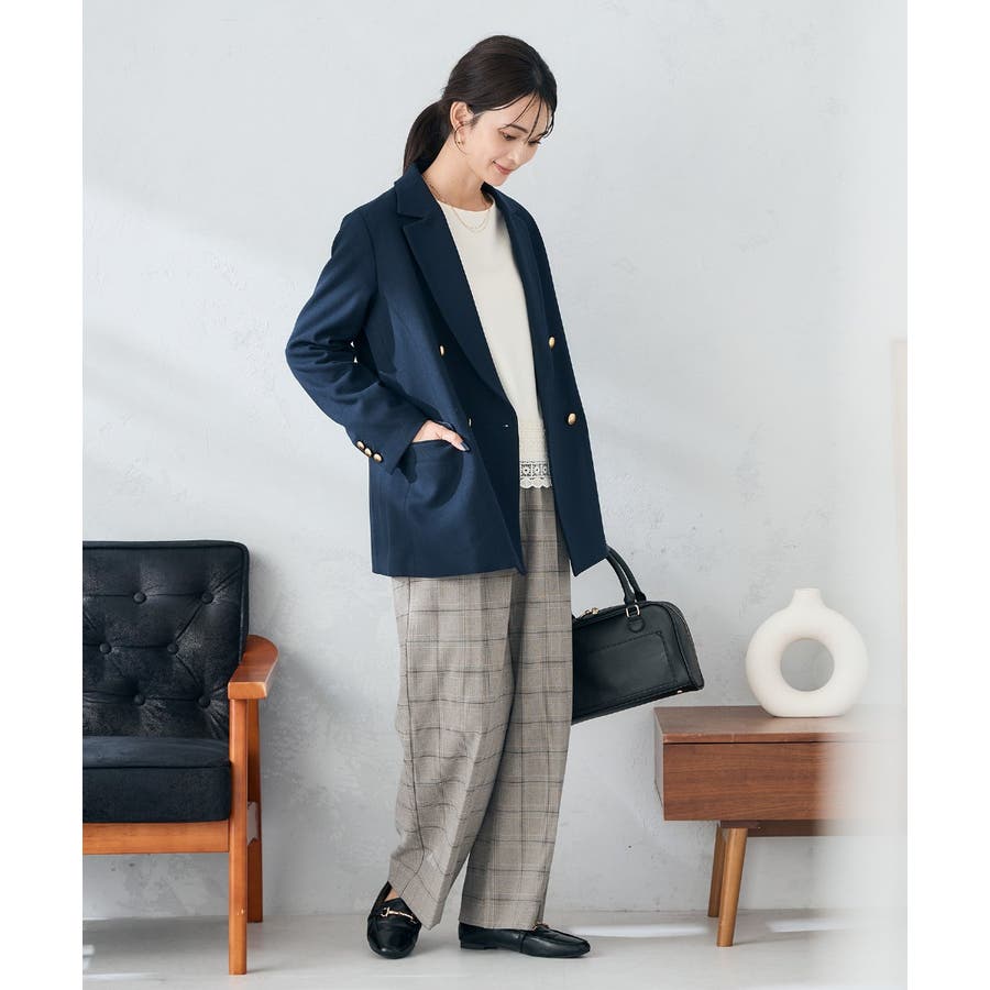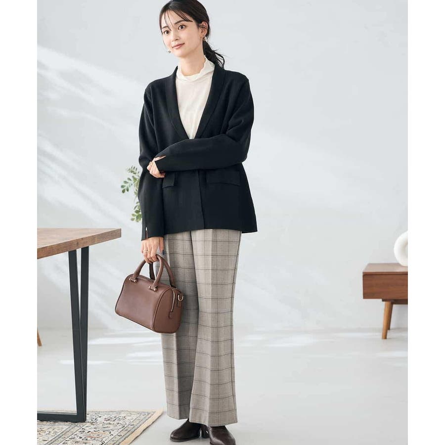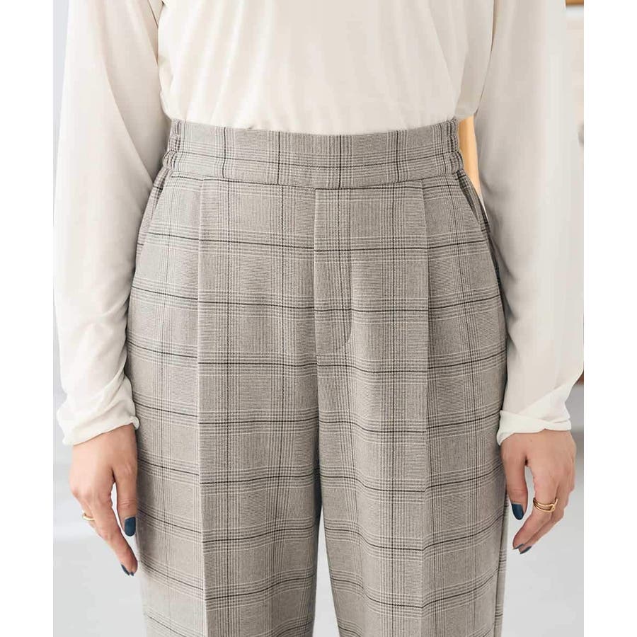 ◆裏起毛美ラクるスッキリ見えチェックテーパードパンツ: