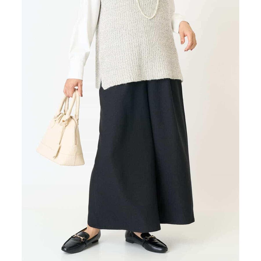 ・スカートライクなシルエットで女性らしく穿けるワイドフレアパンツ