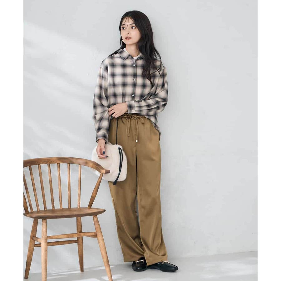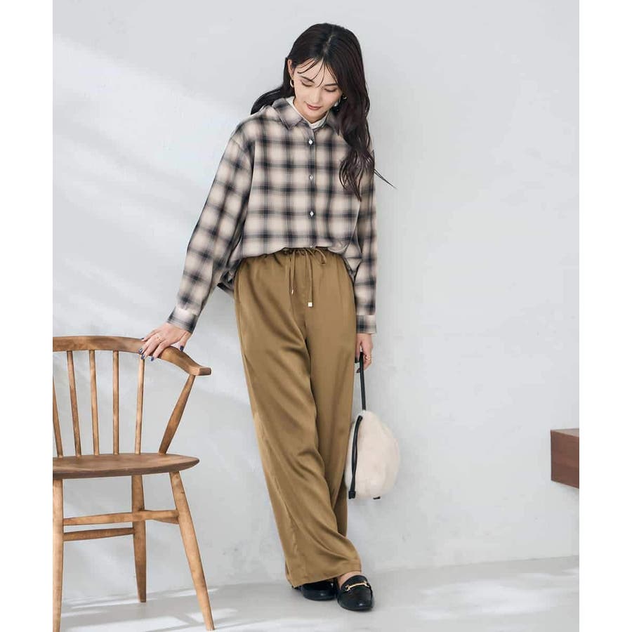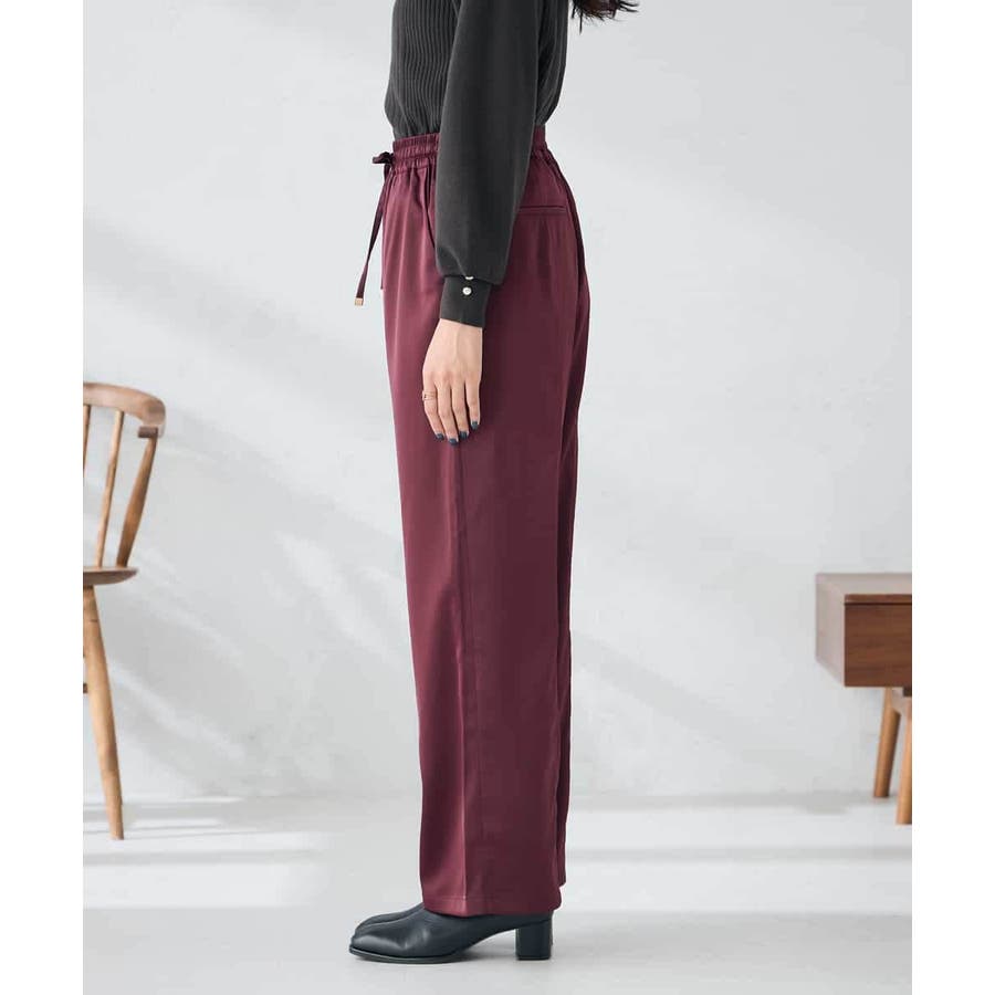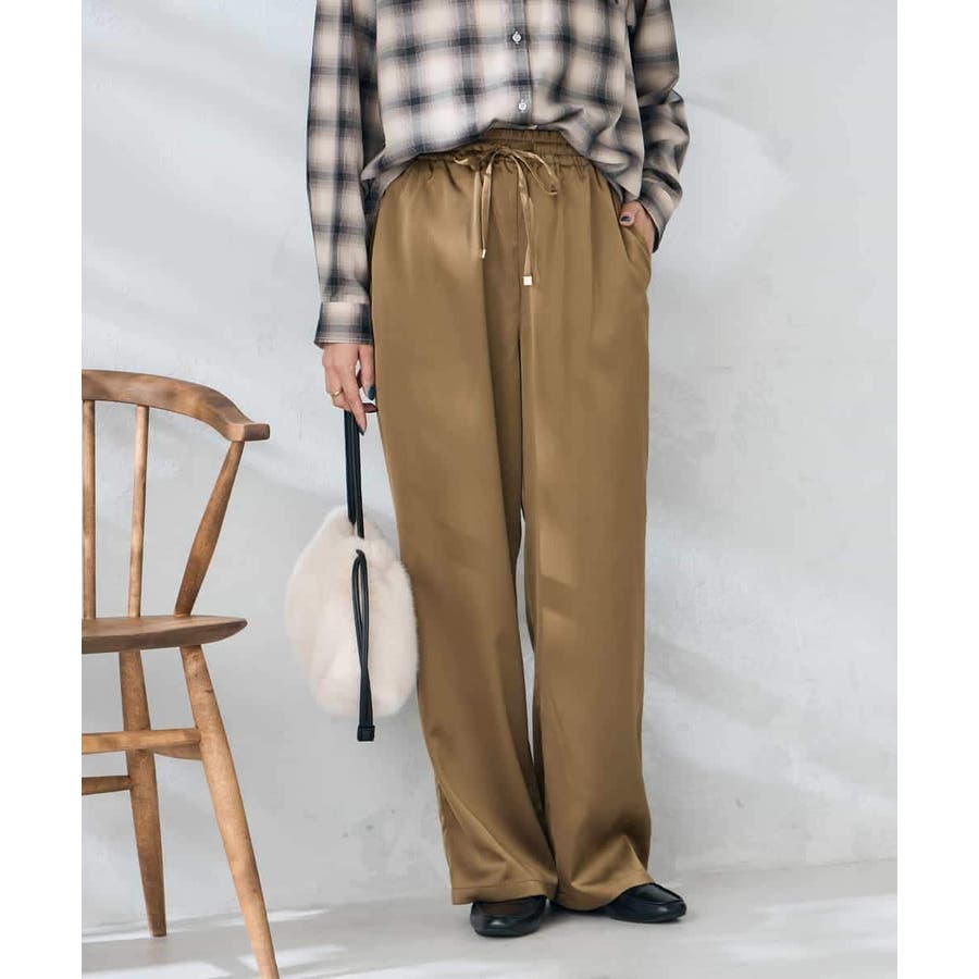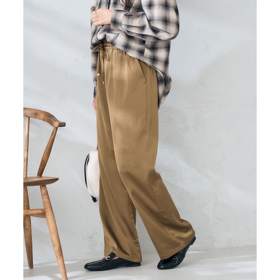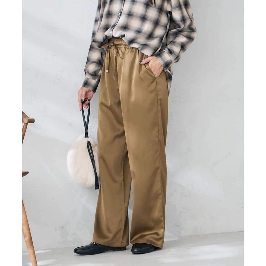 ・落ち感と艶感が美しいサテン素材を使用したリラックスパンツ