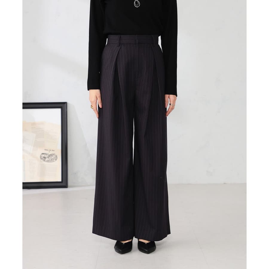 ストライプタックワイドパンツ