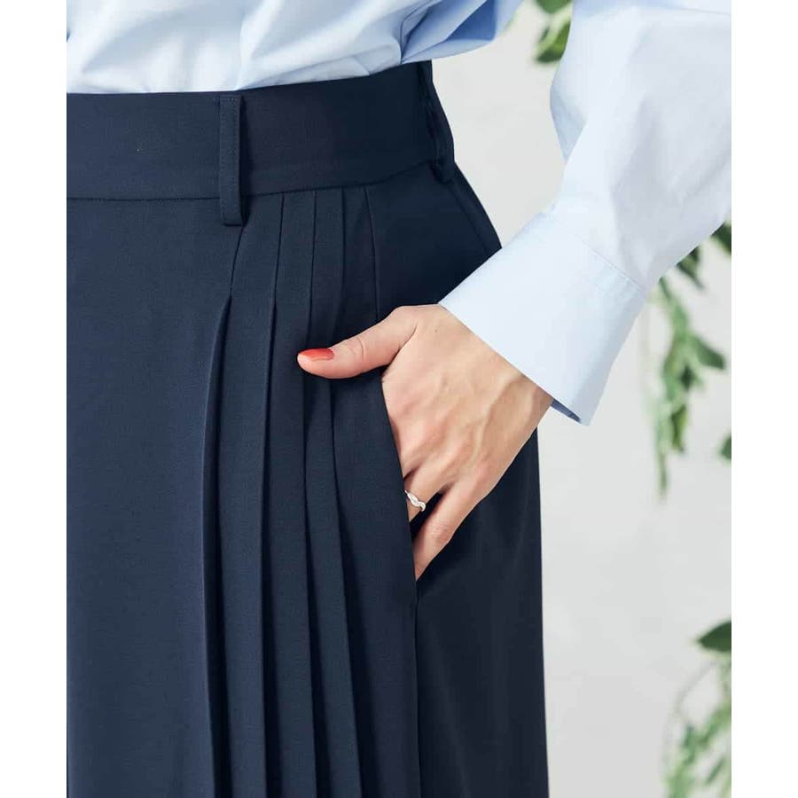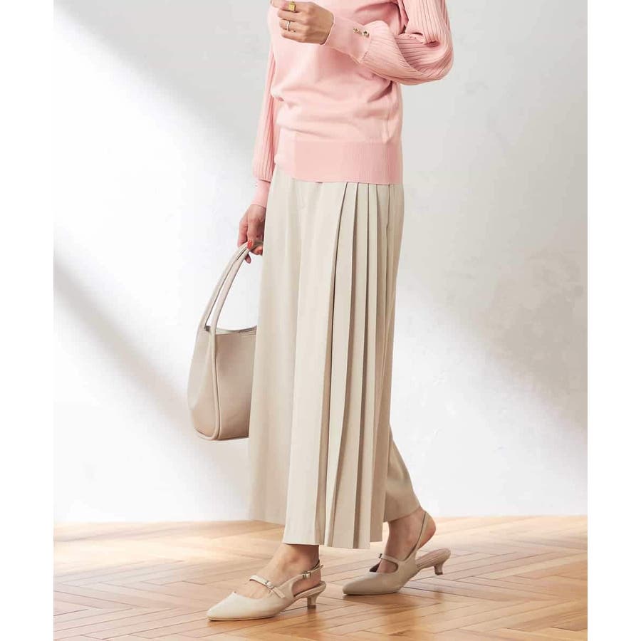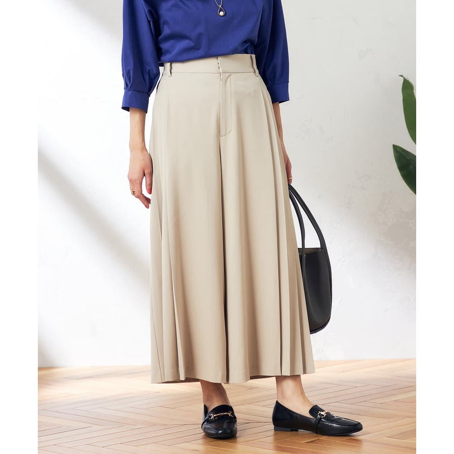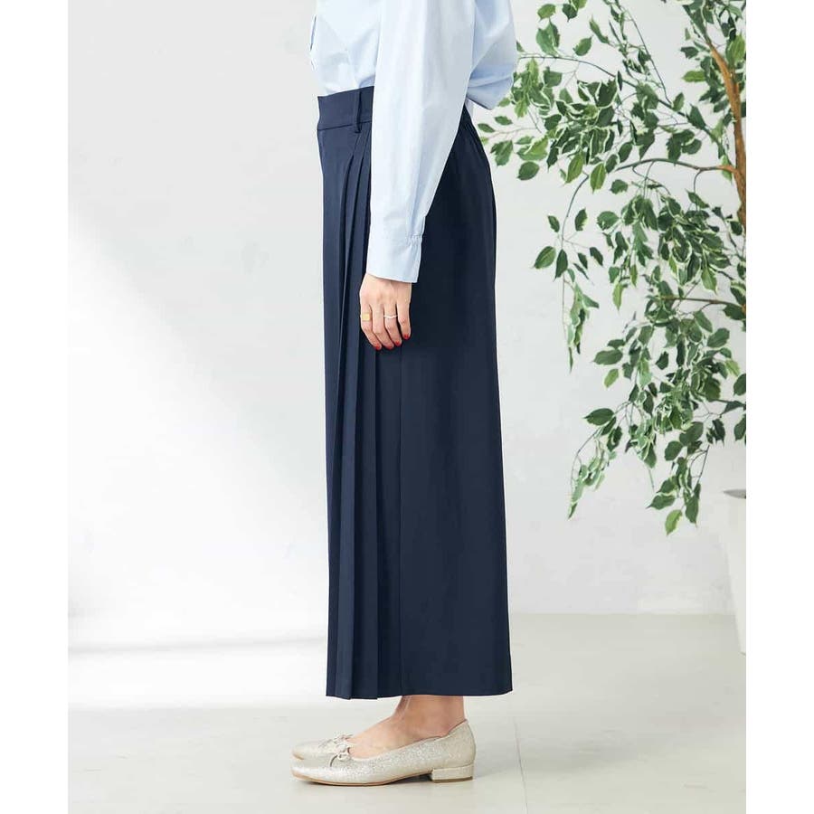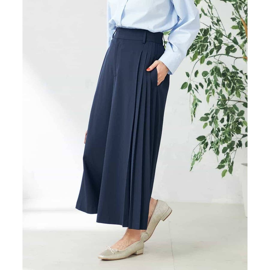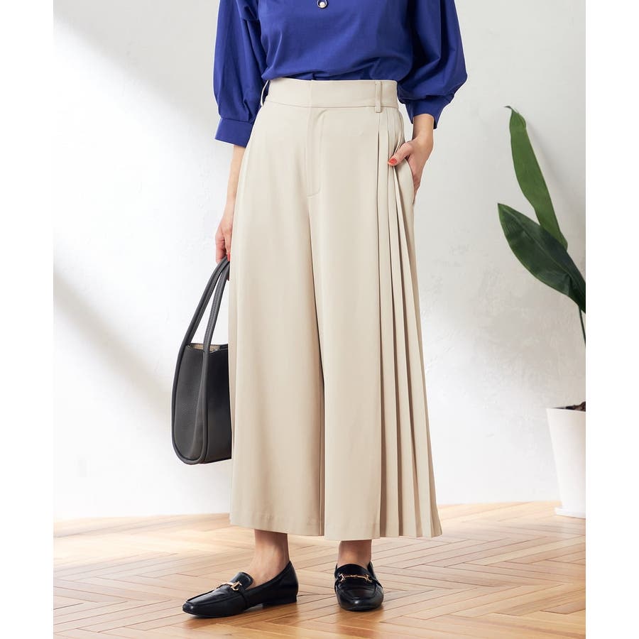 【洗える/ストレッチ】サイドプリーツワイドパンツ