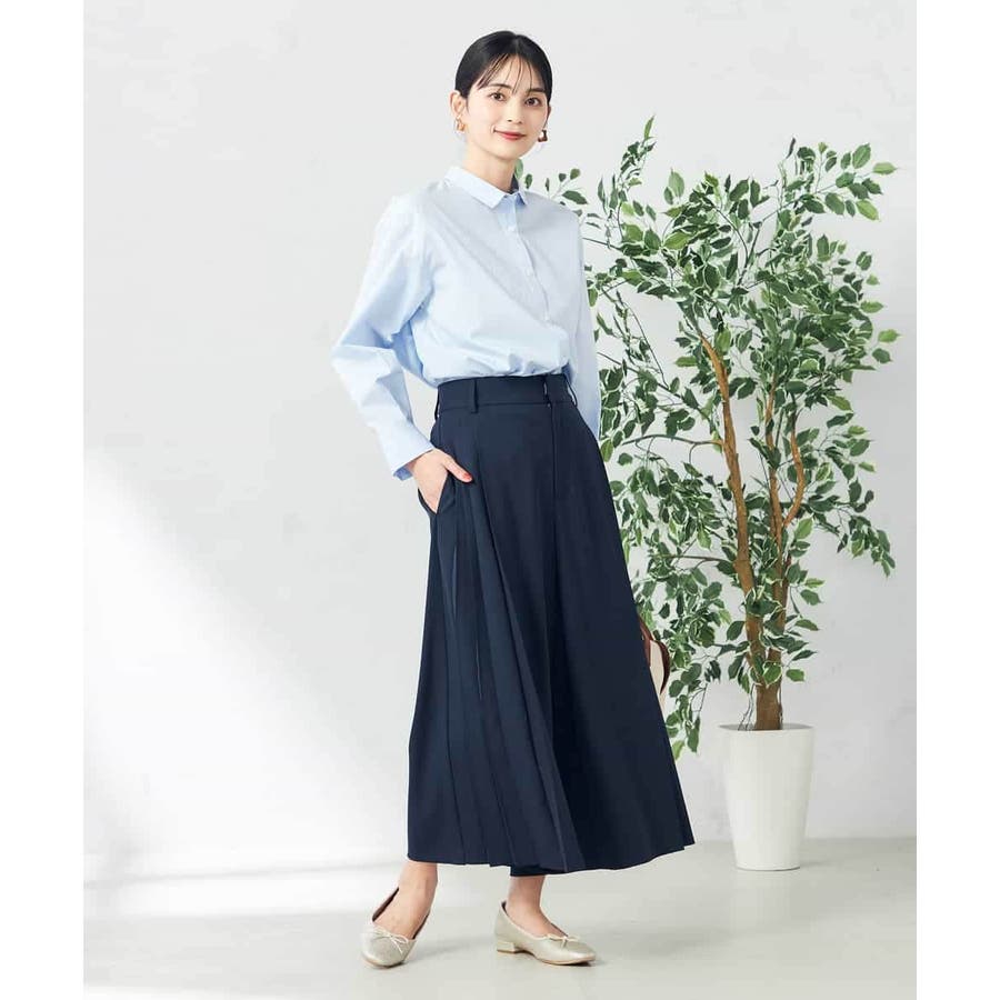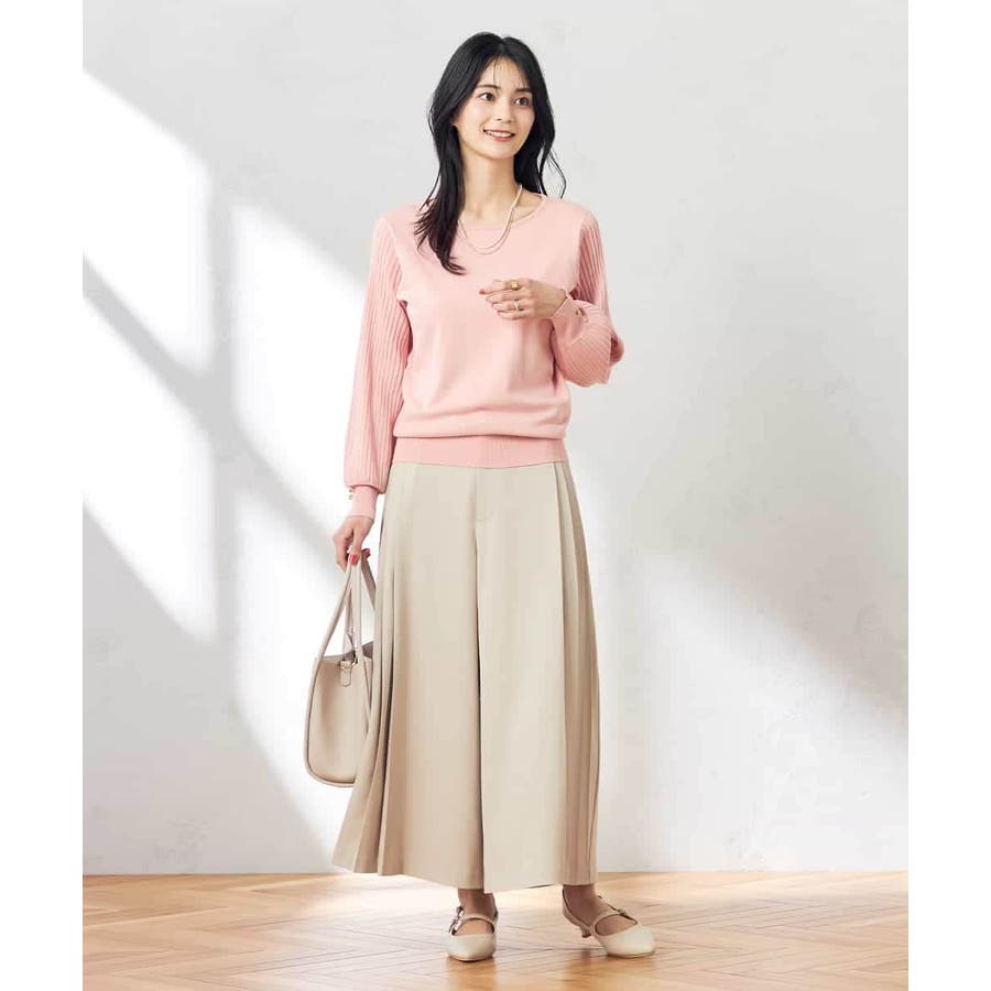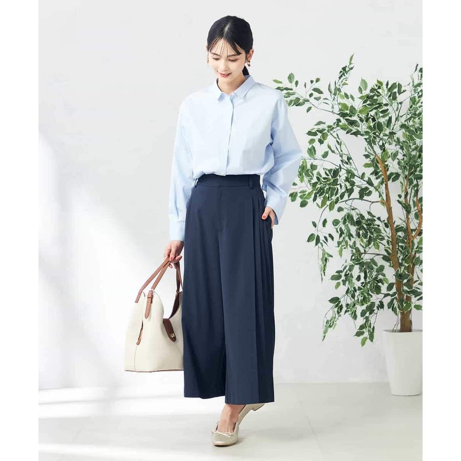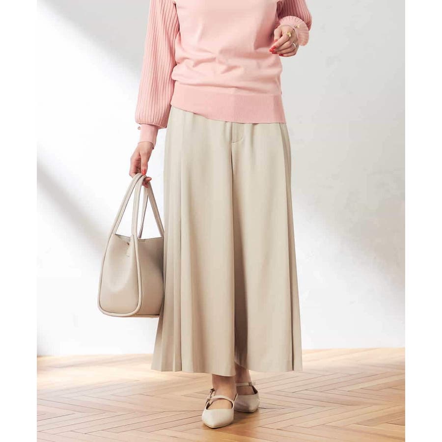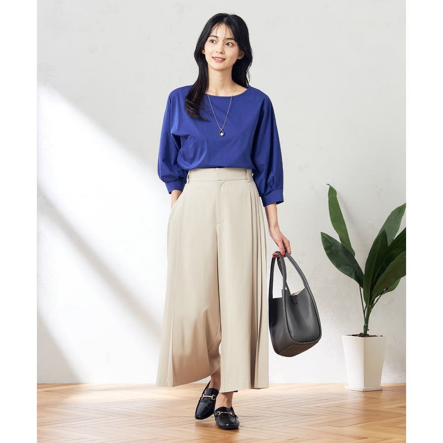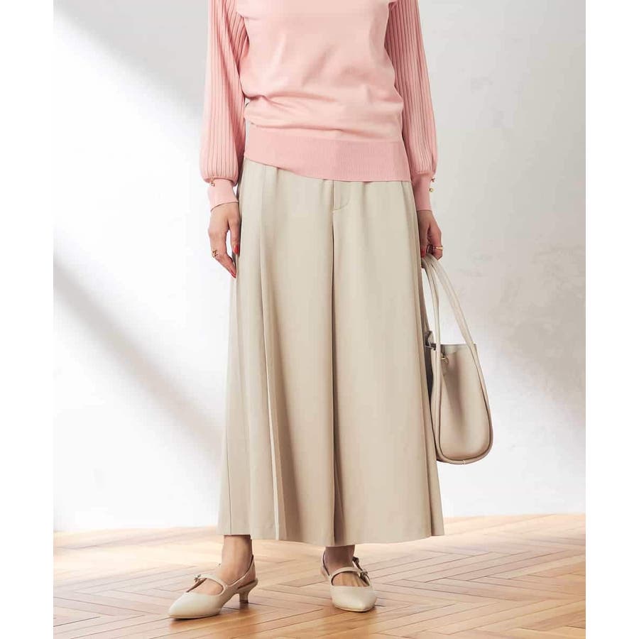 【洗える/ストレッチ】サイドプリーツワイドパンツ