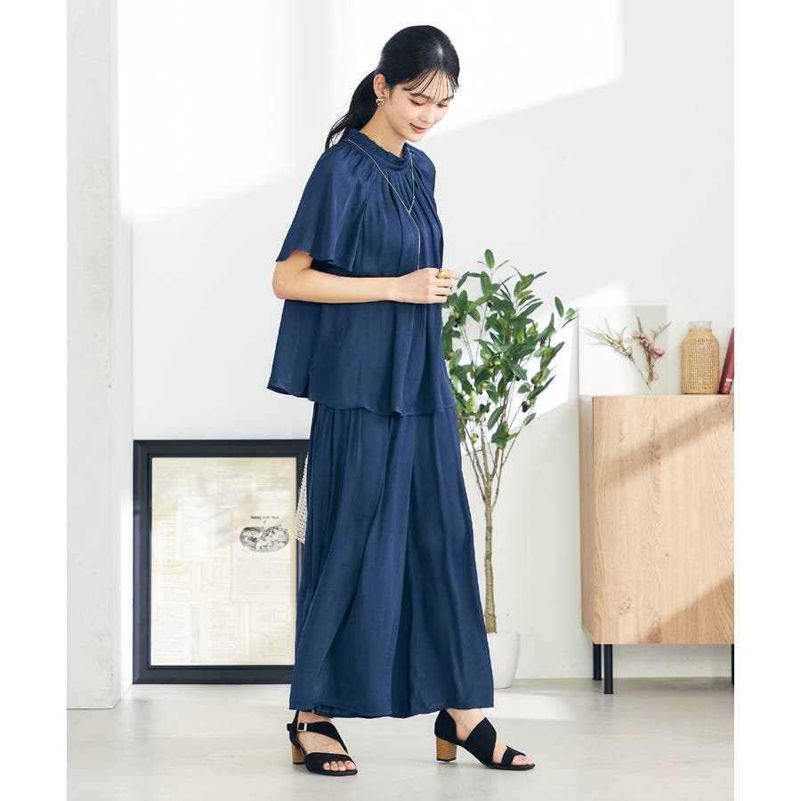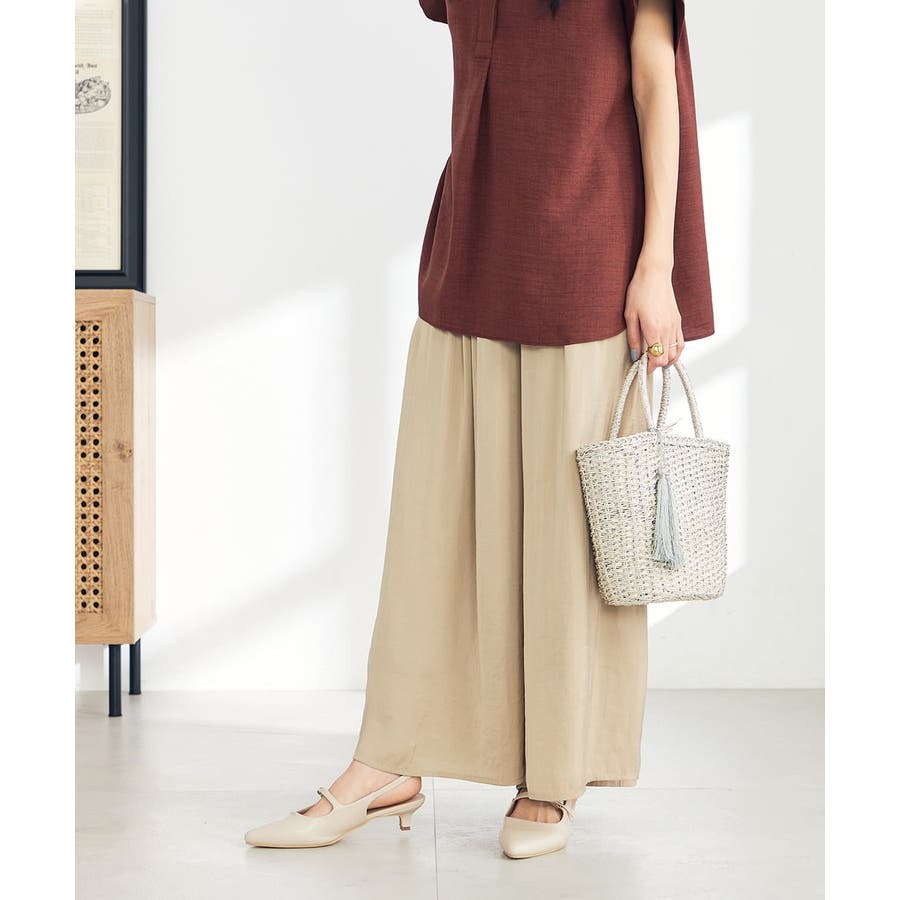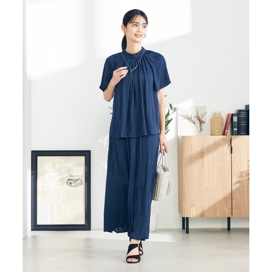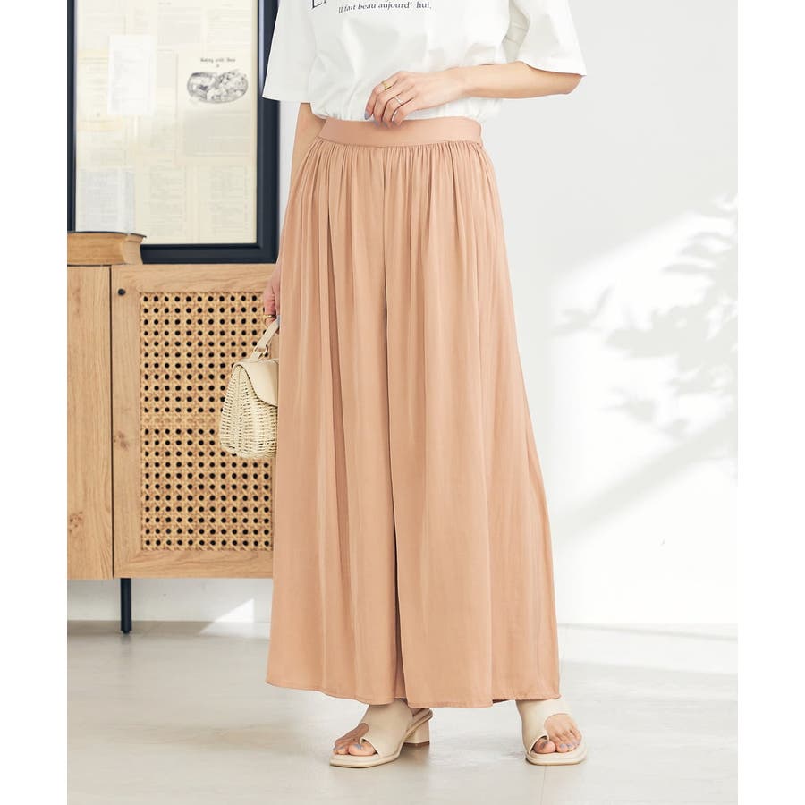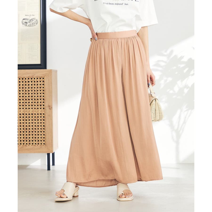 【洗える/セットアップ対応可】サテンギャザースカンツ