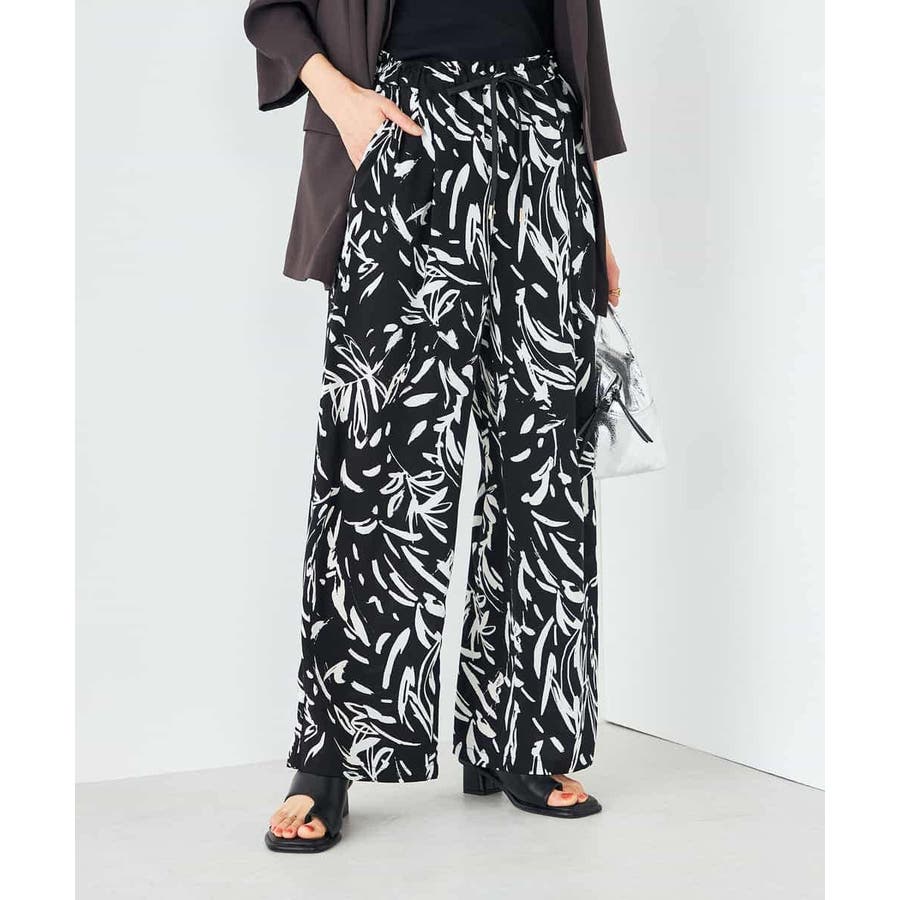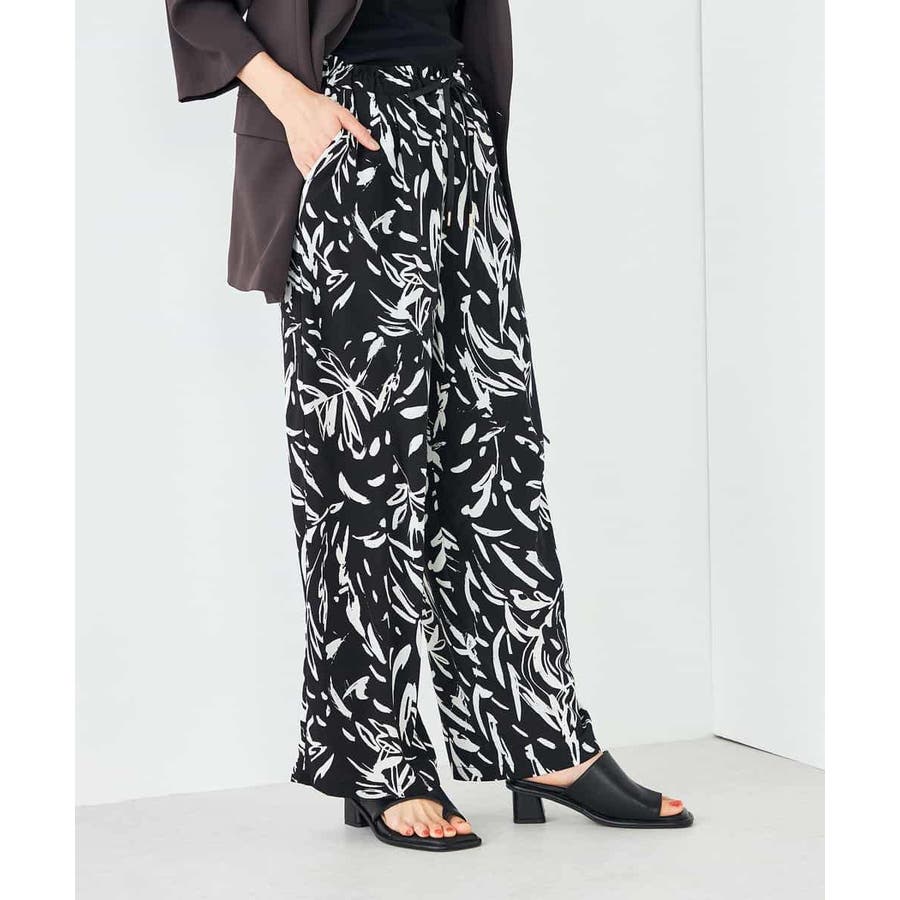 ・ダイナミックなリーフ幾何柄をプリントしたイージーパンツ