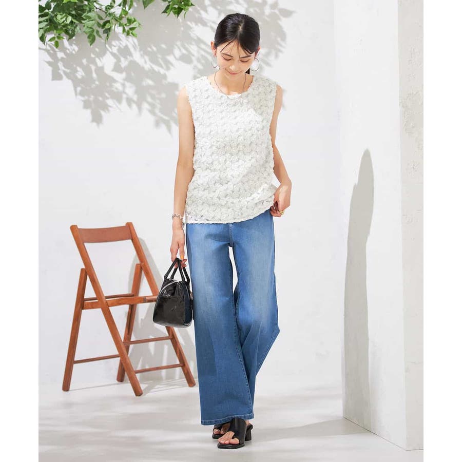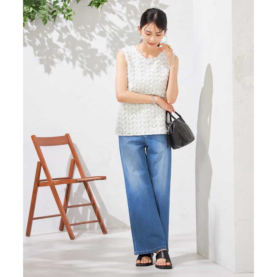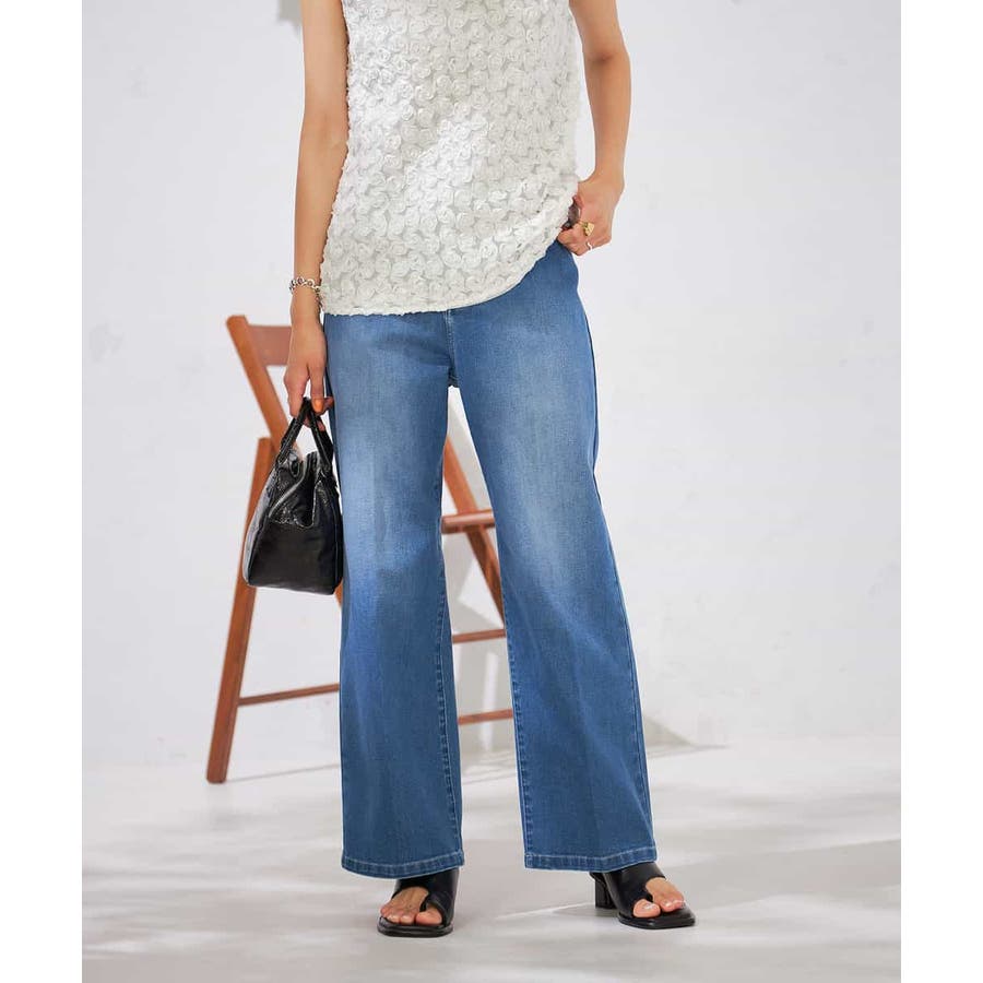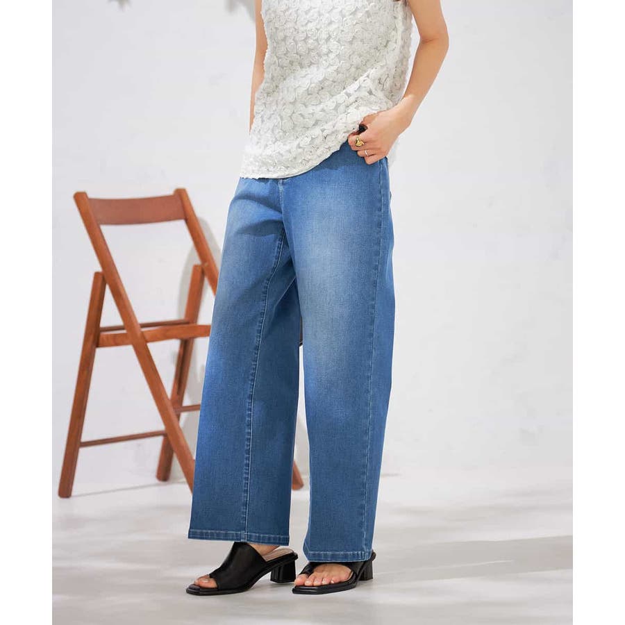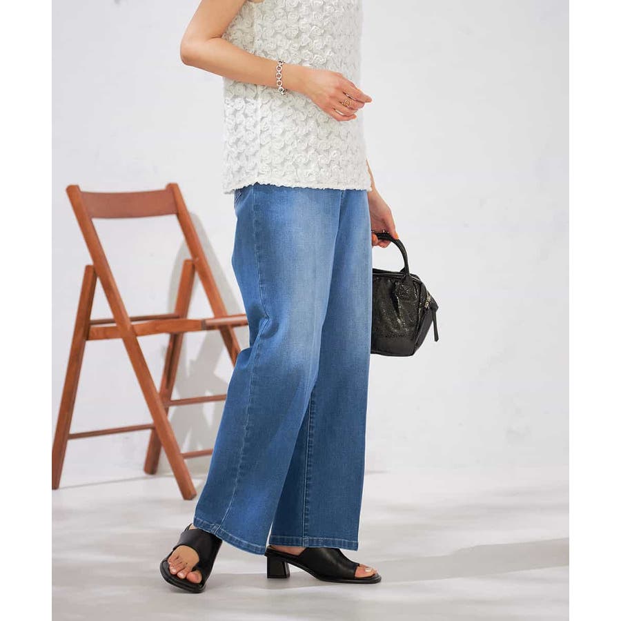 【接触冷感/ストレッチ】デニムワイドパンツ