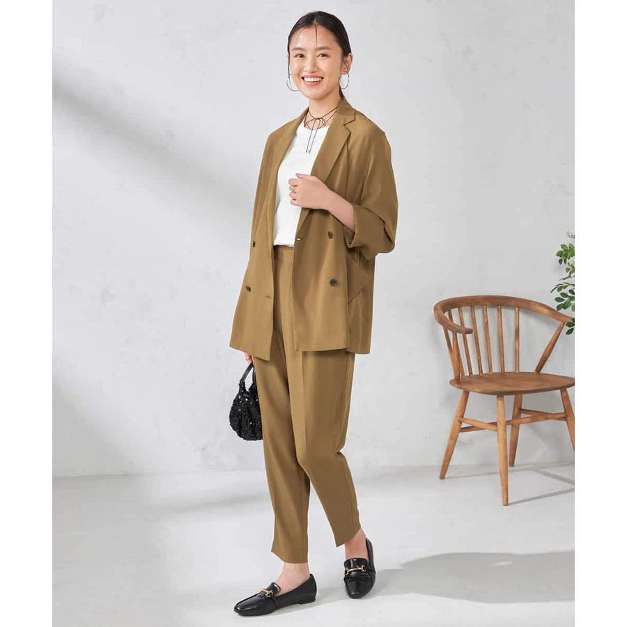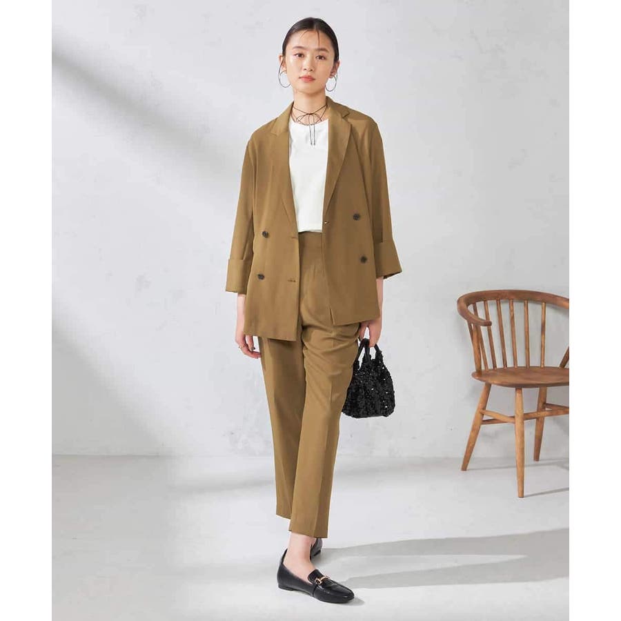 同素材のダブルジャケットとのセットアップ着用で即こなれスタイルに。