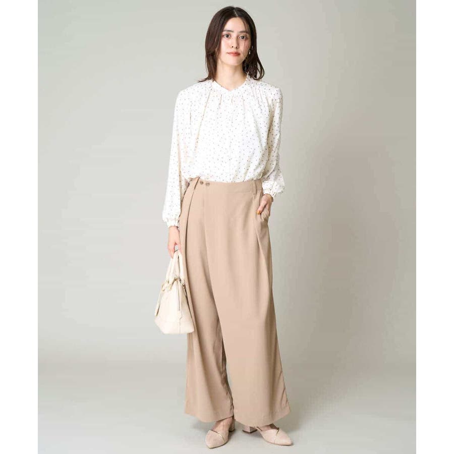 ウエストデザインがポイントのワイドパンツは