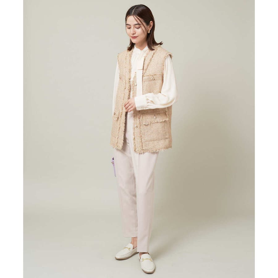 フェミニンなブラウスまで合う、着こなしの幅が広いアイテム◎