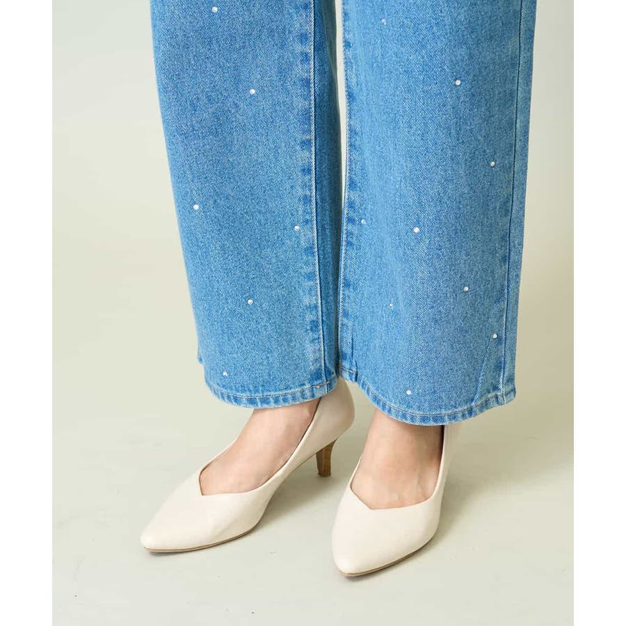 ・トレンドのビジューを施したラインストーンが華やかなデニム