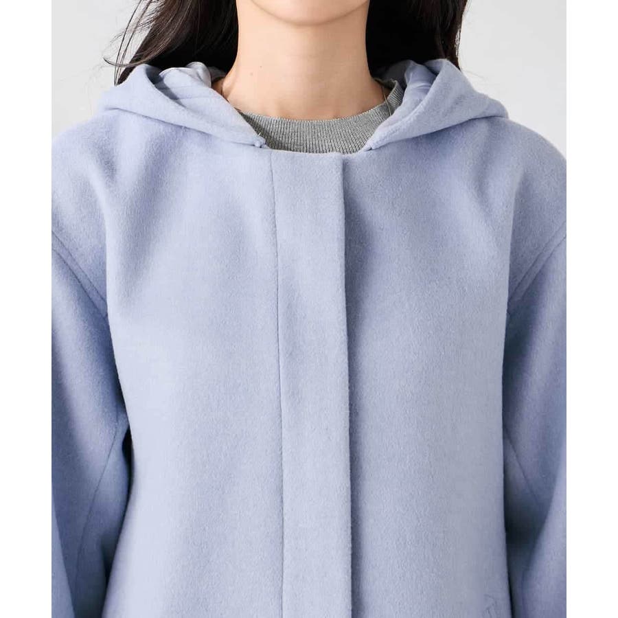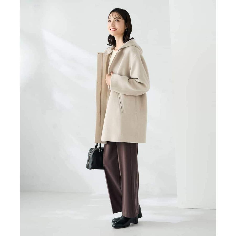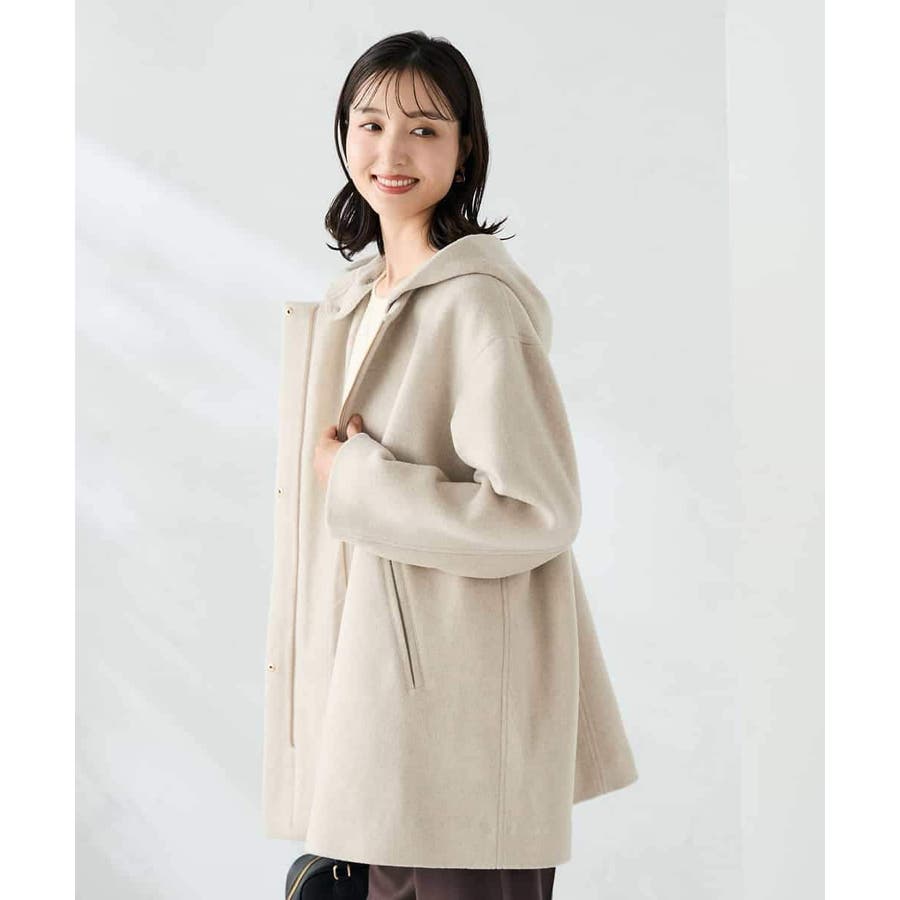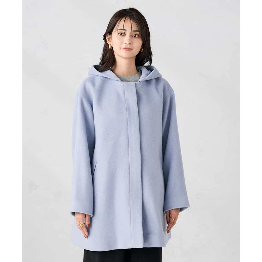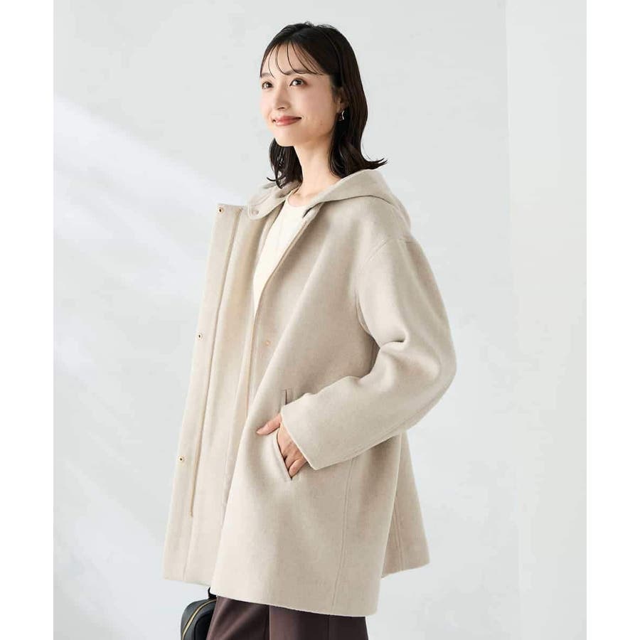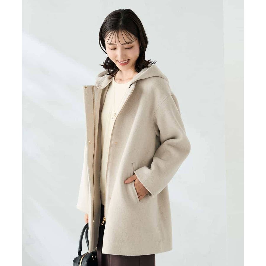 ・フードは取り外し可能で、ノーカラーコートとしても着用できます