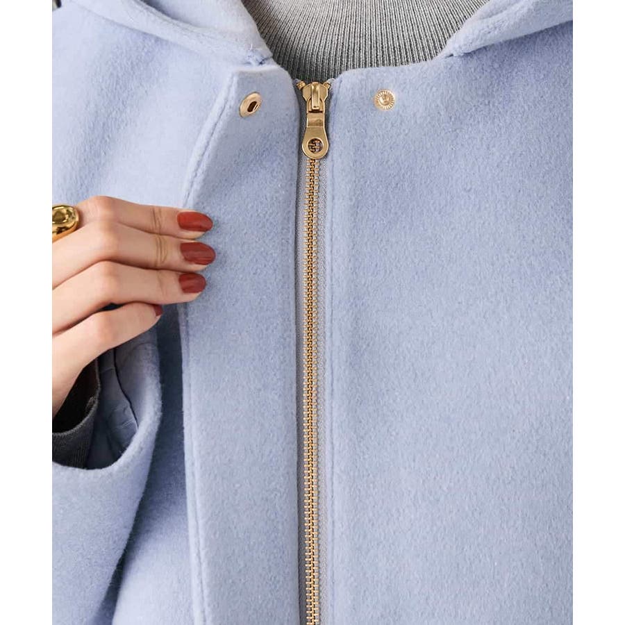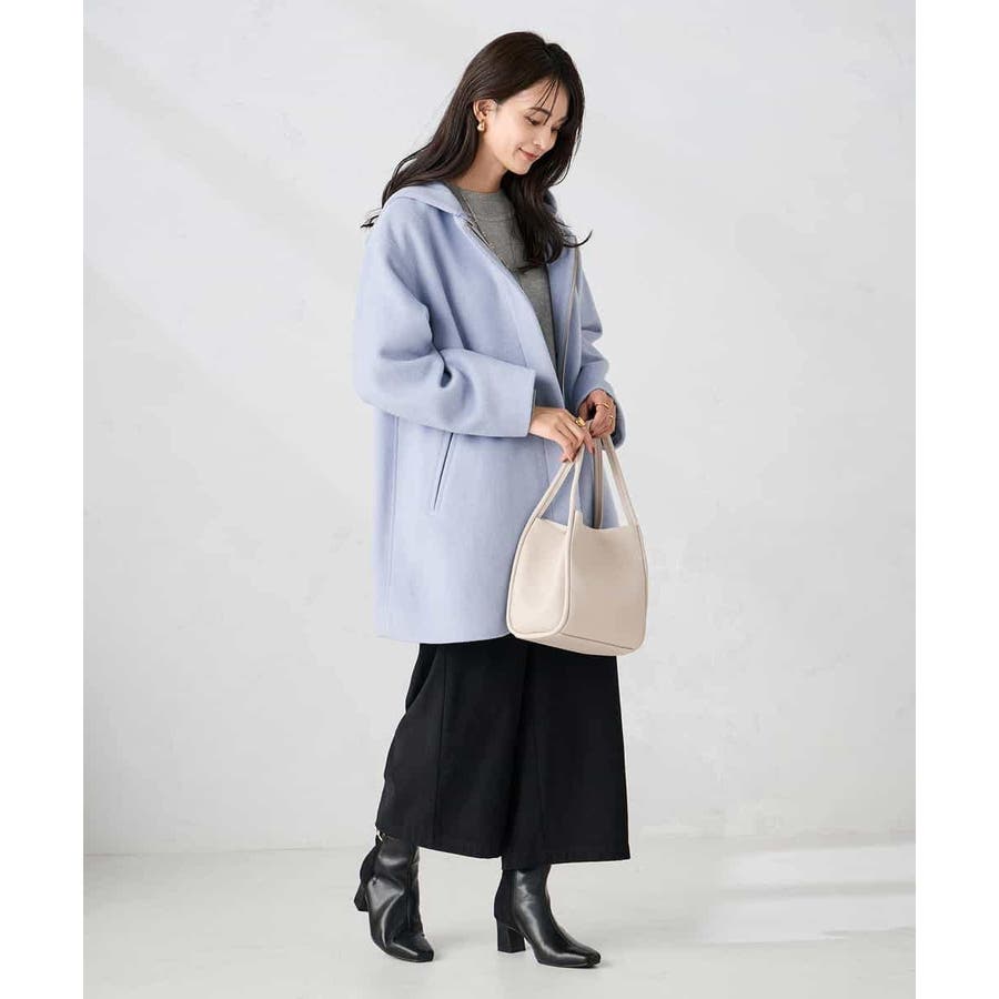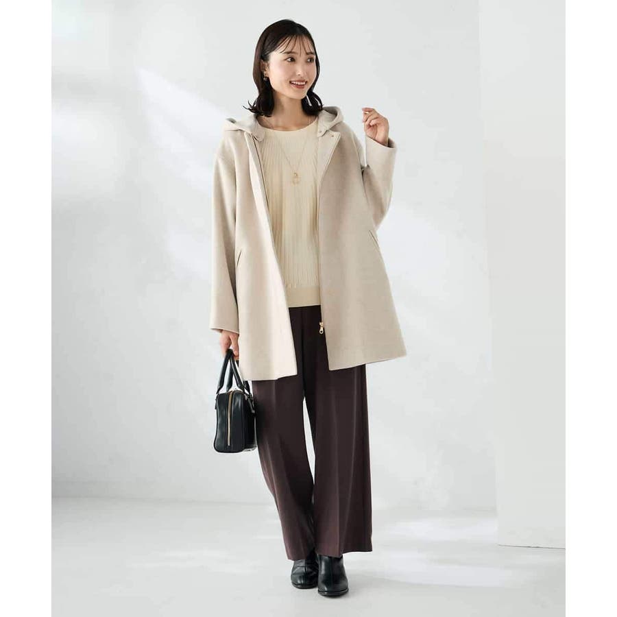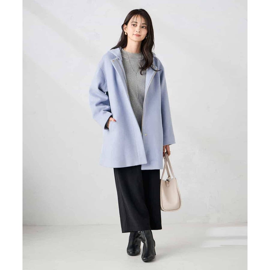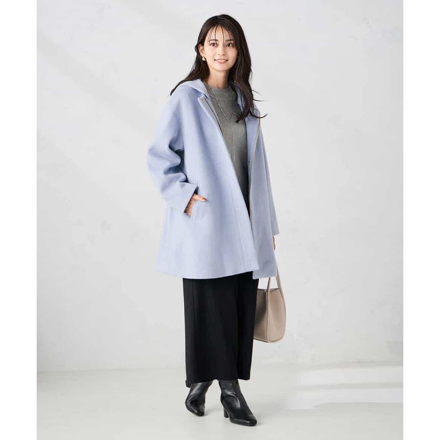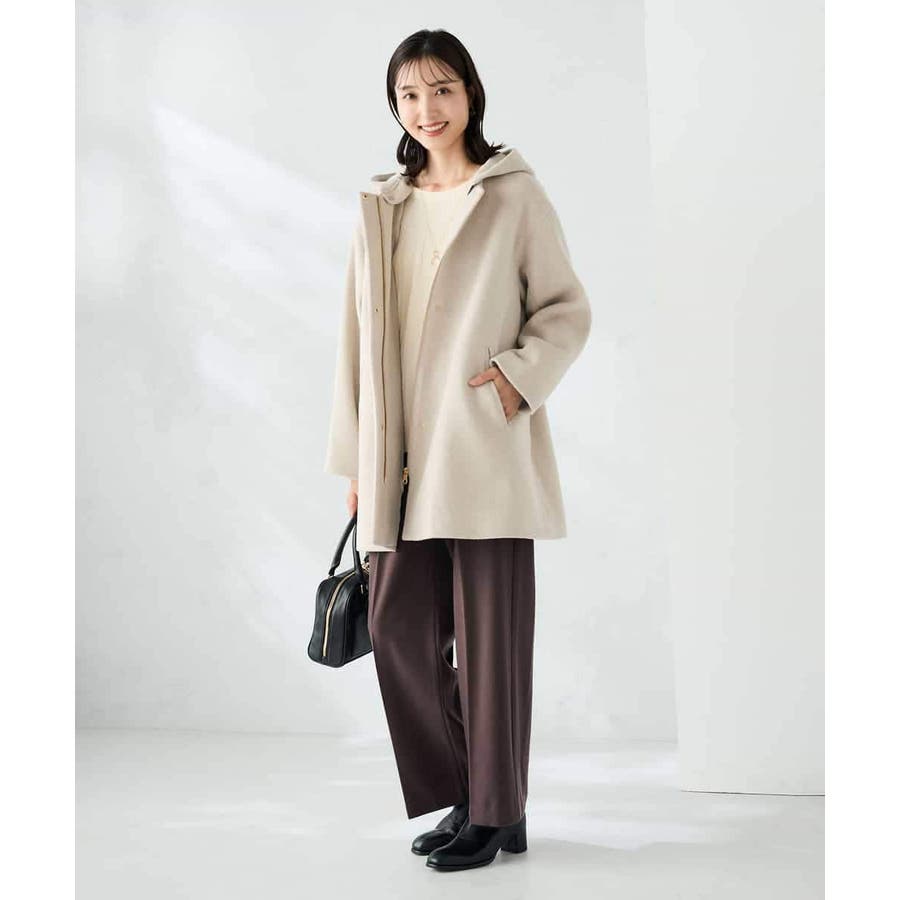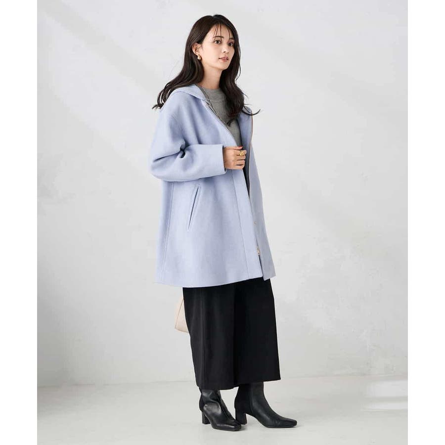 ・フードは取り外し可能で、ノーカラーコートとしても着用できます