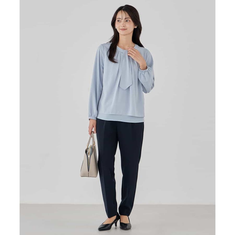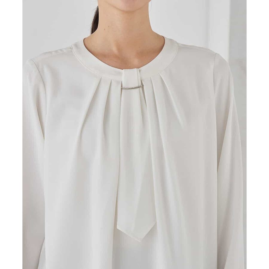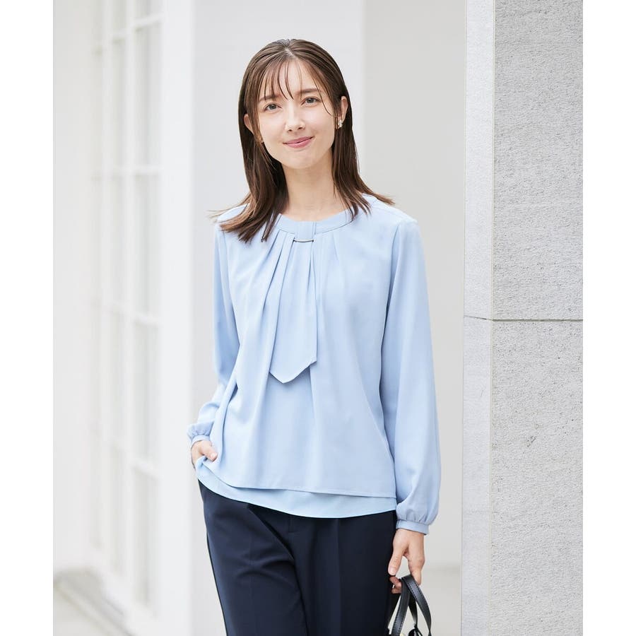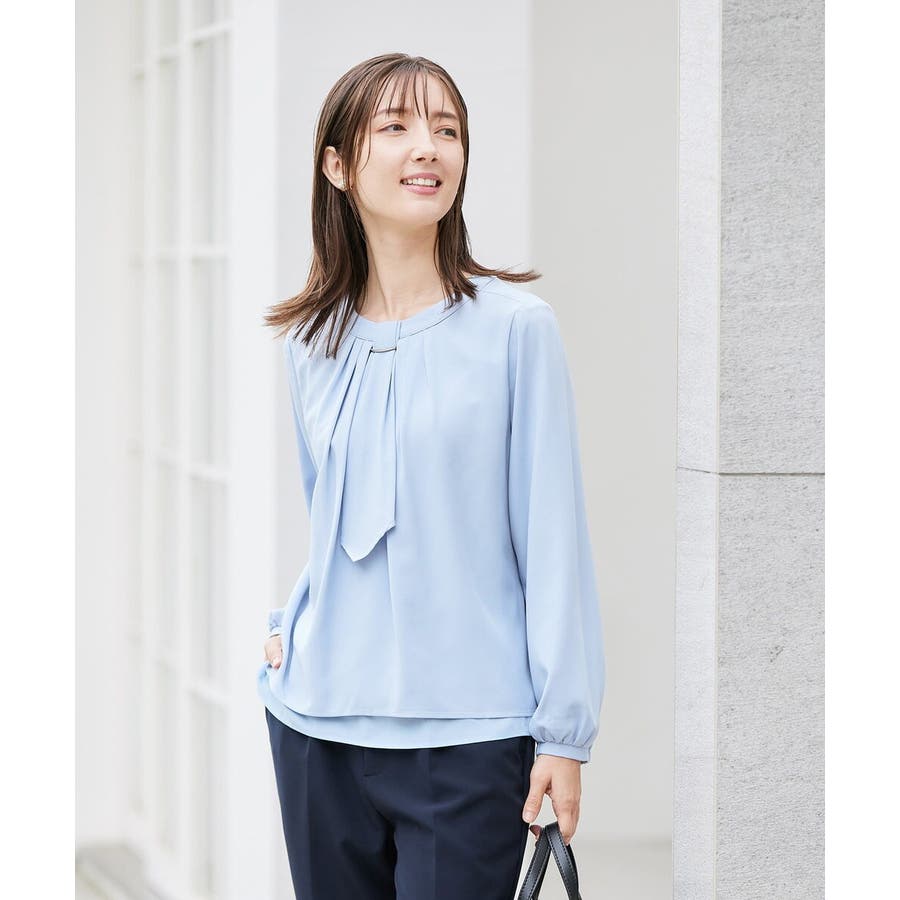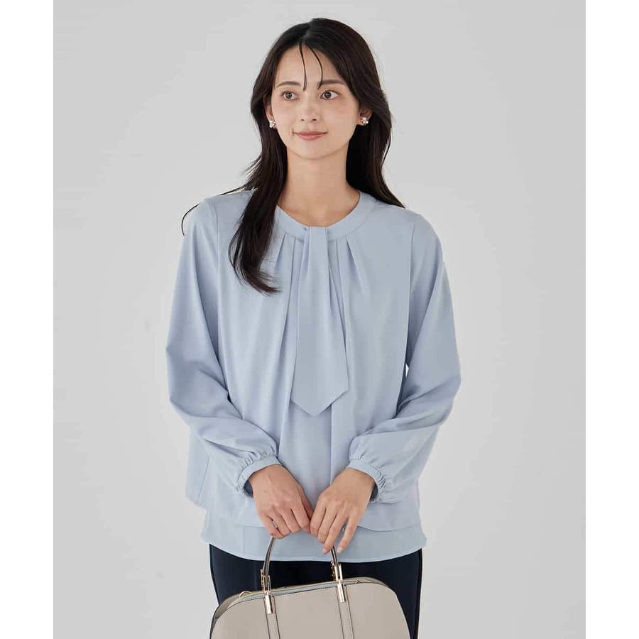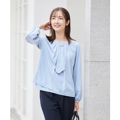 【洗える/ストレッチ】ボウタイメタルチャームブラウス