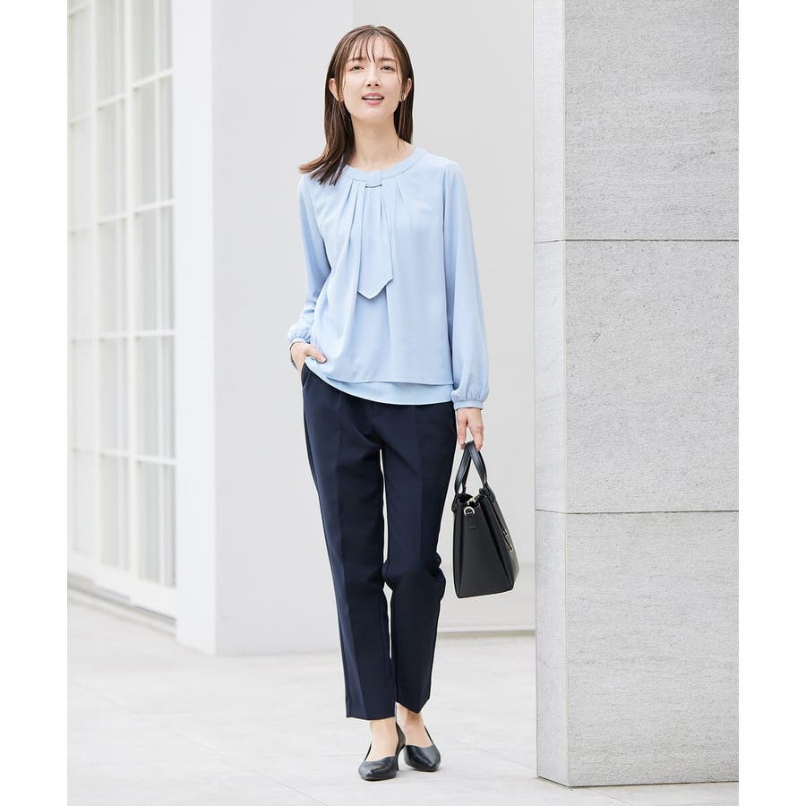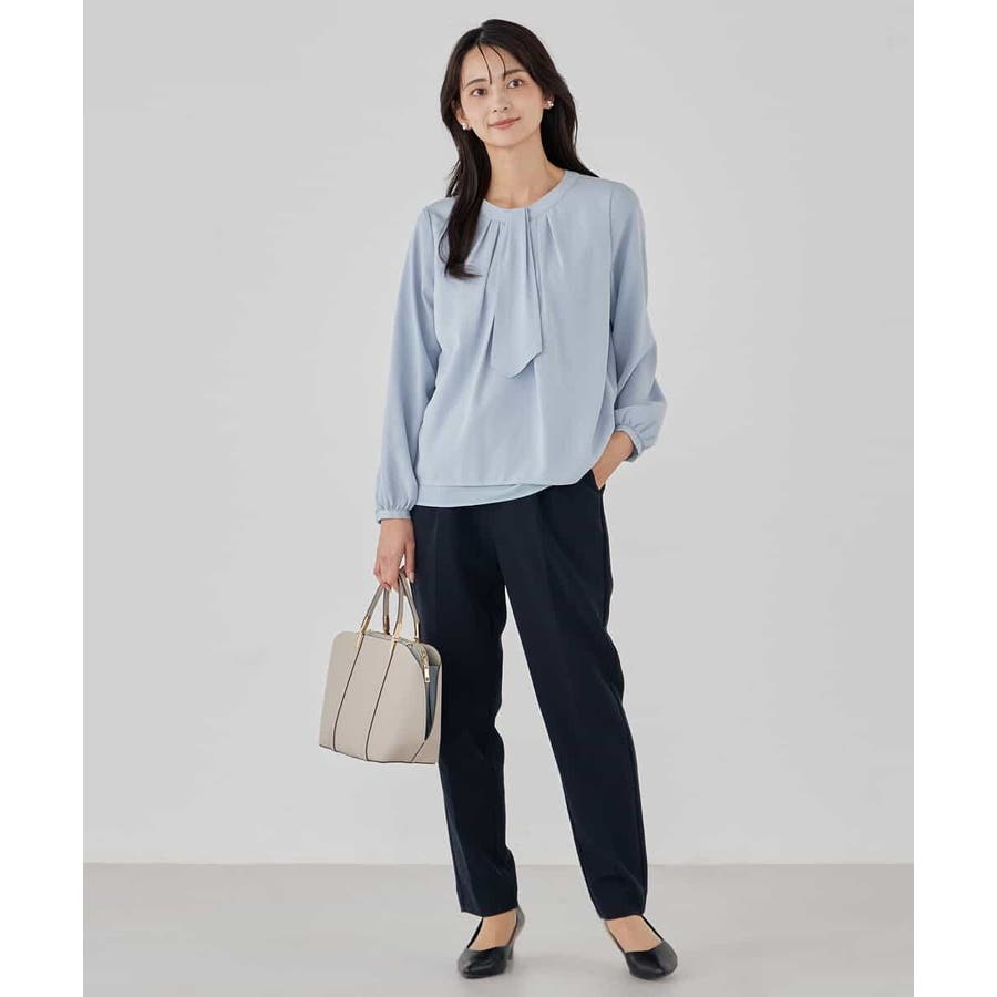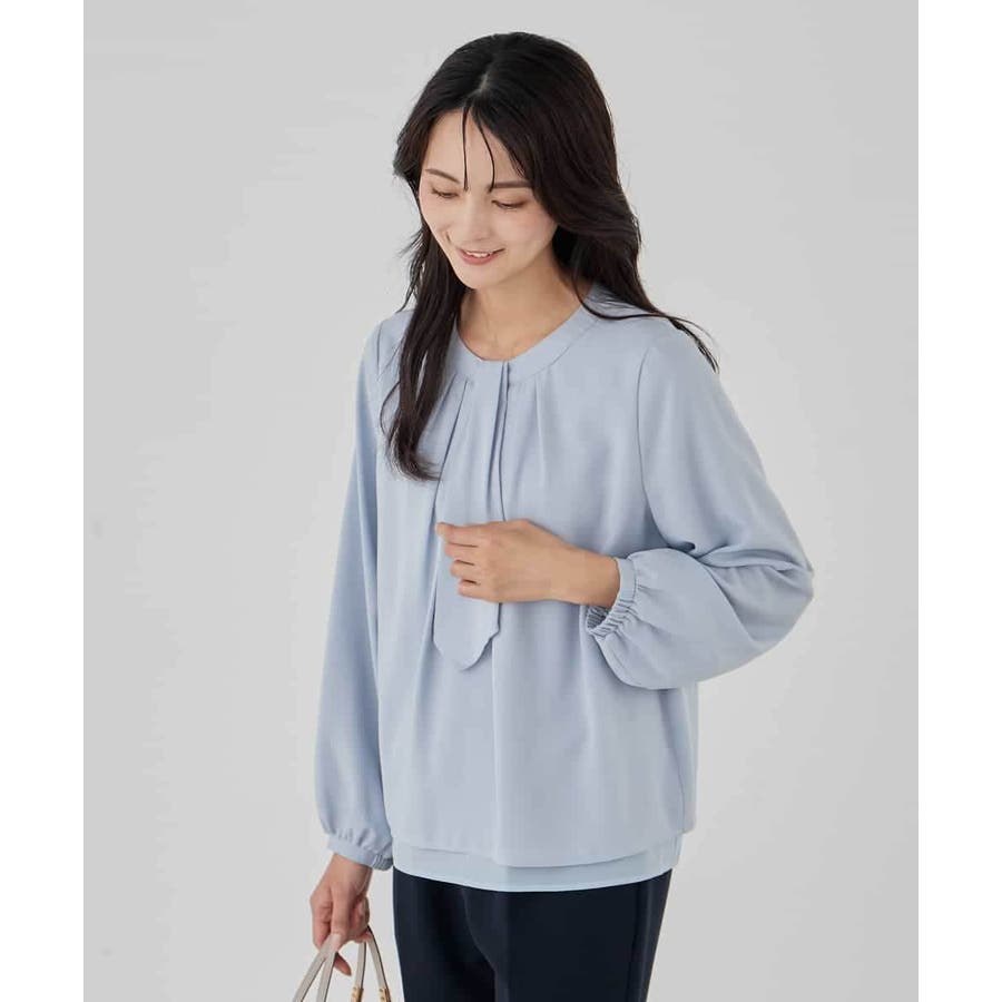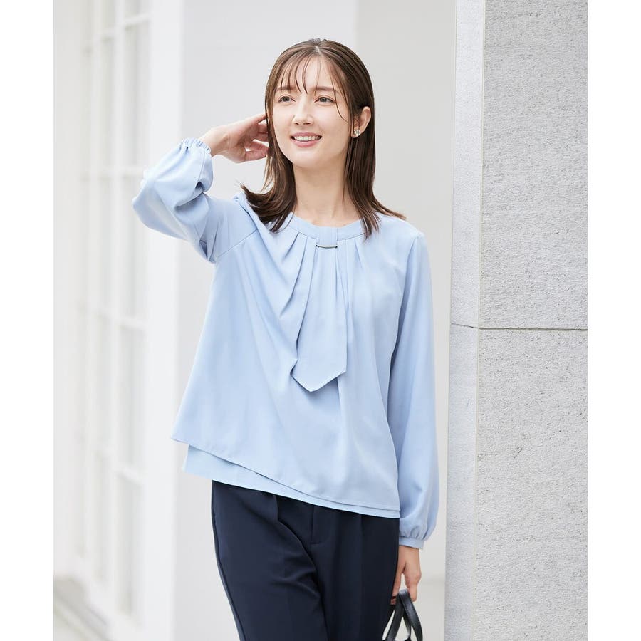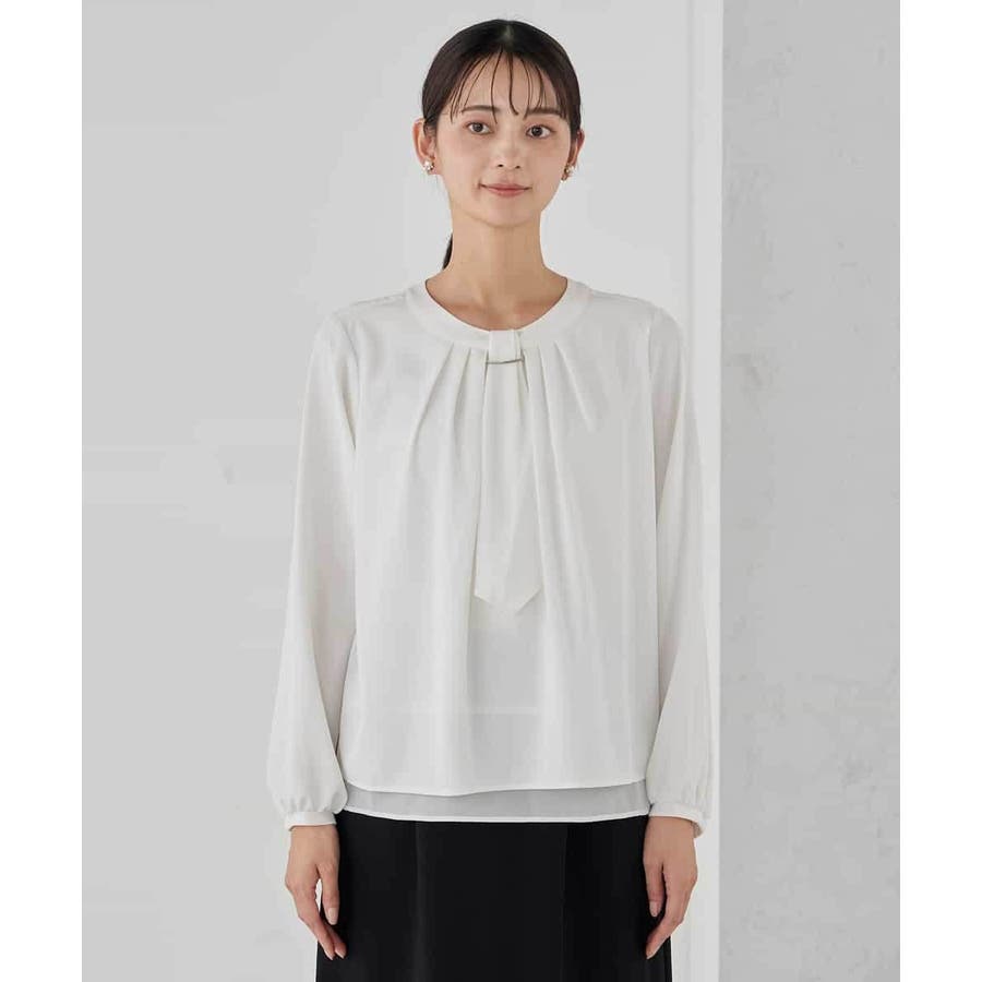 【洗える/ストレッチ】ボウタイメタルチャームブラウス