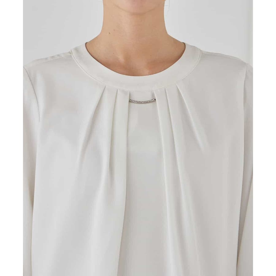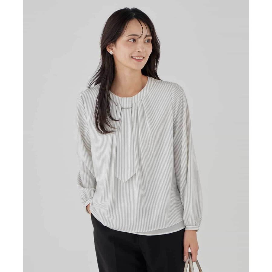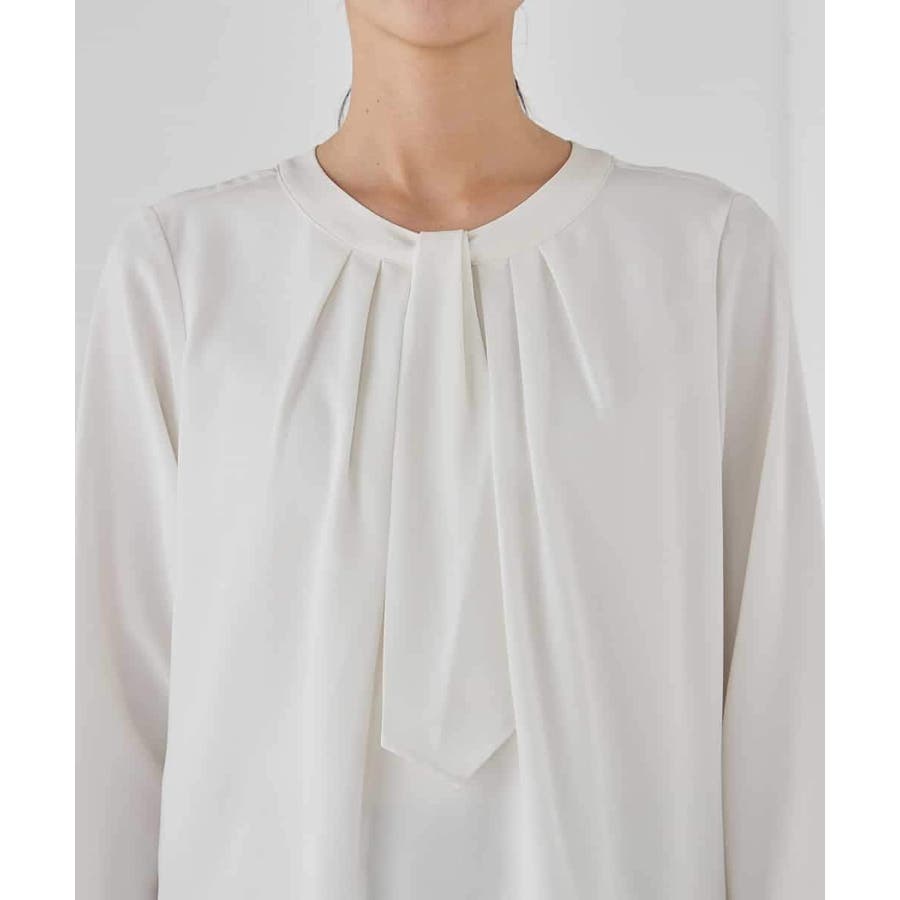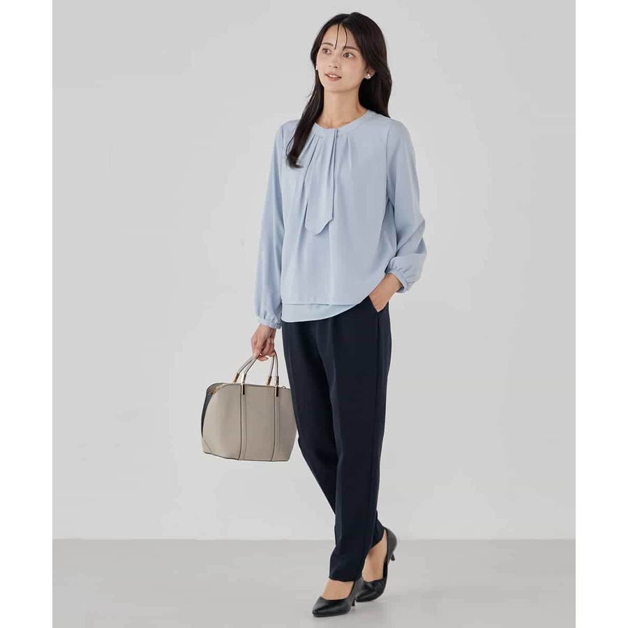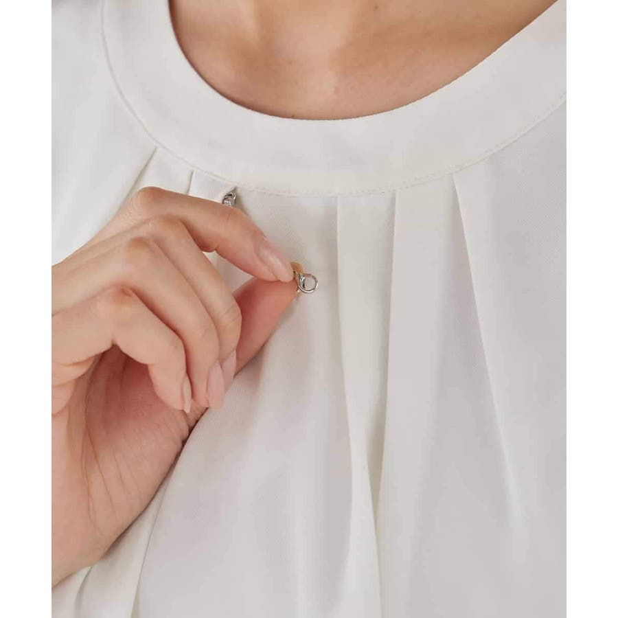 【洗える/ストレッチ】ボウタイメタルチャームブラウス