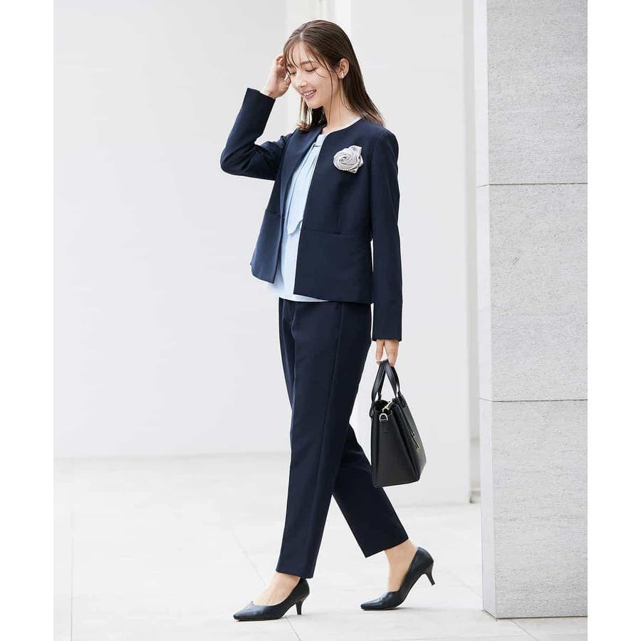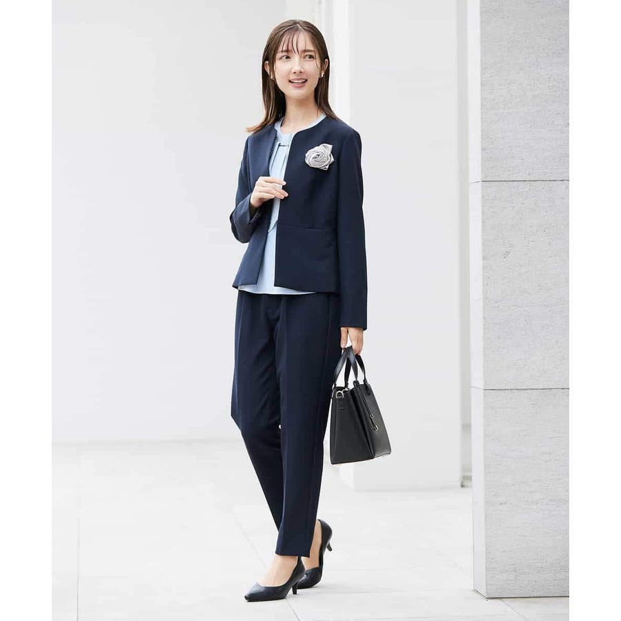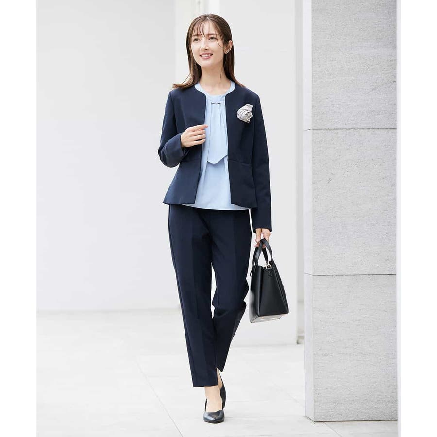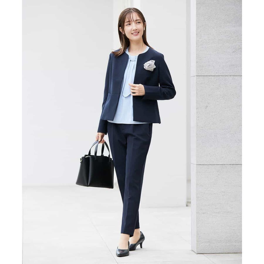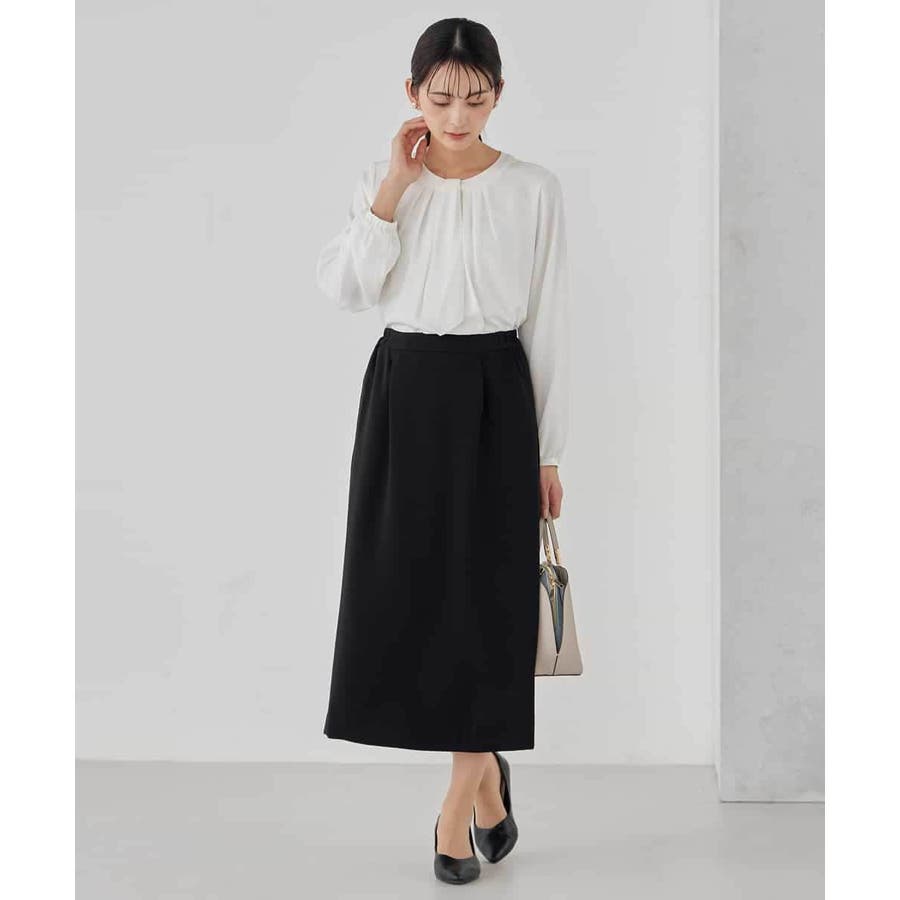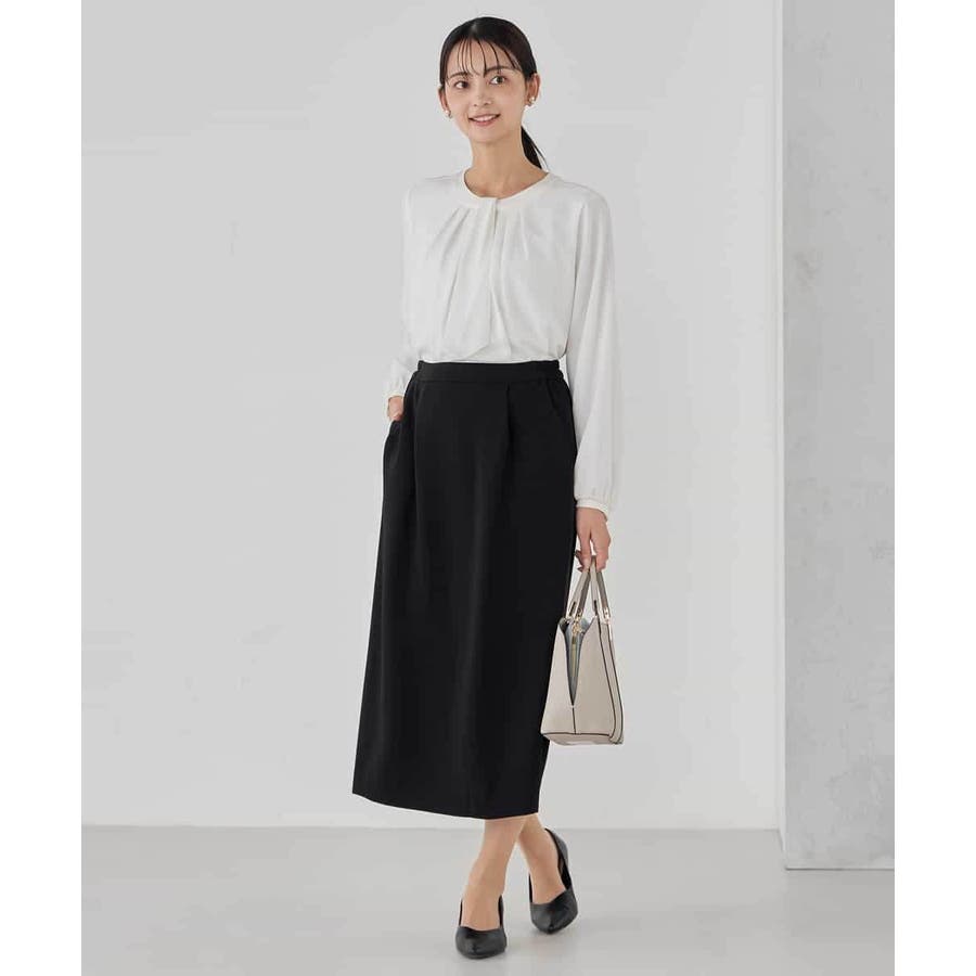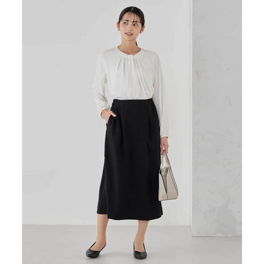 ・ボウタイは中にしまってプレーンなクルーネックブラウスに