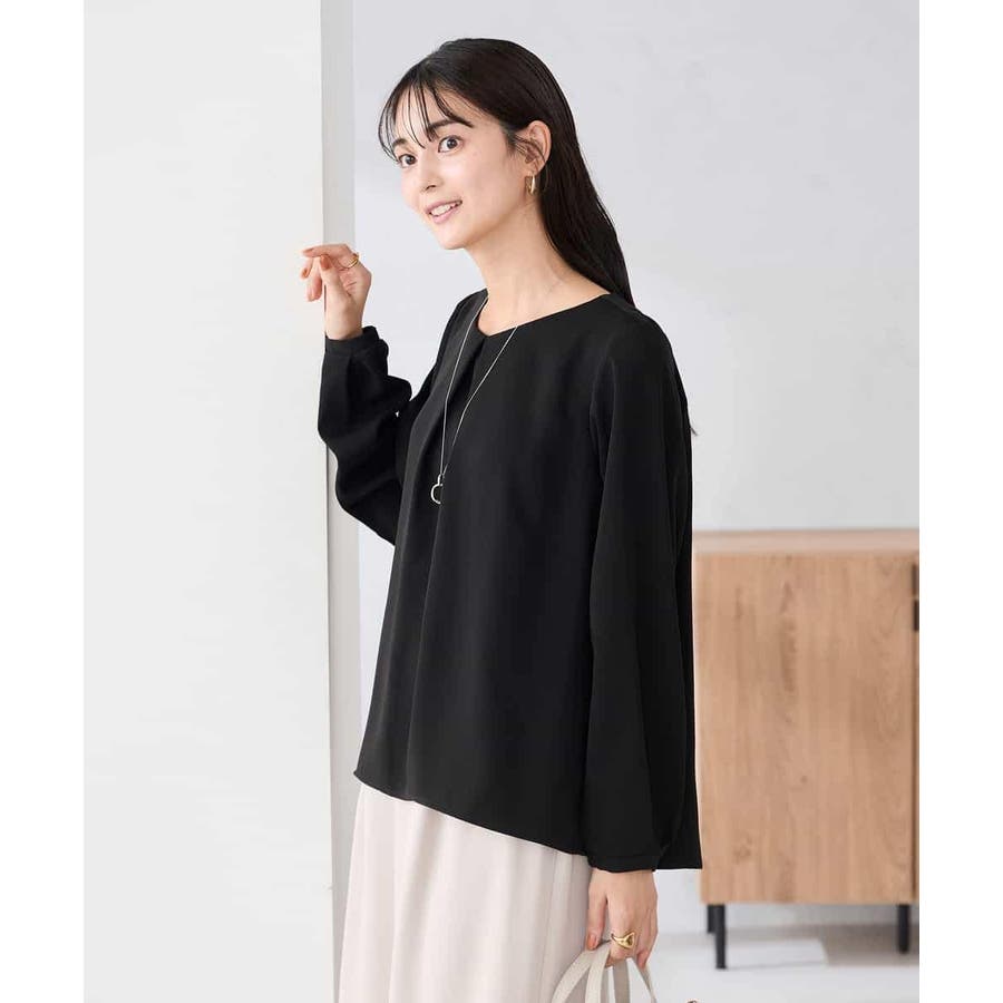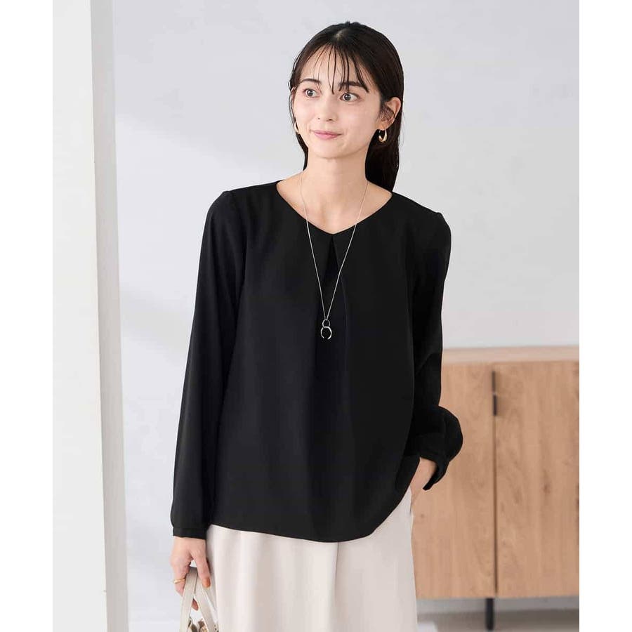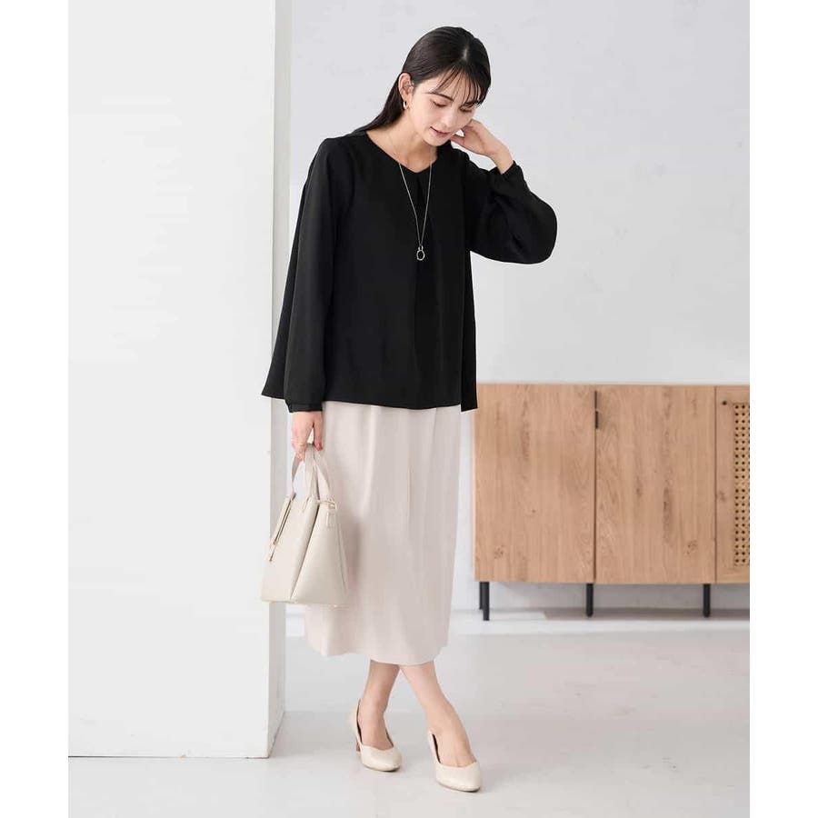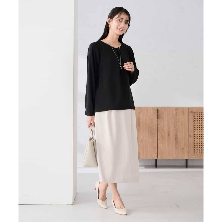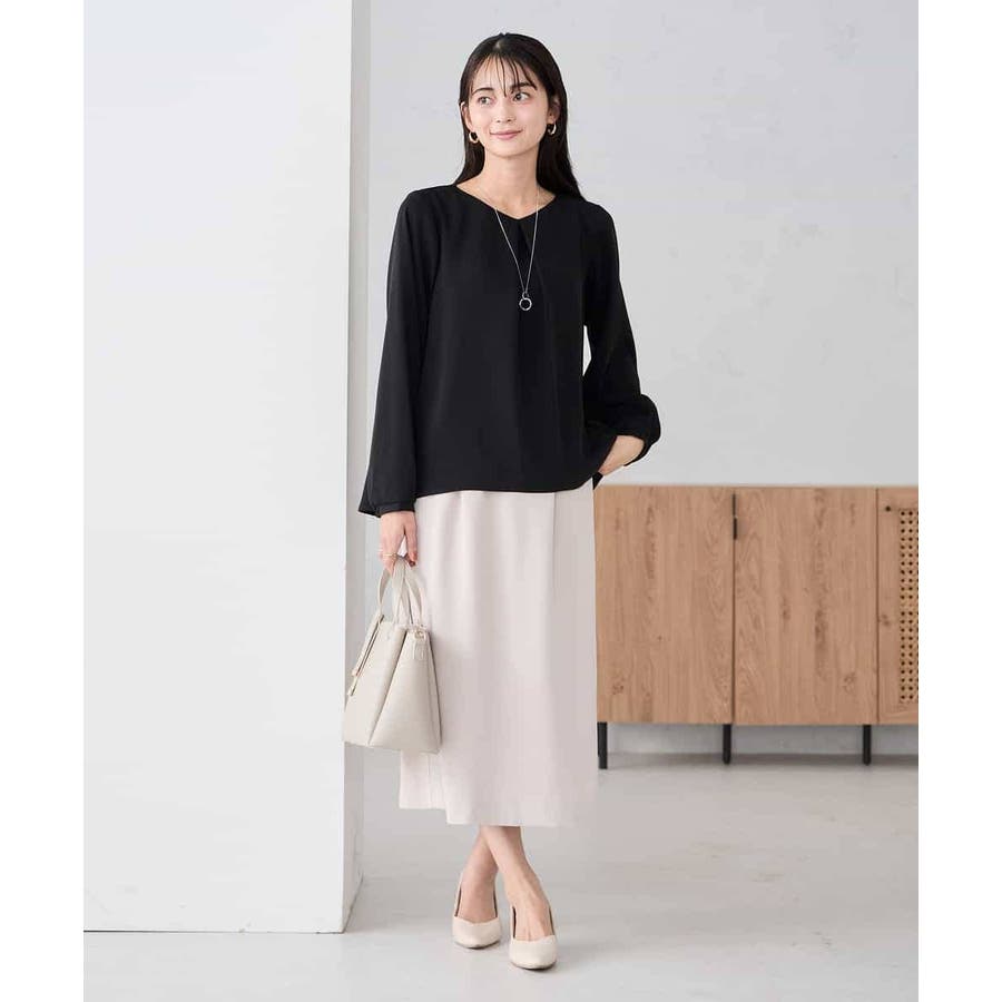 サテンバックフレアブラウス【洗える/速乾/毛玉になりにくい/イージーケア】