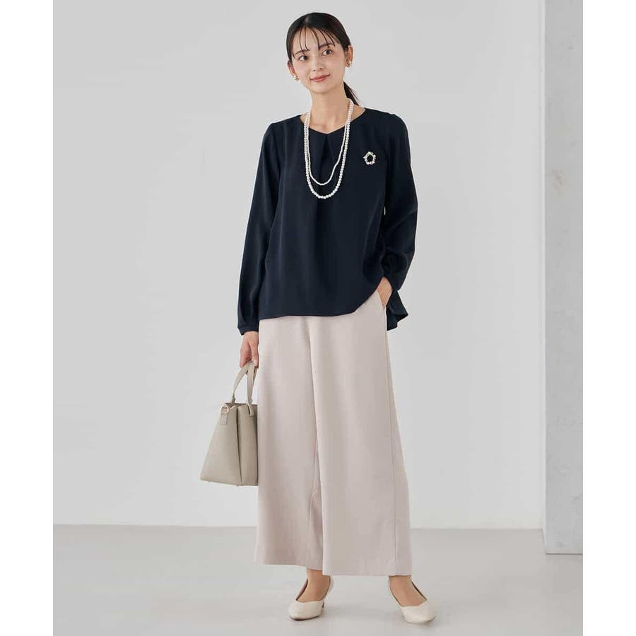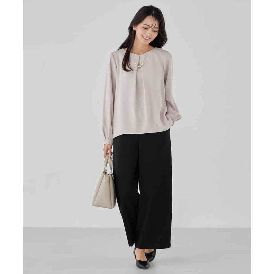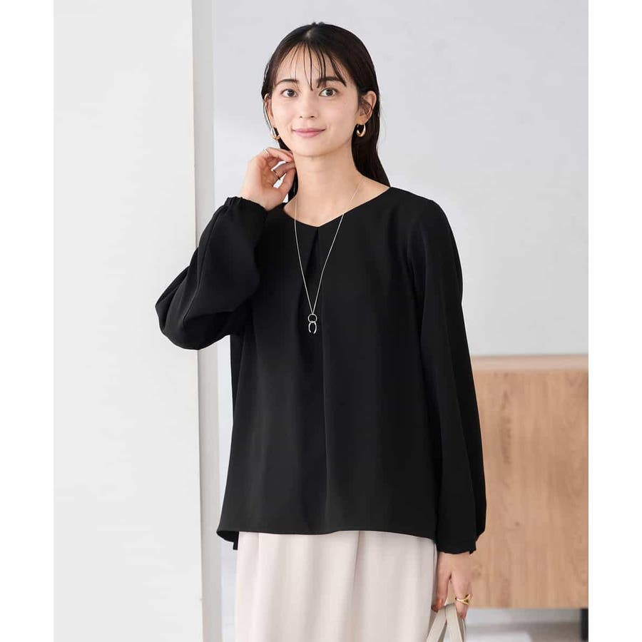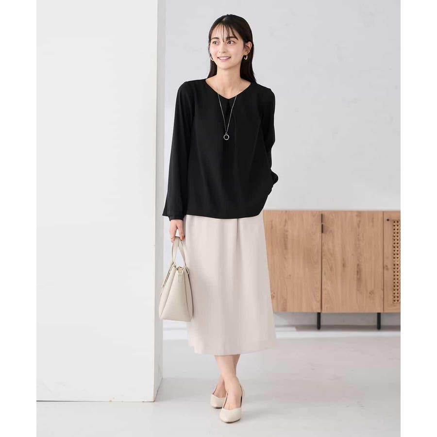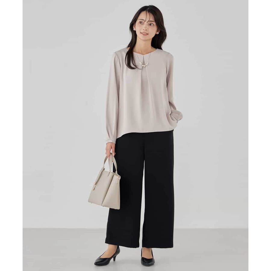 サテンバックフレアブラウス【洗える/速乾/毛玉になりにくい/イージーケア】