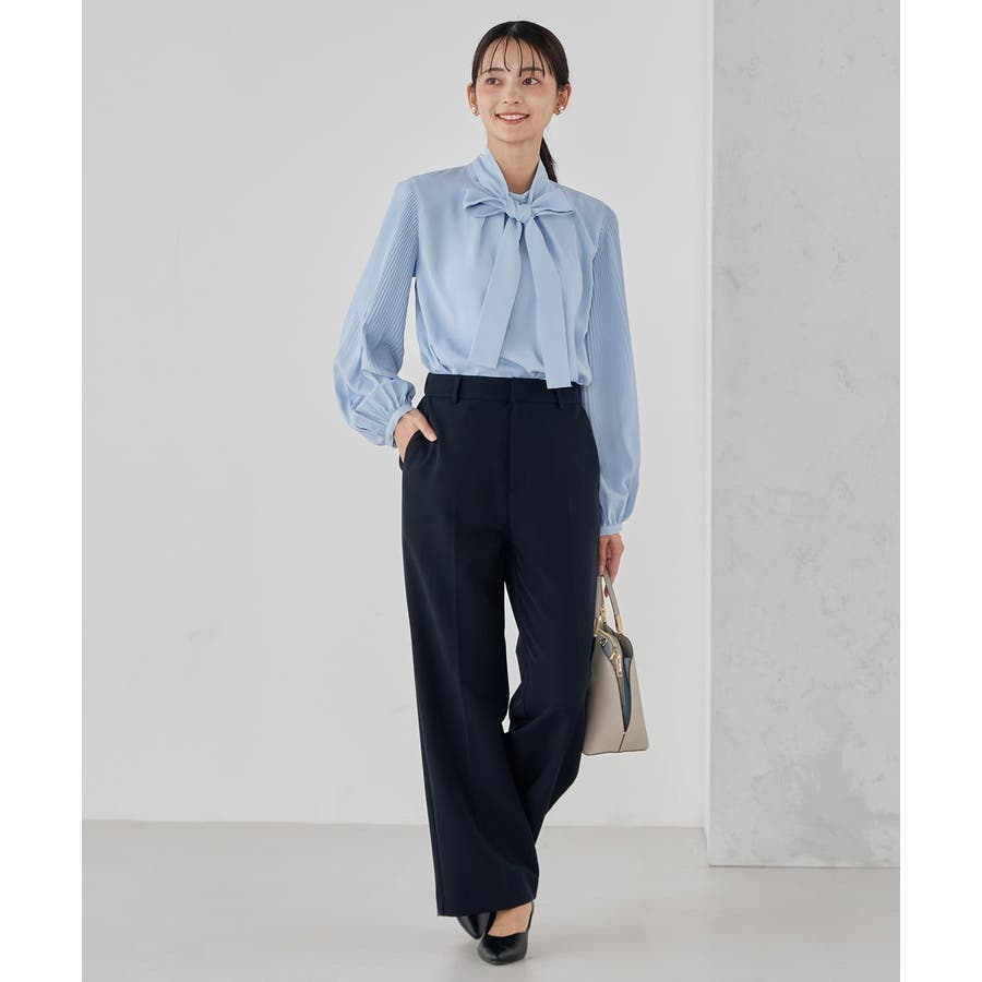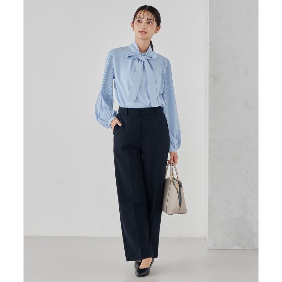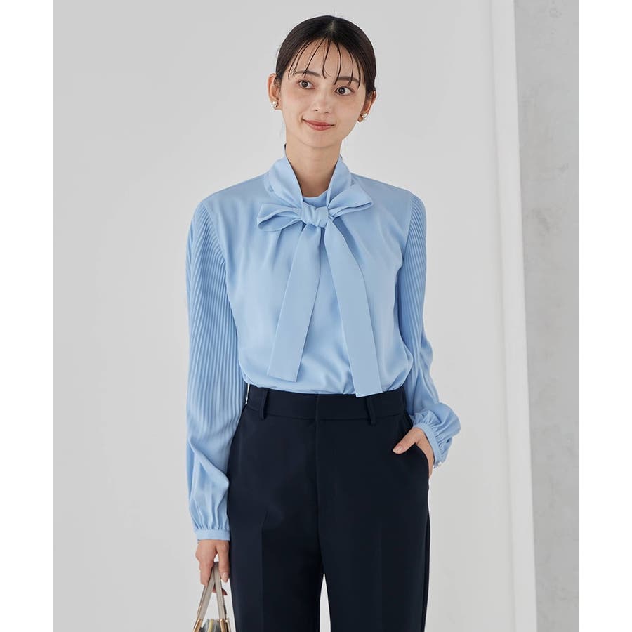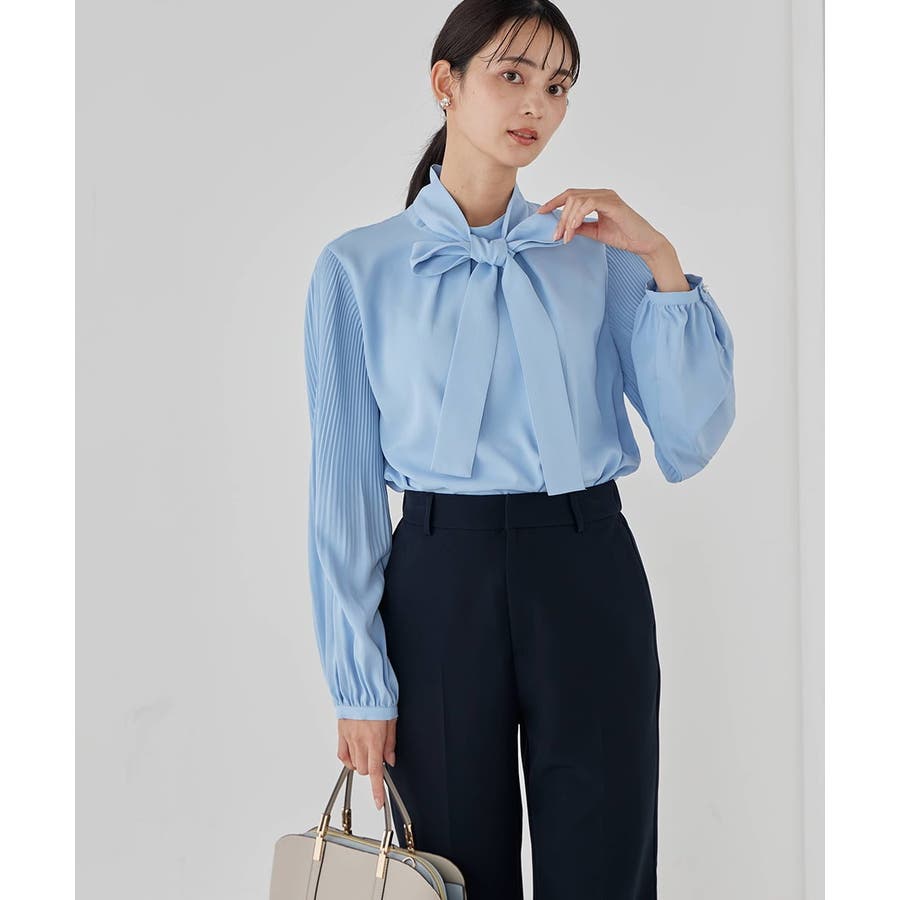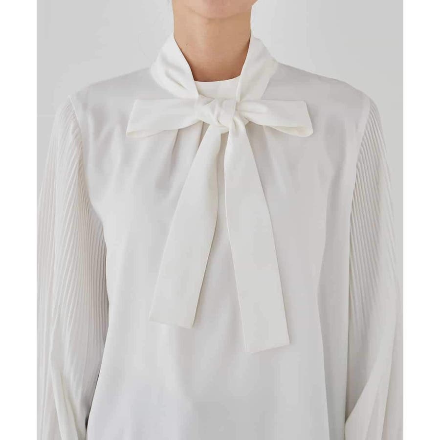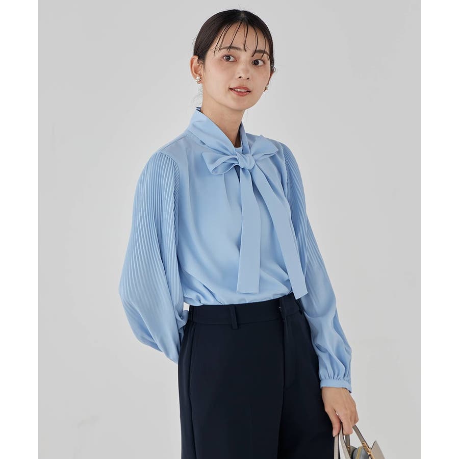 ・袖プリーツのボウタイブラウス