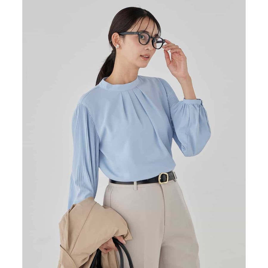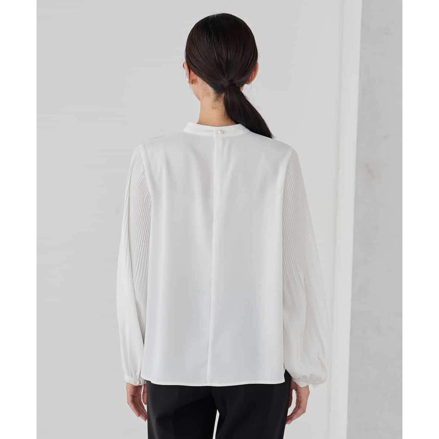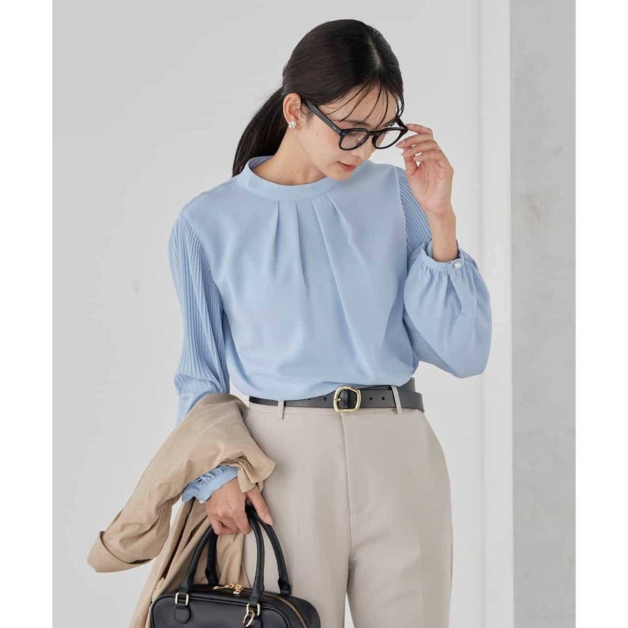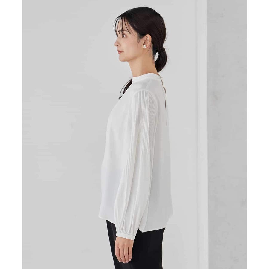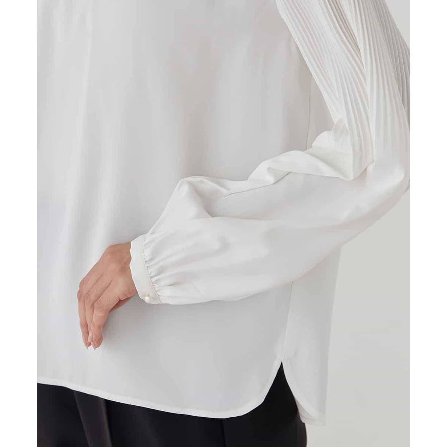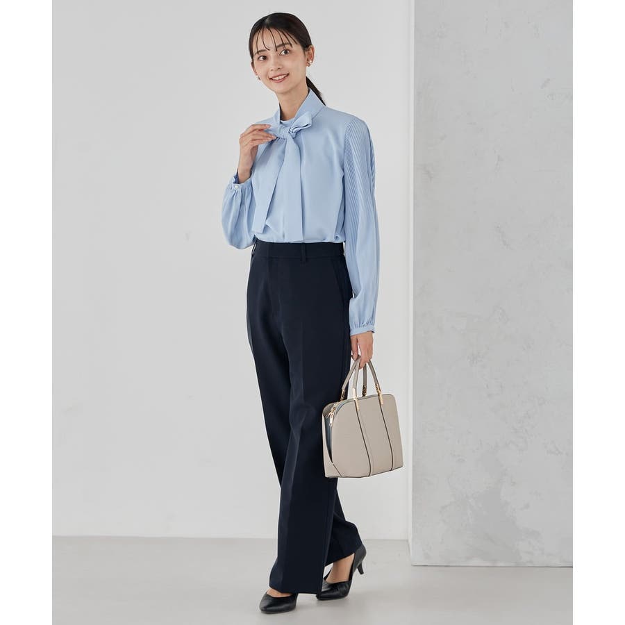 ・袖プリーツのボウタイブラウス