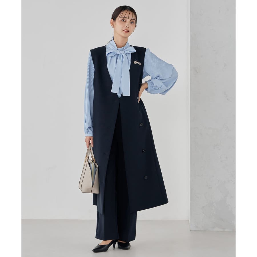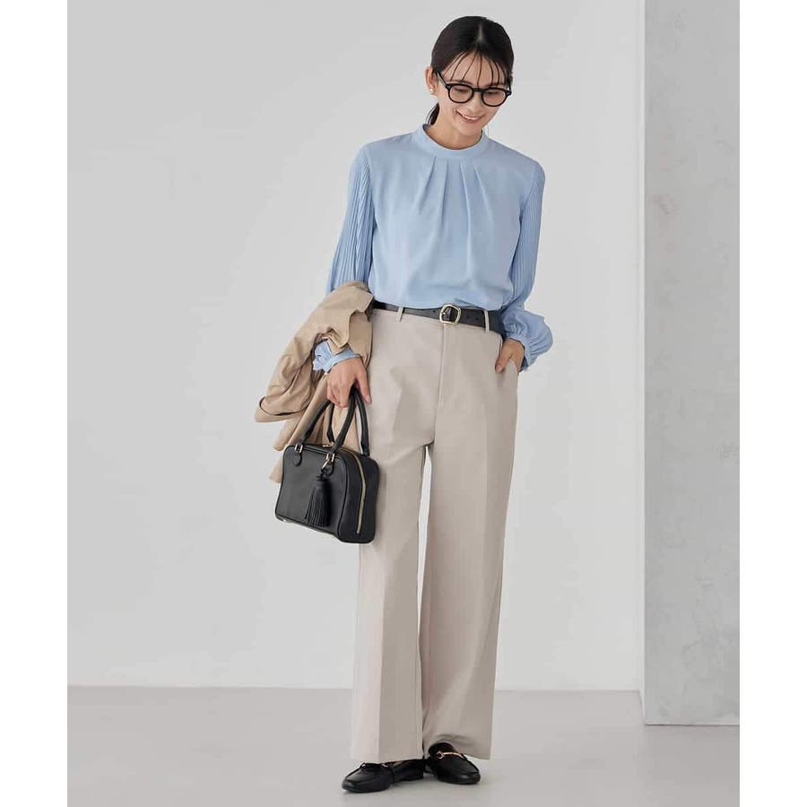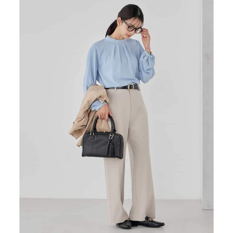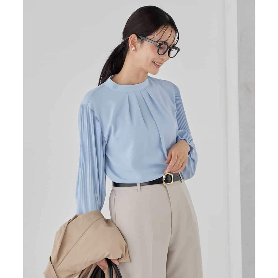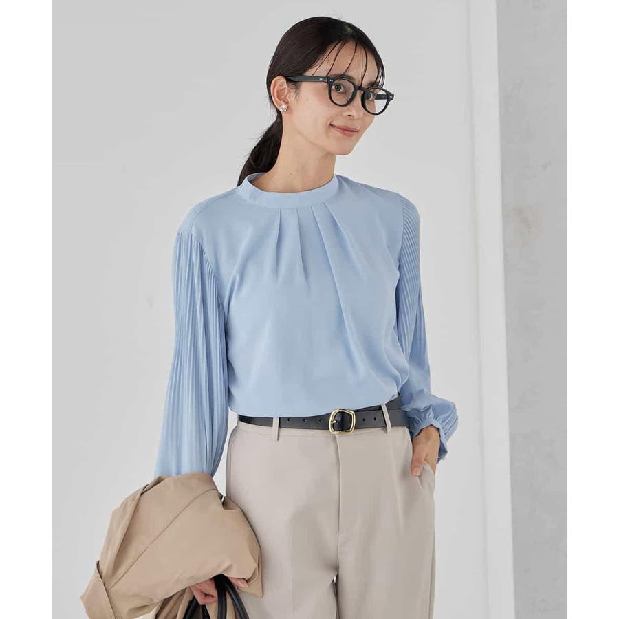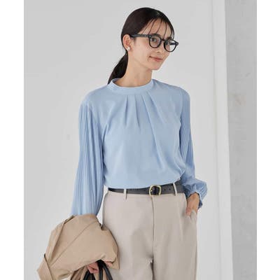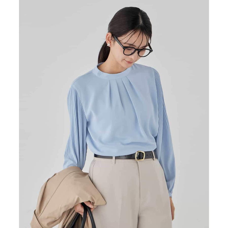 ・袖プリーツのボウタイブラウス