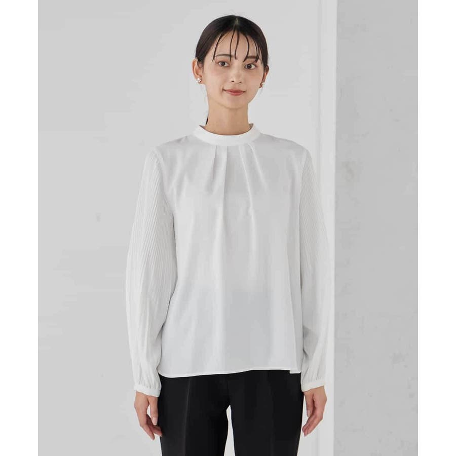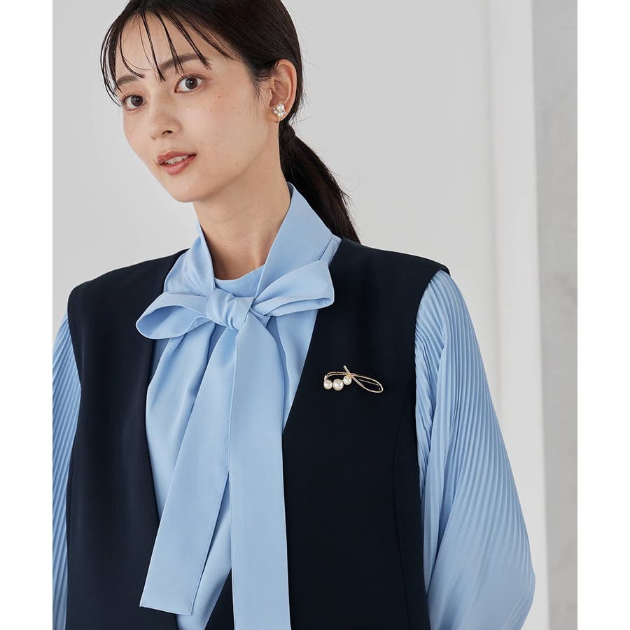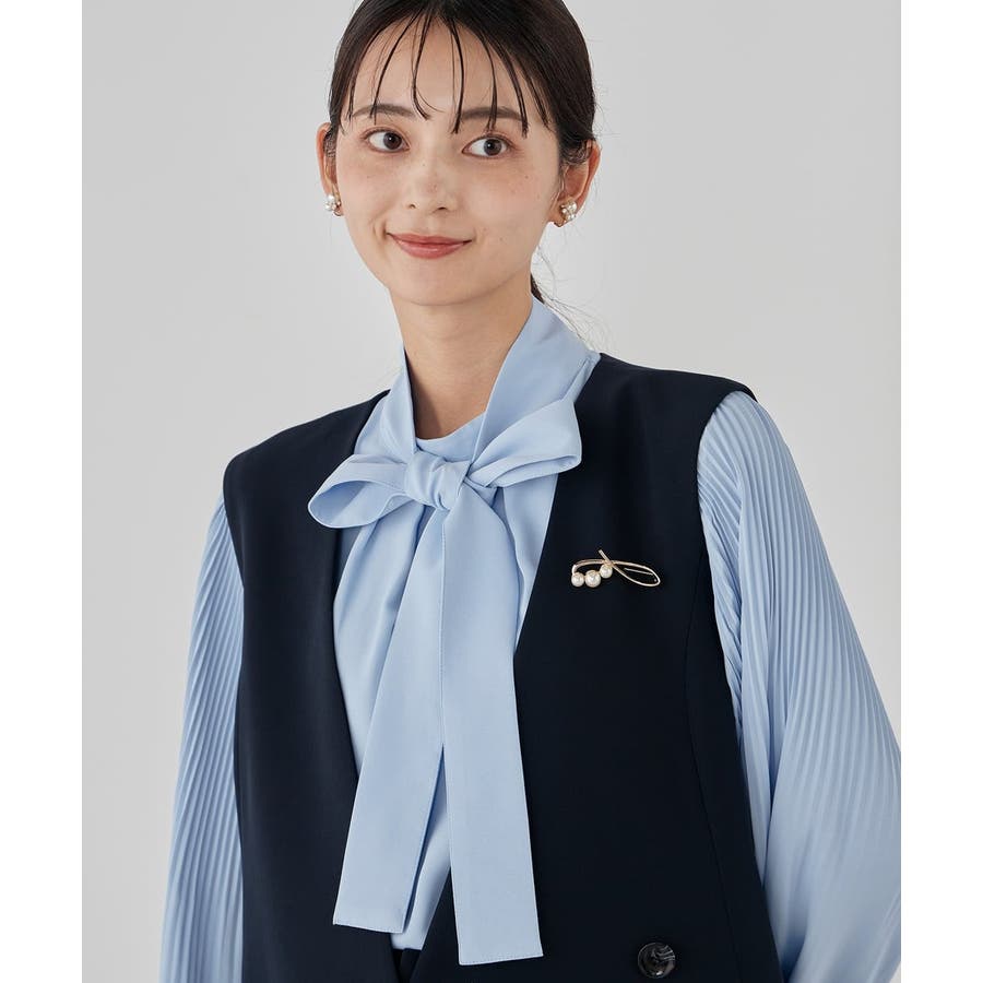 【洗える】2WAY袖プリーツボウタイブラウス