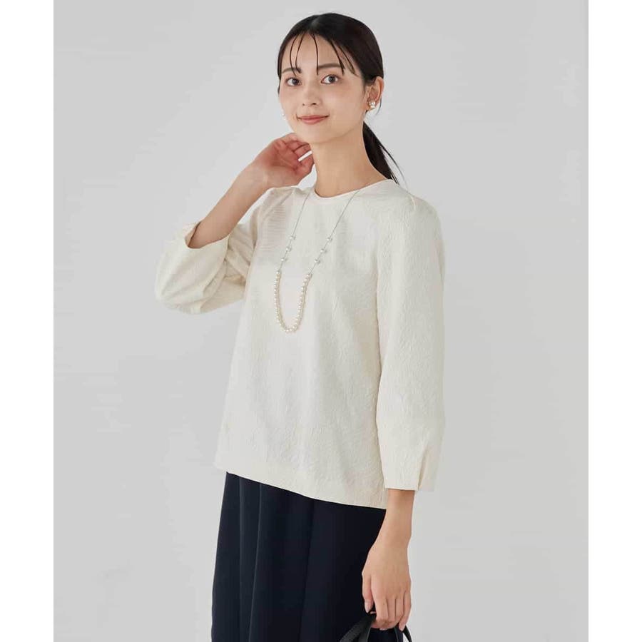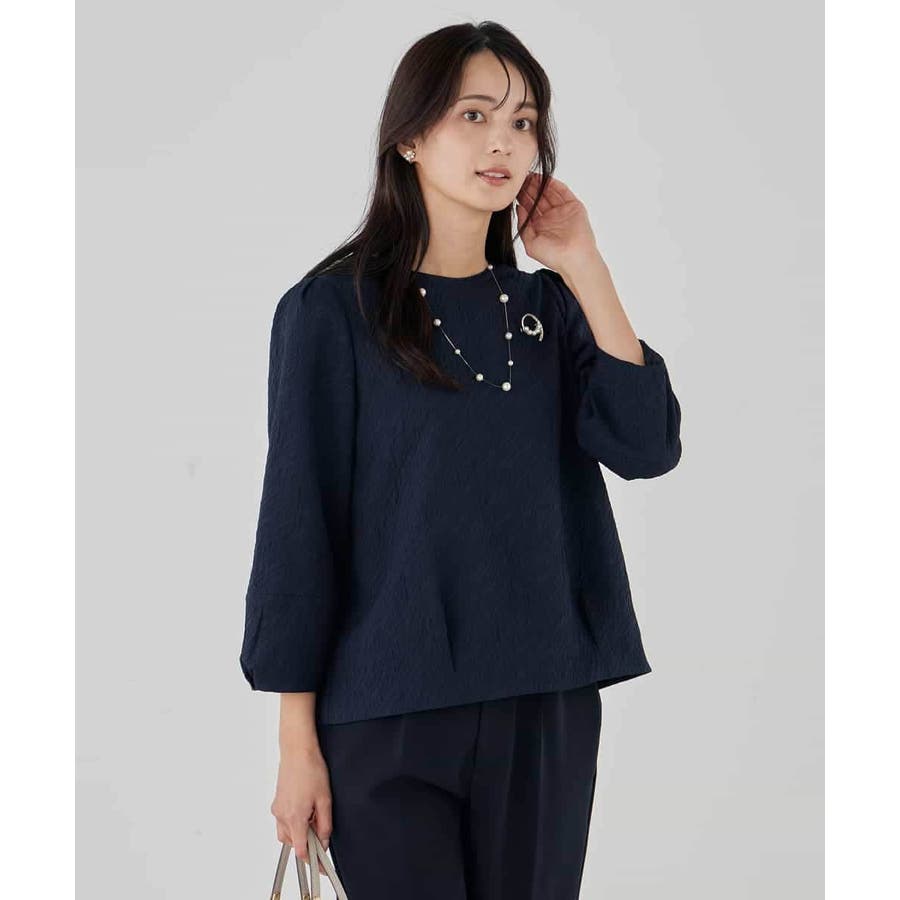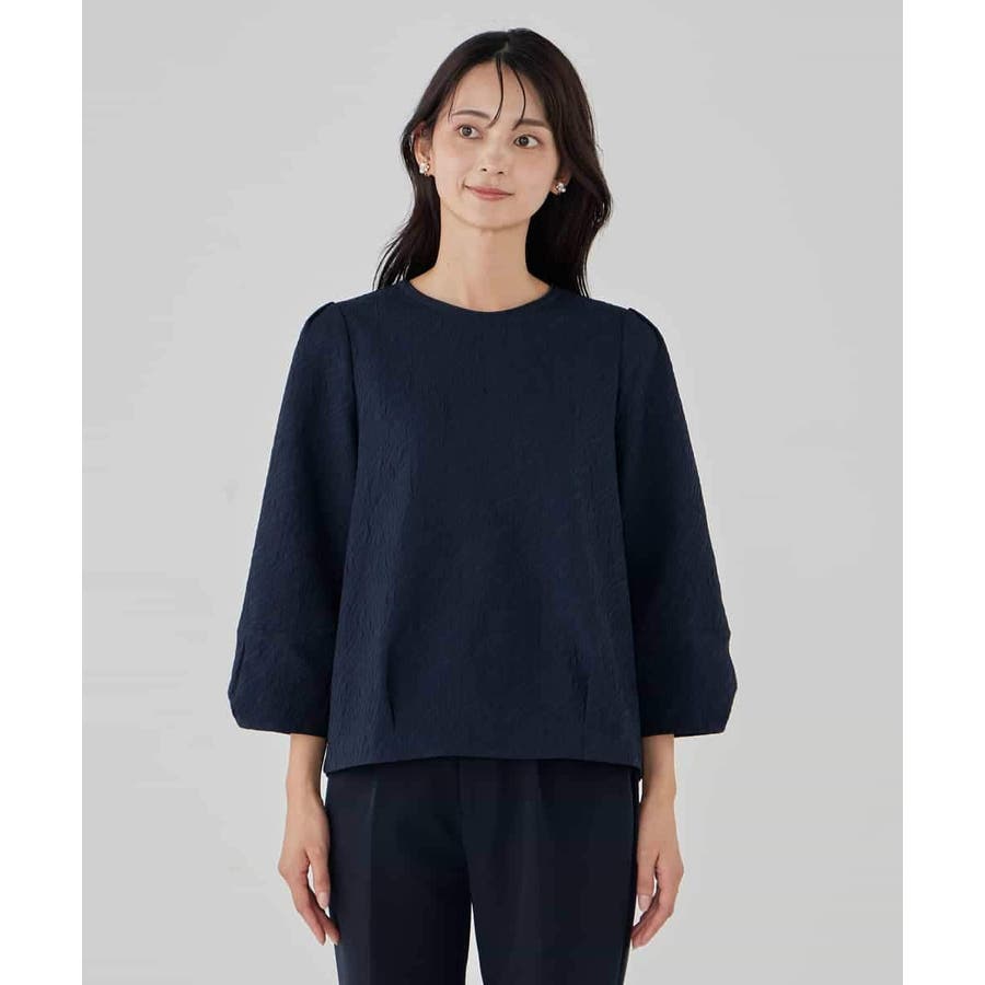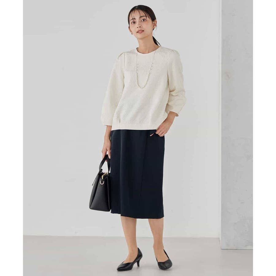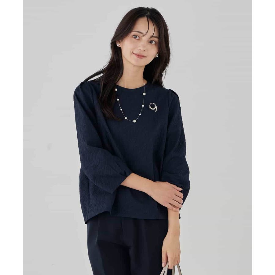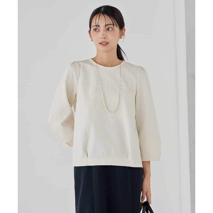 ・袖に切り替えが入ったコクーンスリーブは、こなれた印象に
