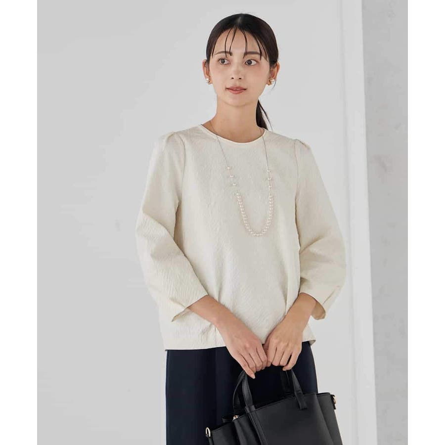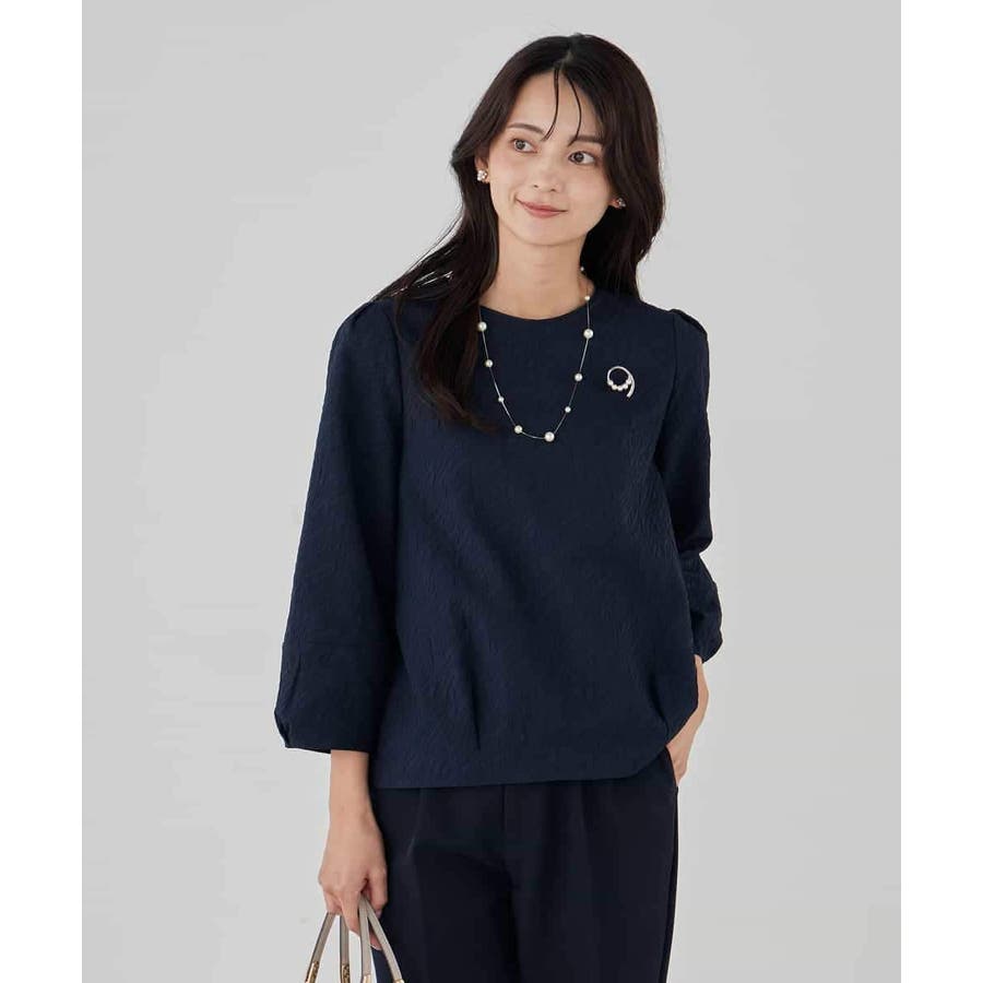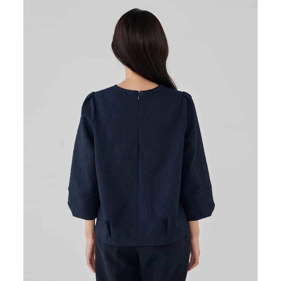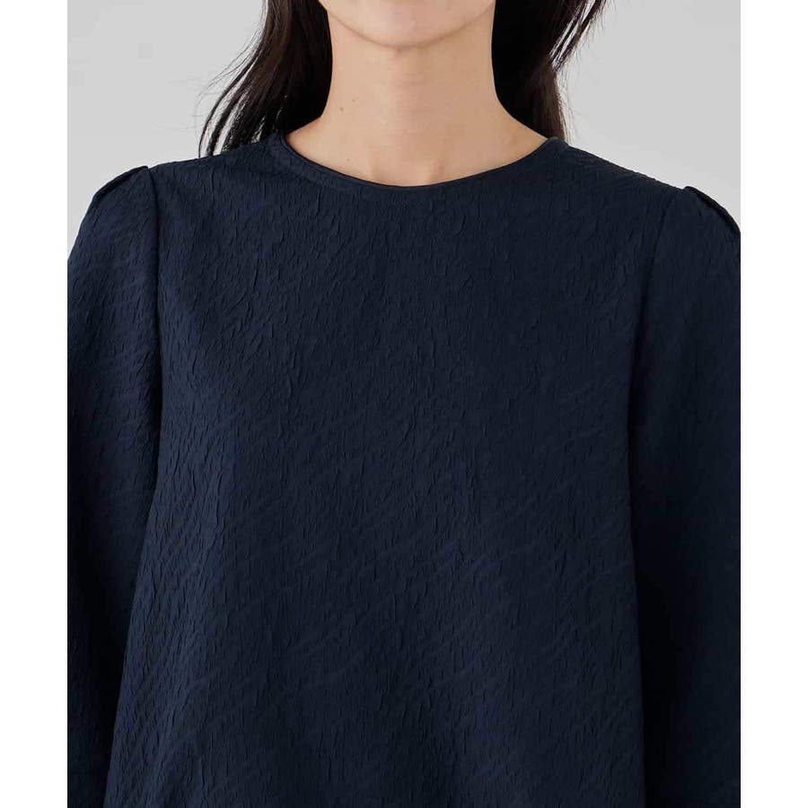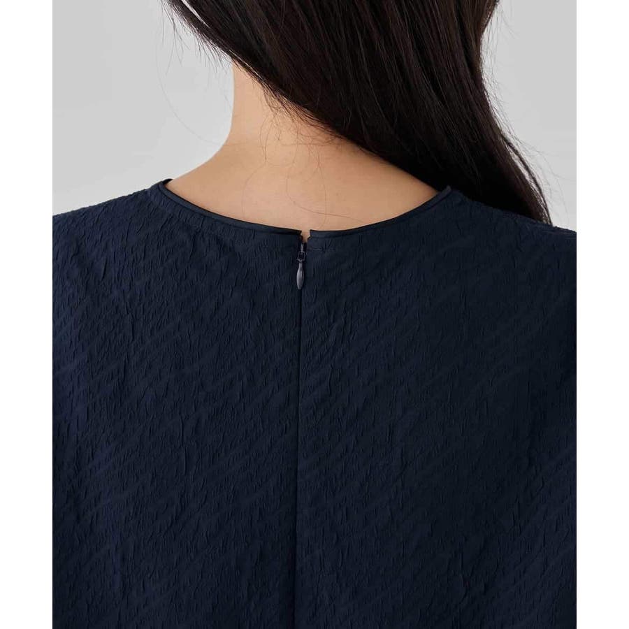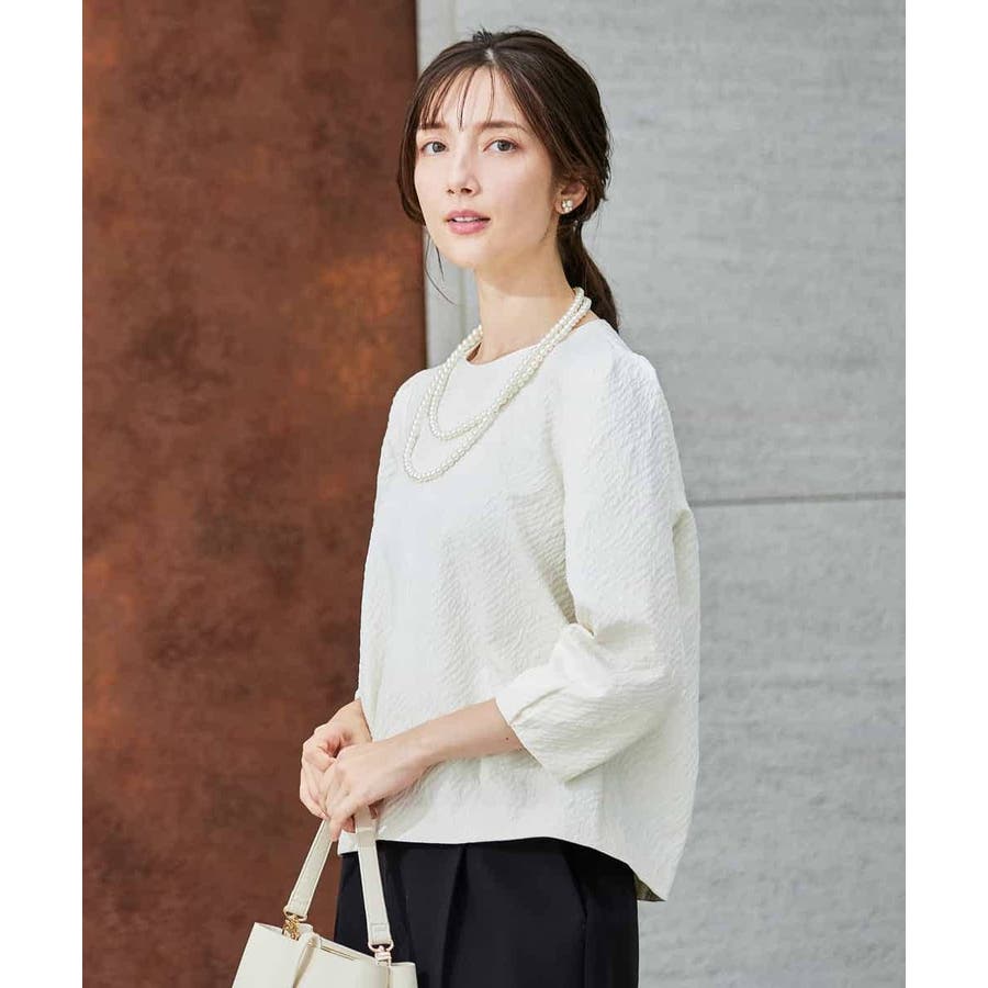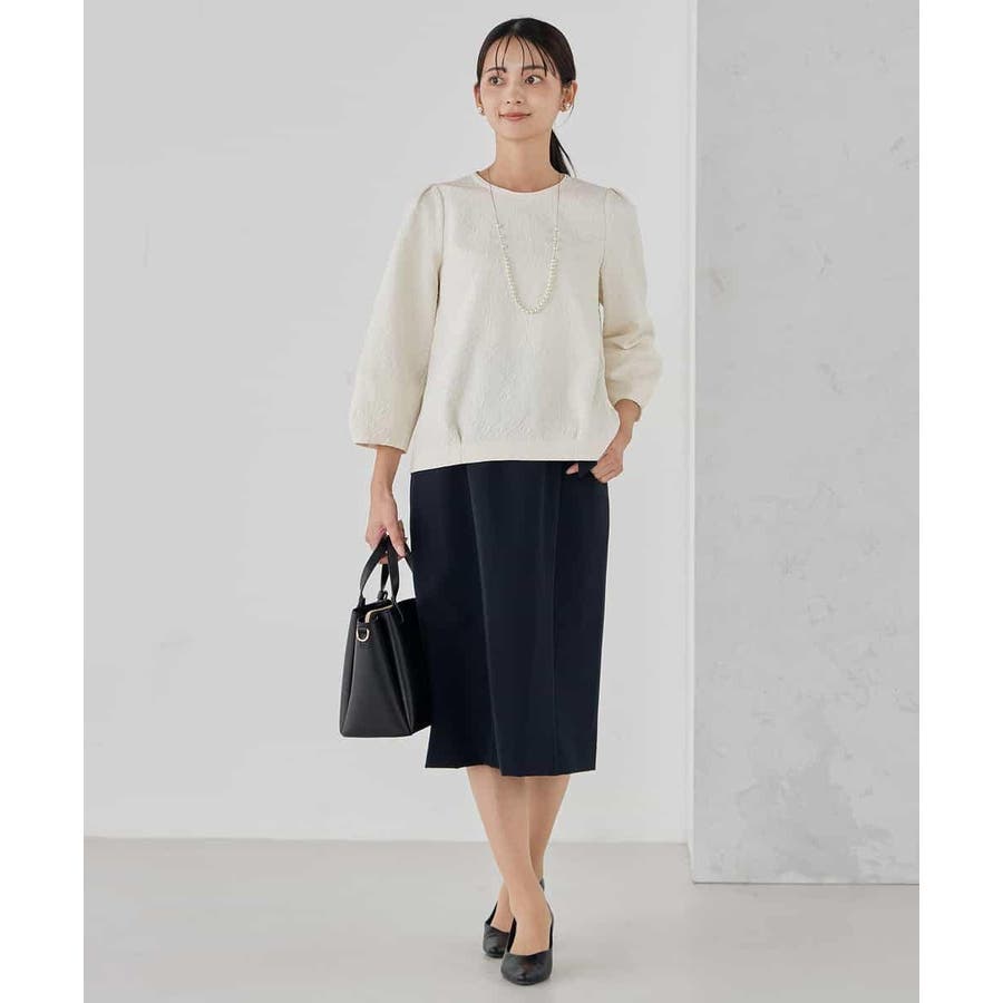 ・袖に切り替えが入ったコクーンスリーブは、こなれた印象に