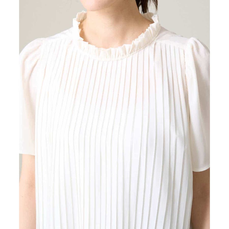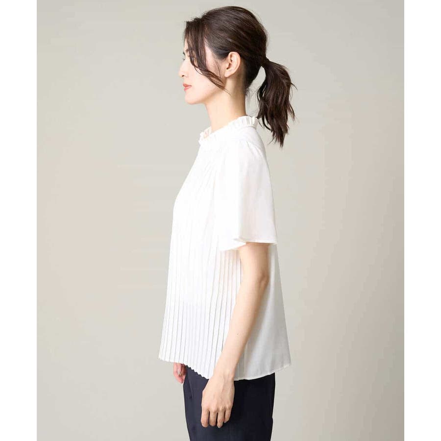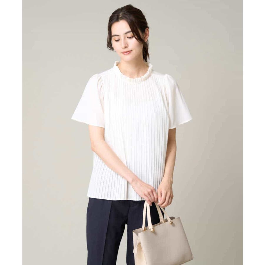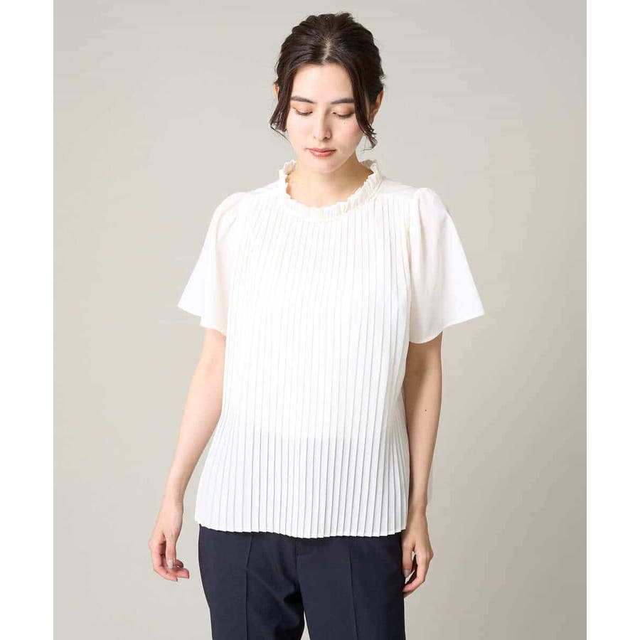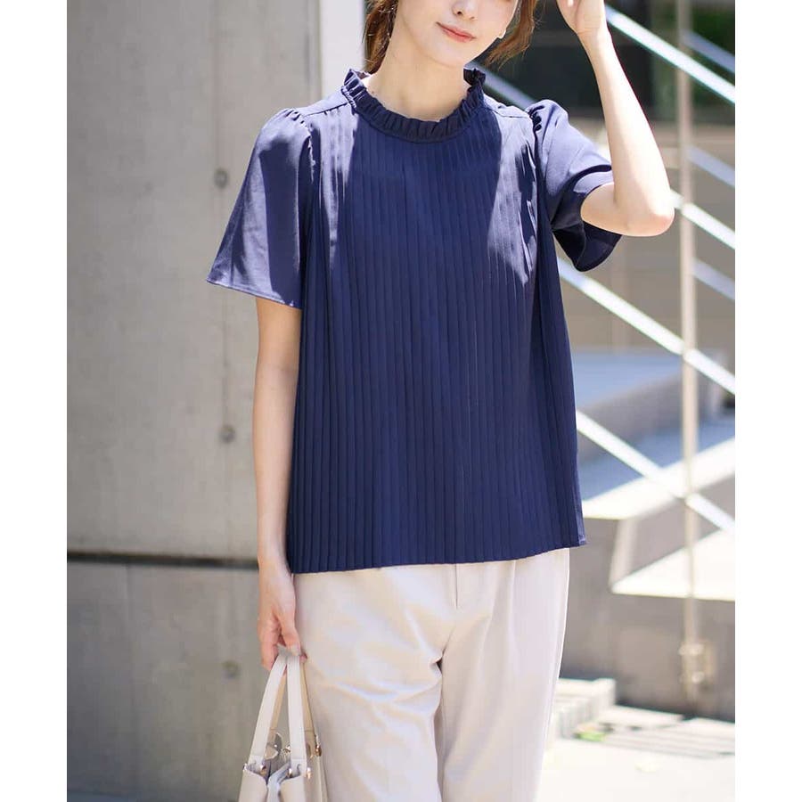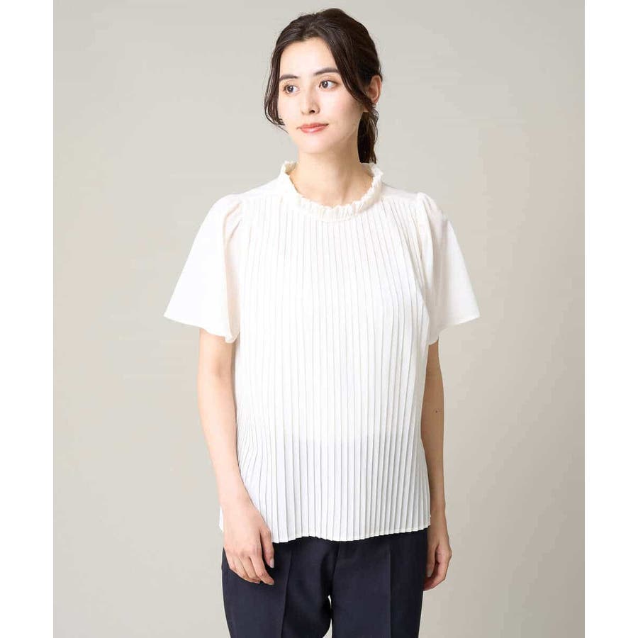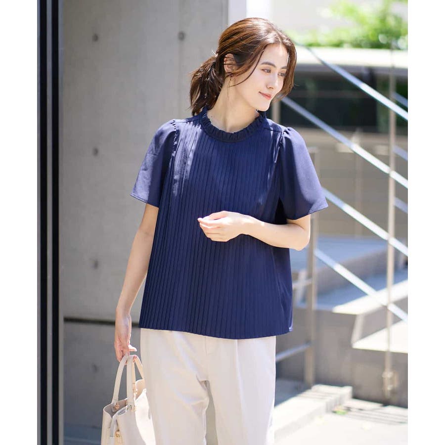 ・フロントのプリーツデザインが華やかな印象のブラウス