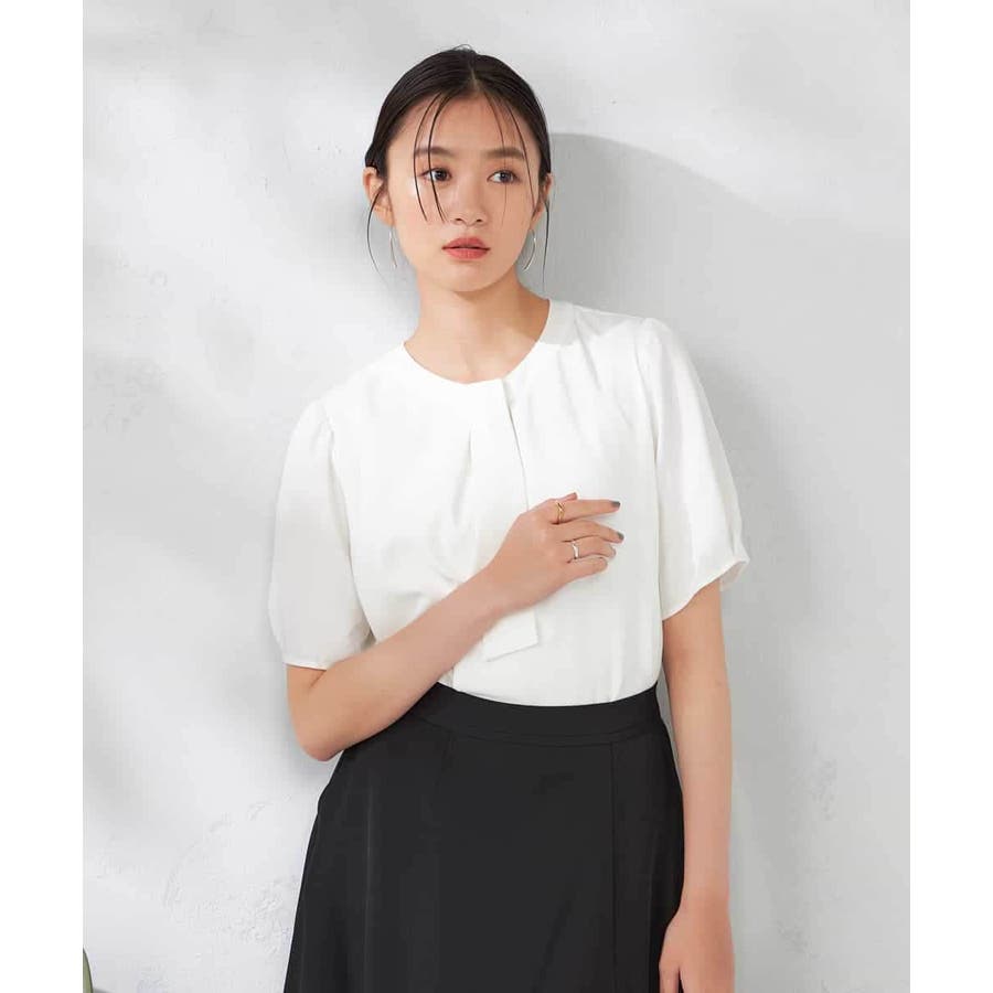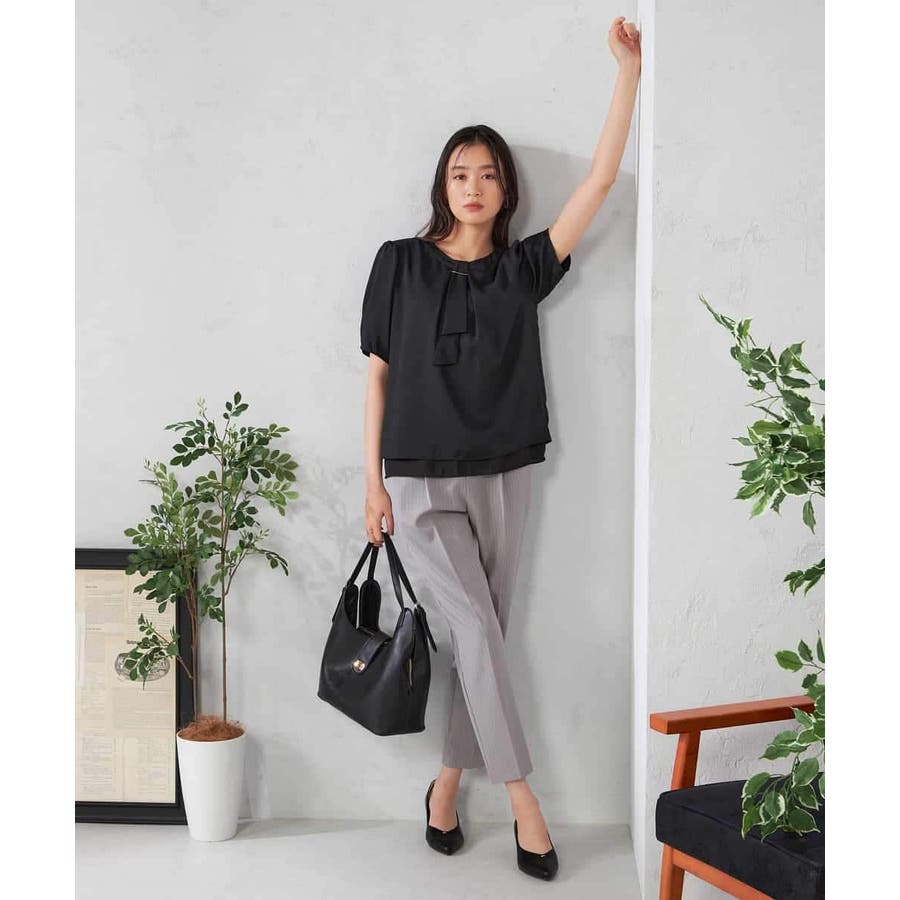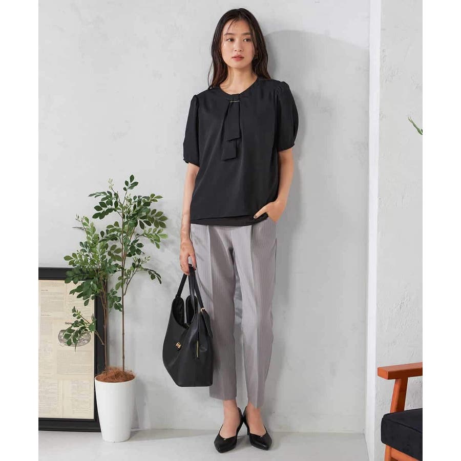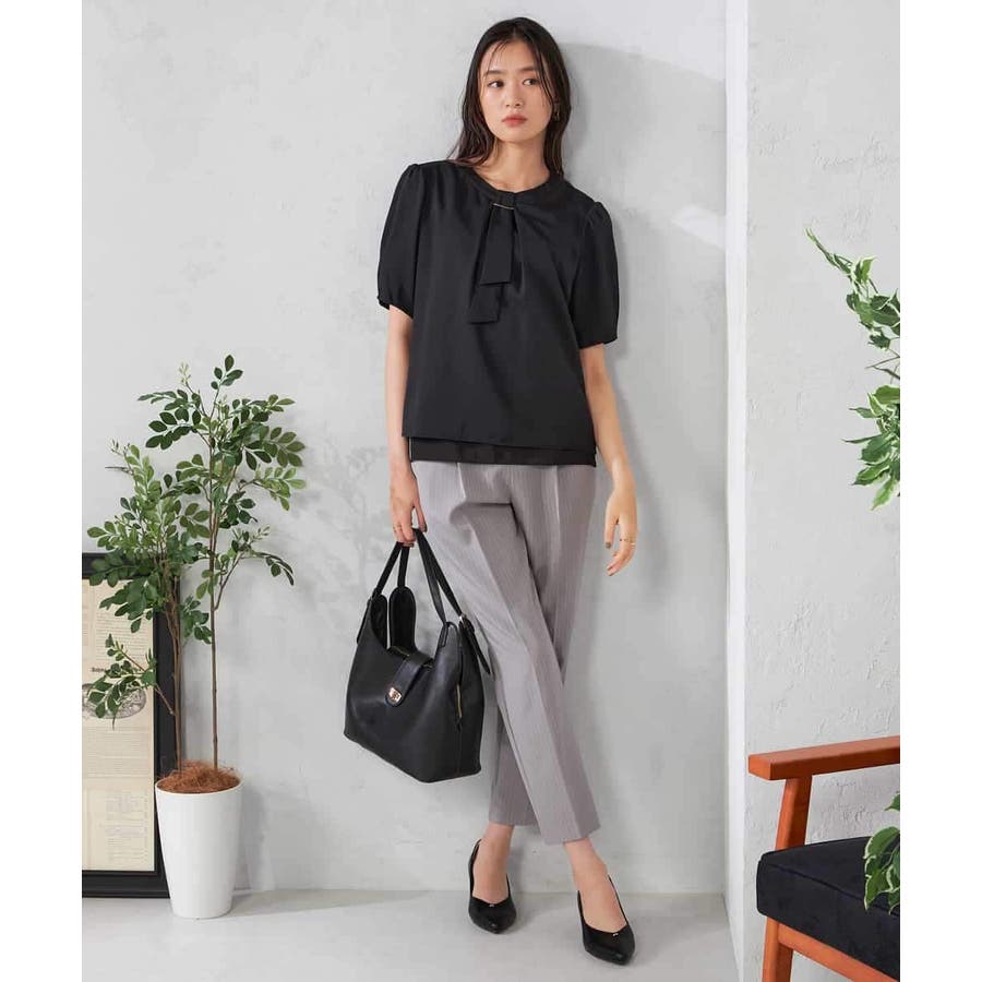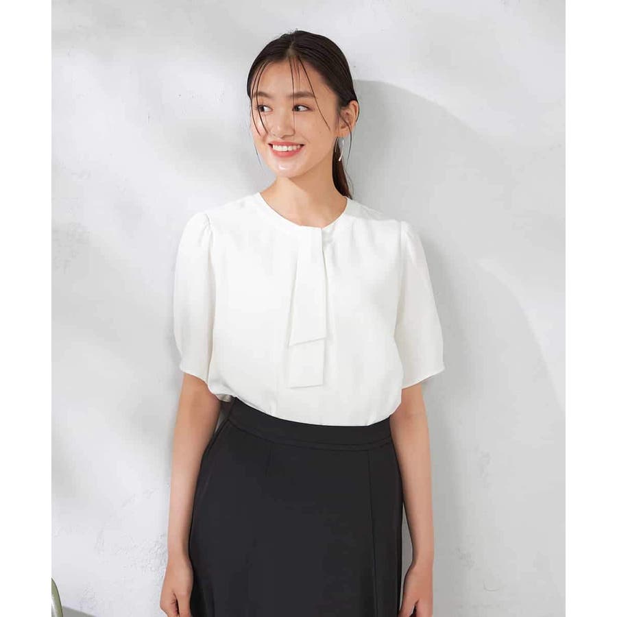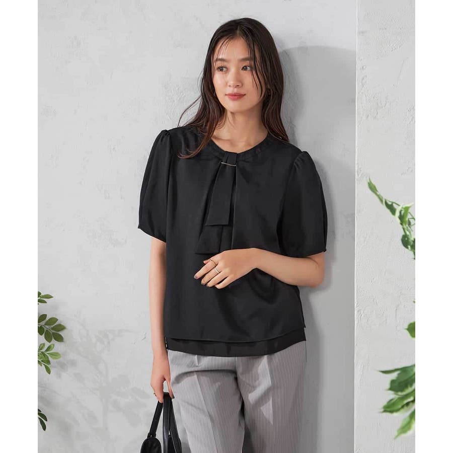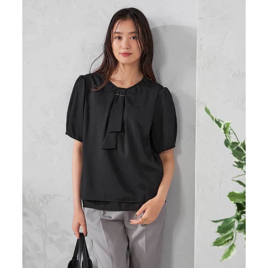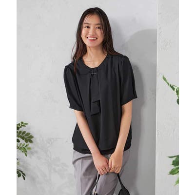 【ストレッチ/洗える】チャーム付きボウタイブラウス