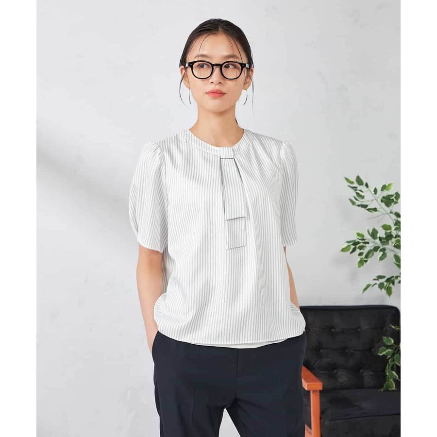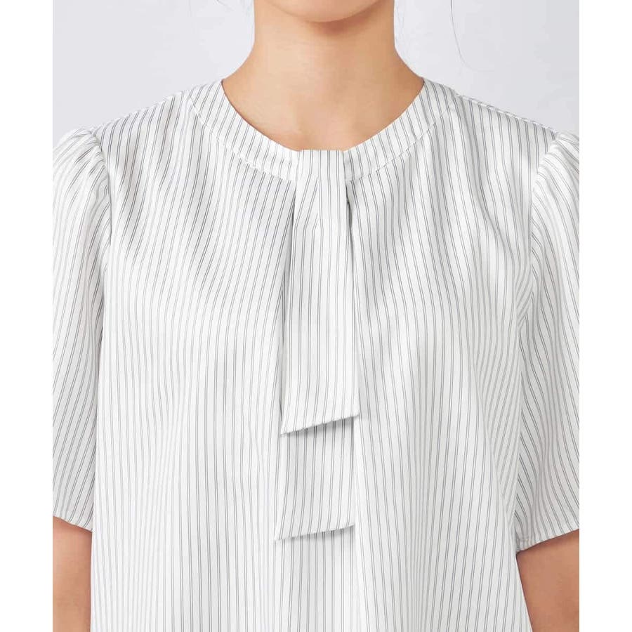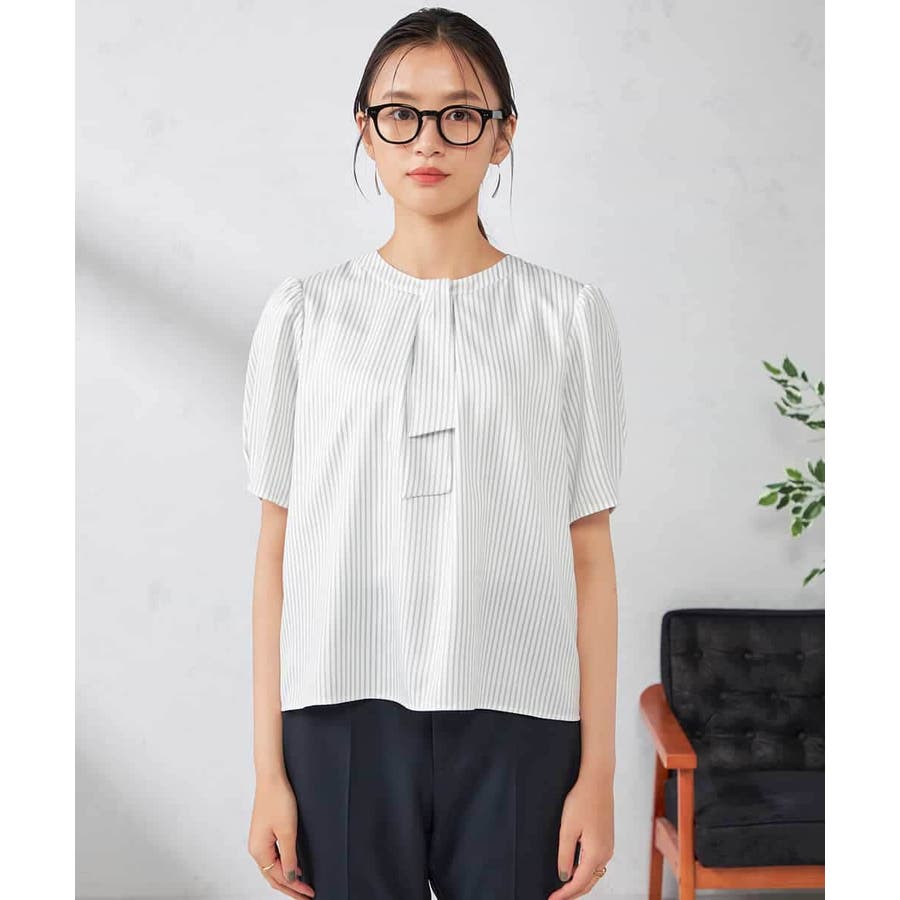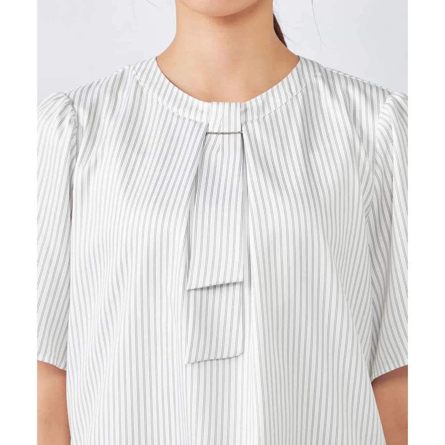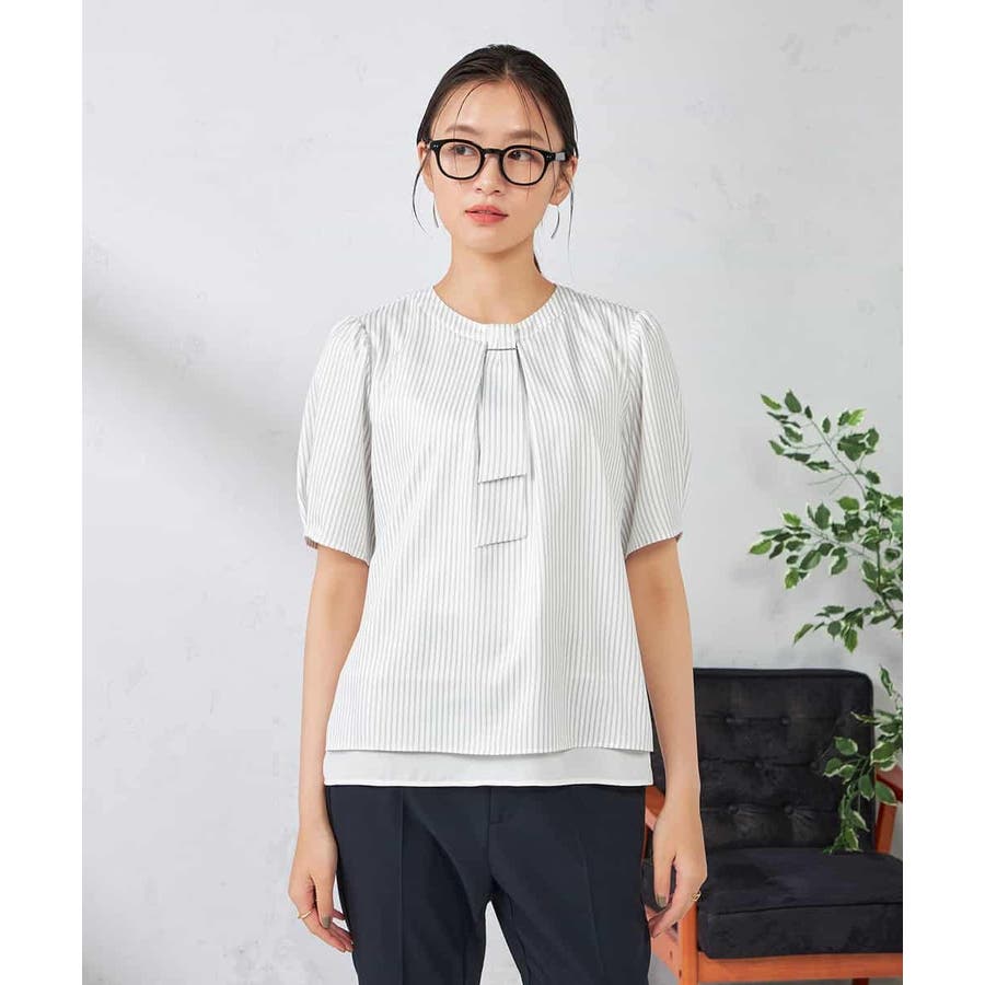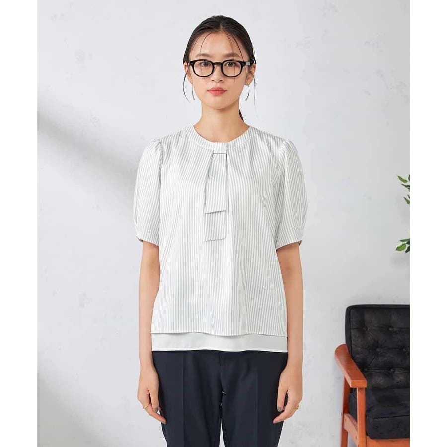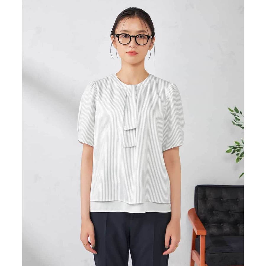 【ストレッチ/洗える】チャーム付きボウタイブラウス