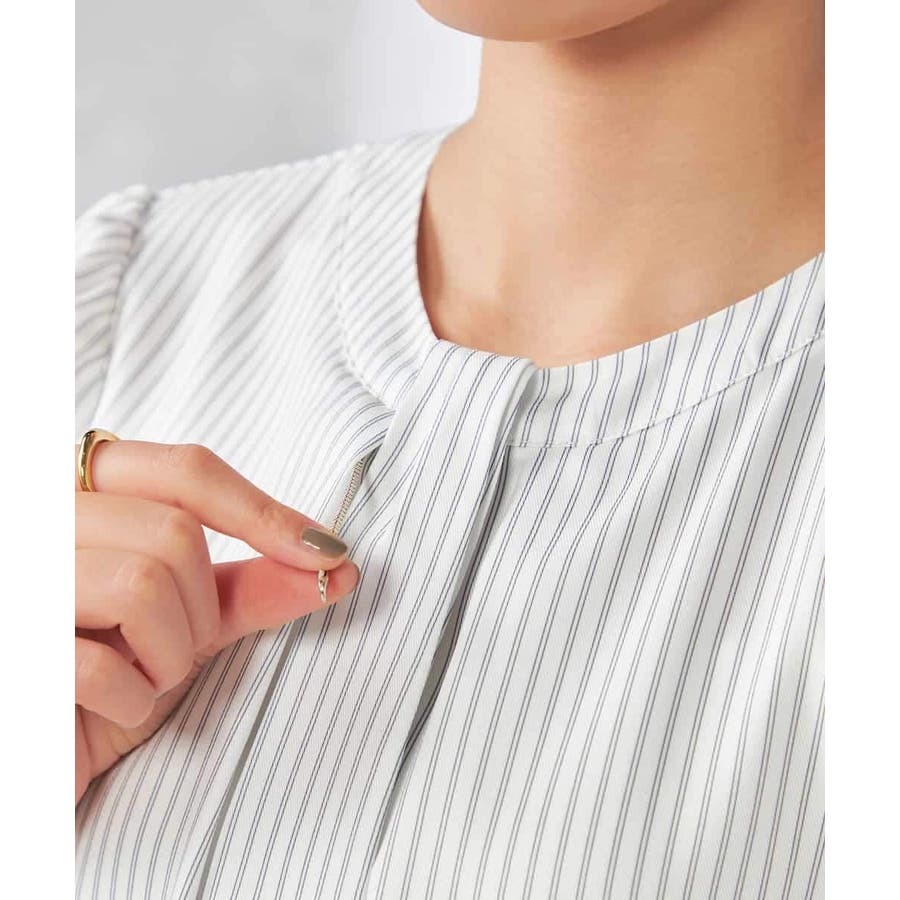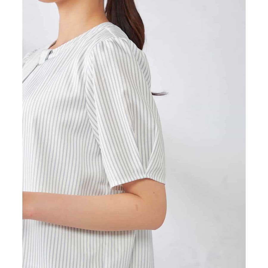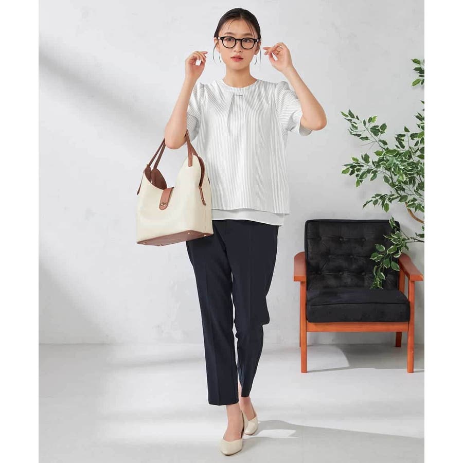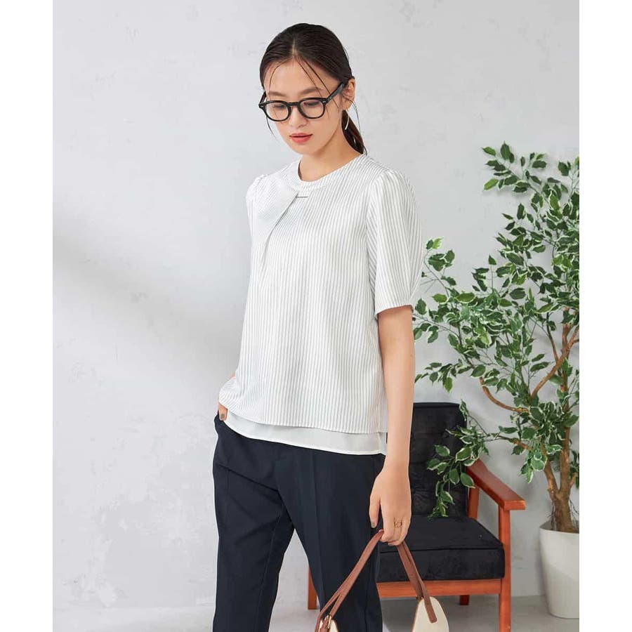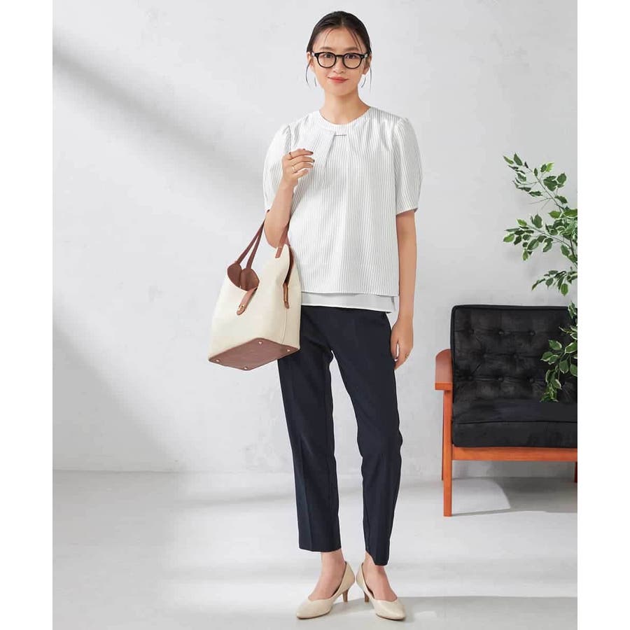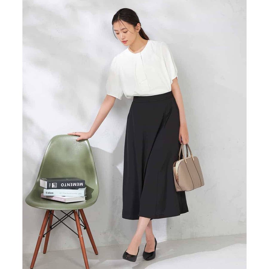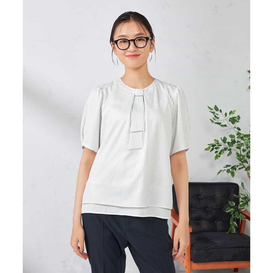 【ストレッチ/洗える】チャーム付きボウタイブラウス