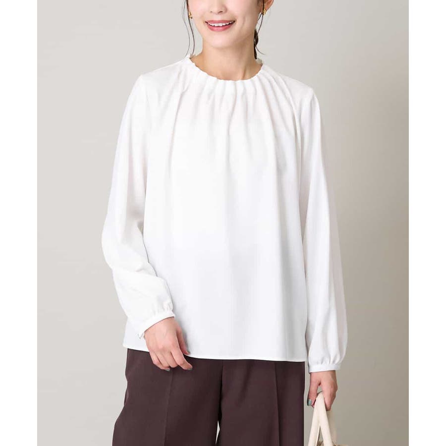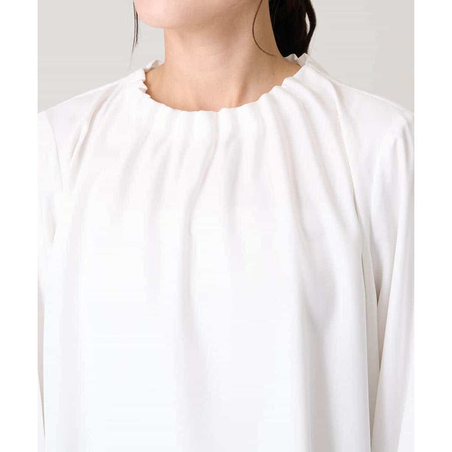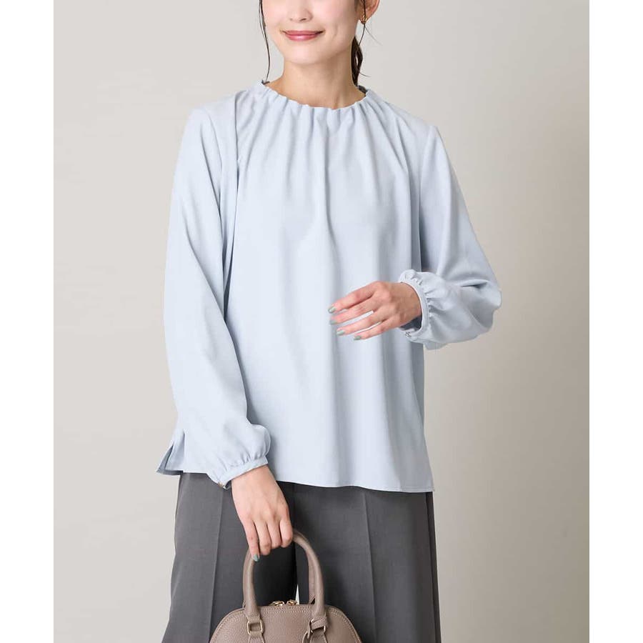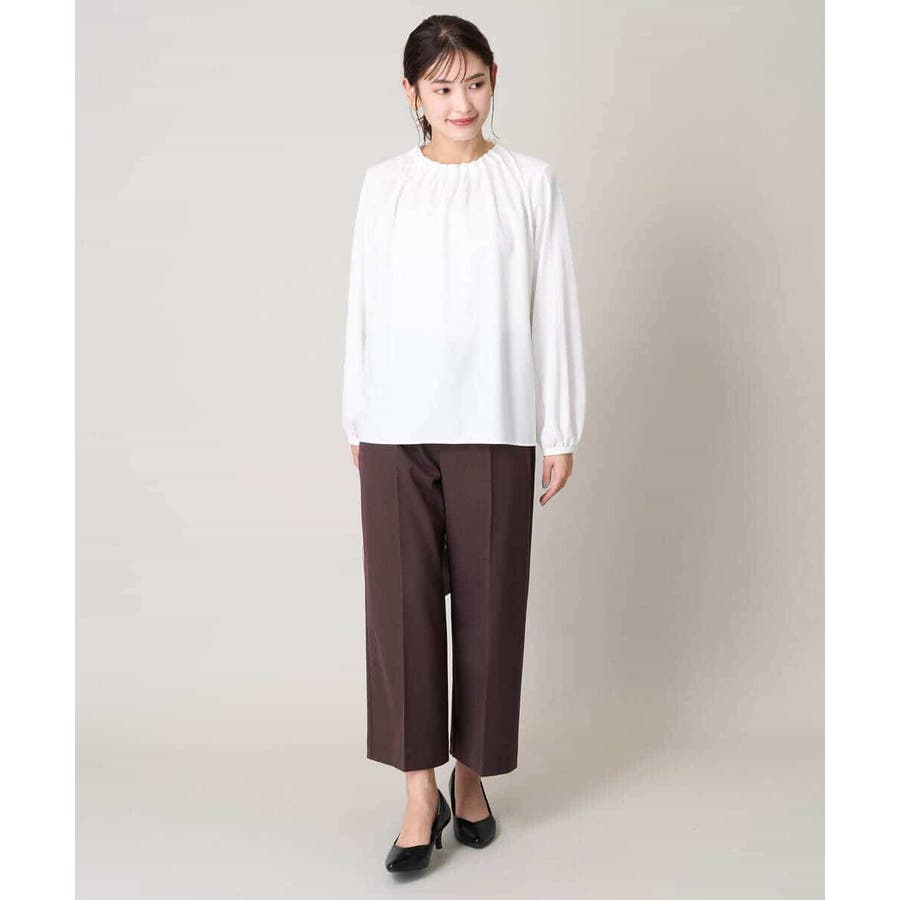 【洗える】タックネックブラウス