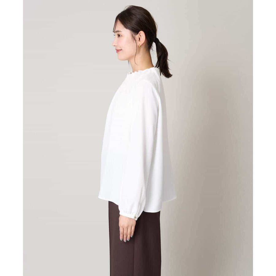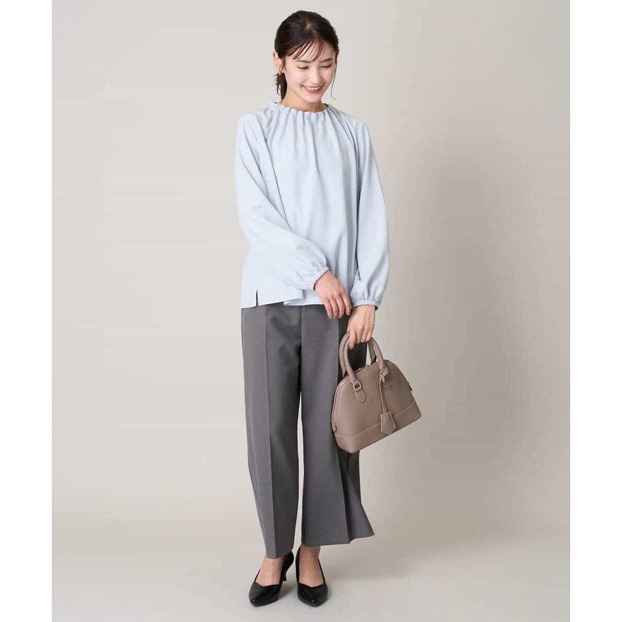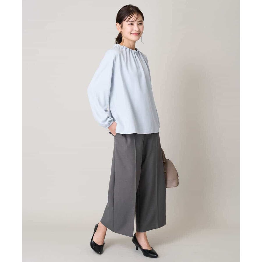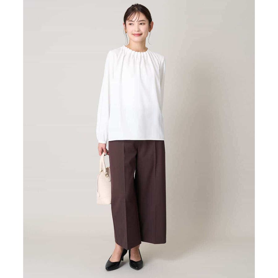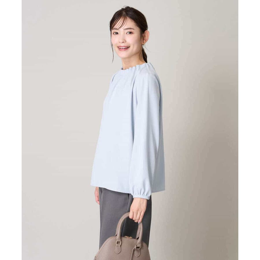 【洗える】タックネックブラウス