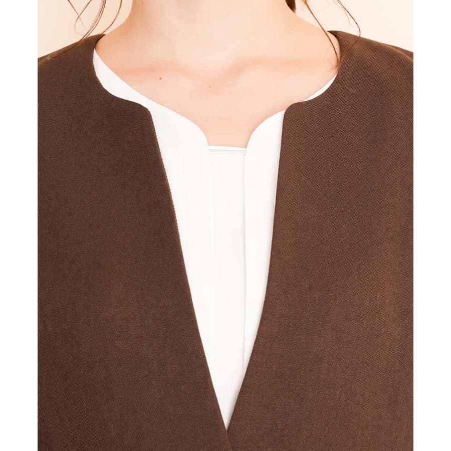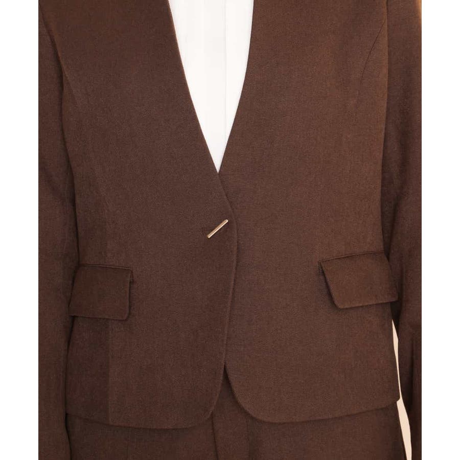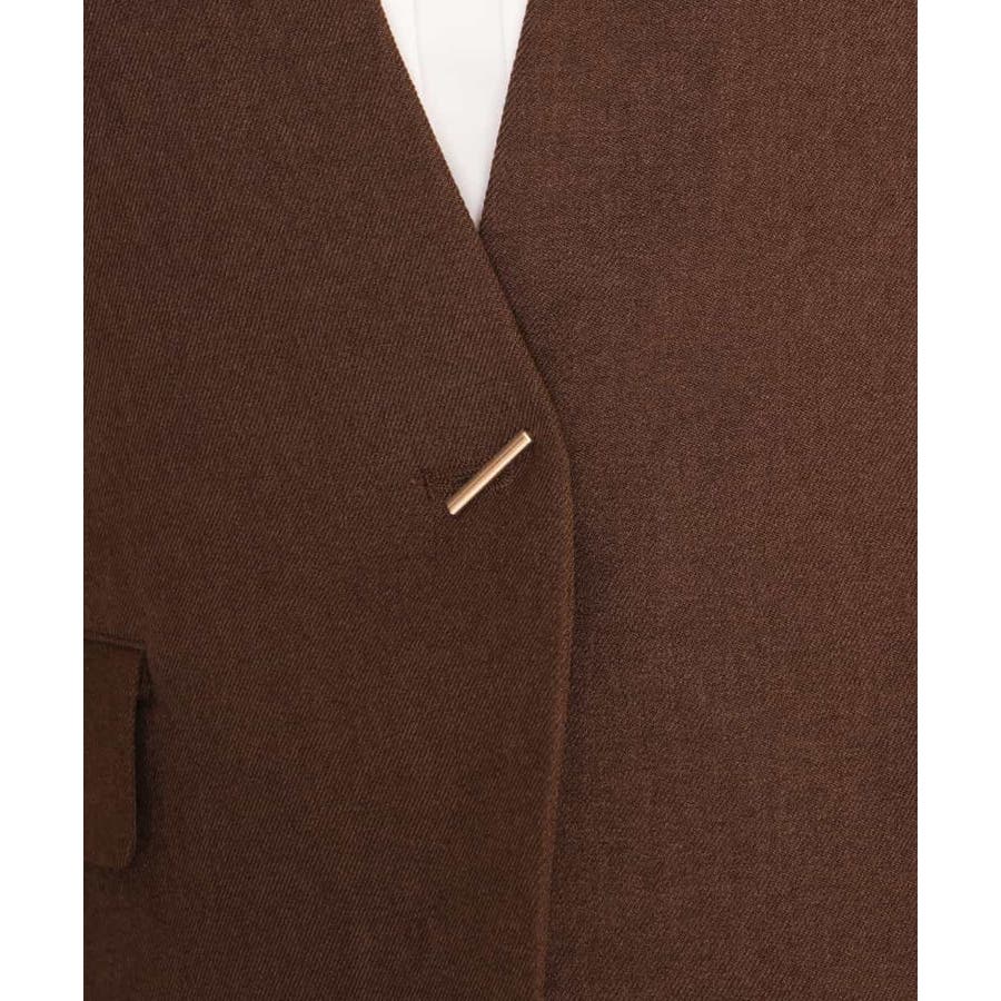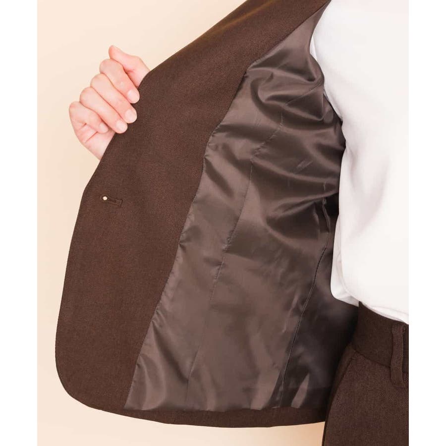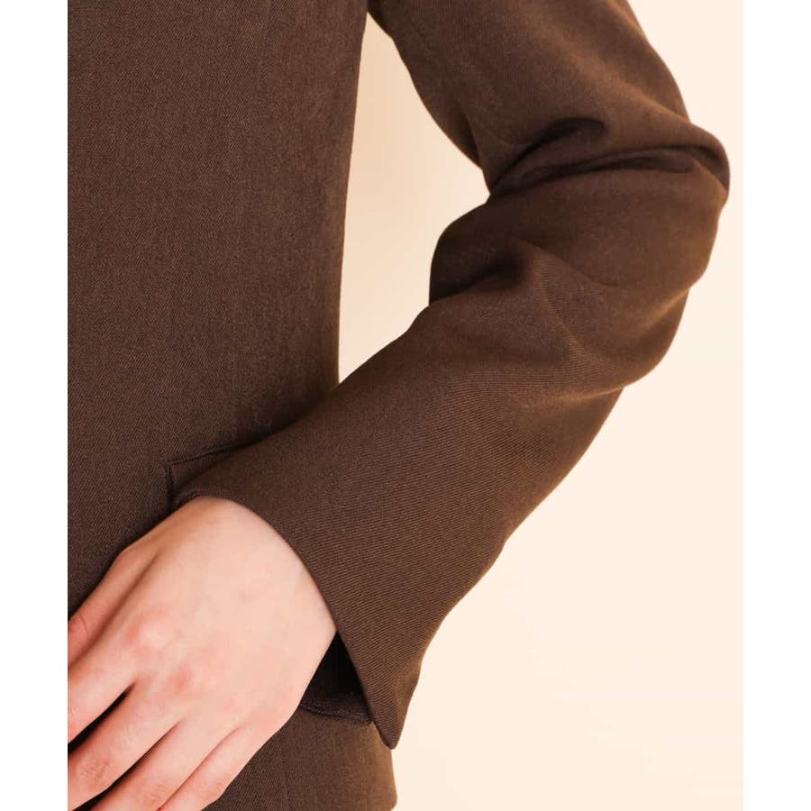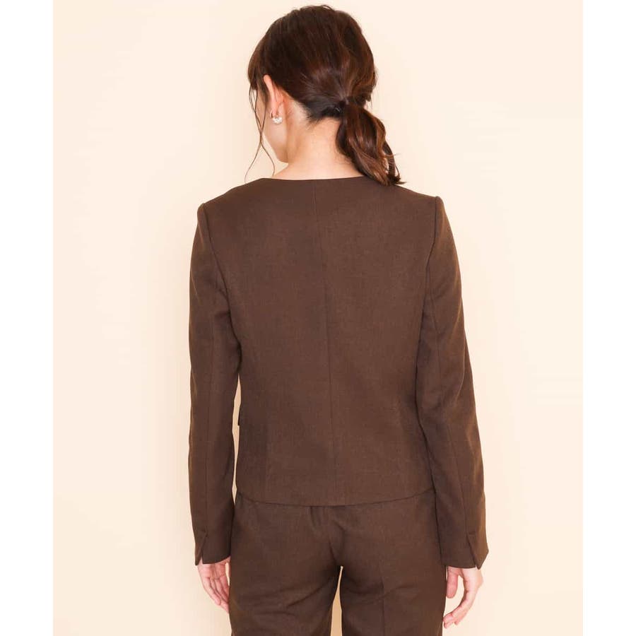 【セットアップ対応】ブラウン バーボタン付きキーネックジャケット