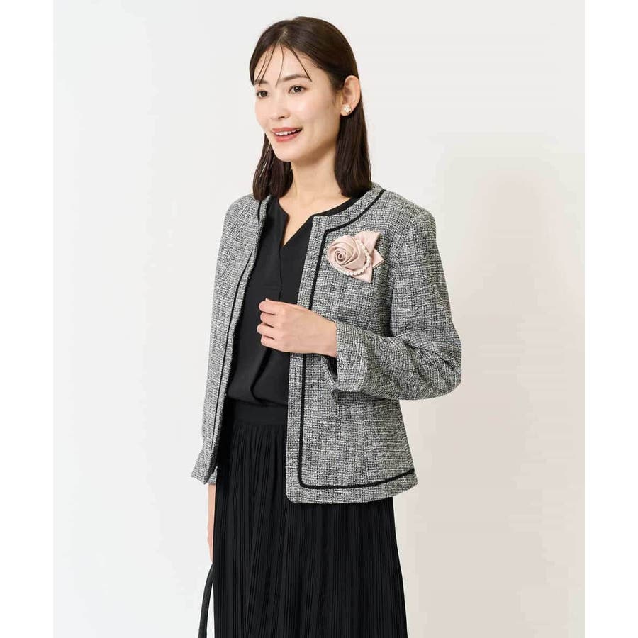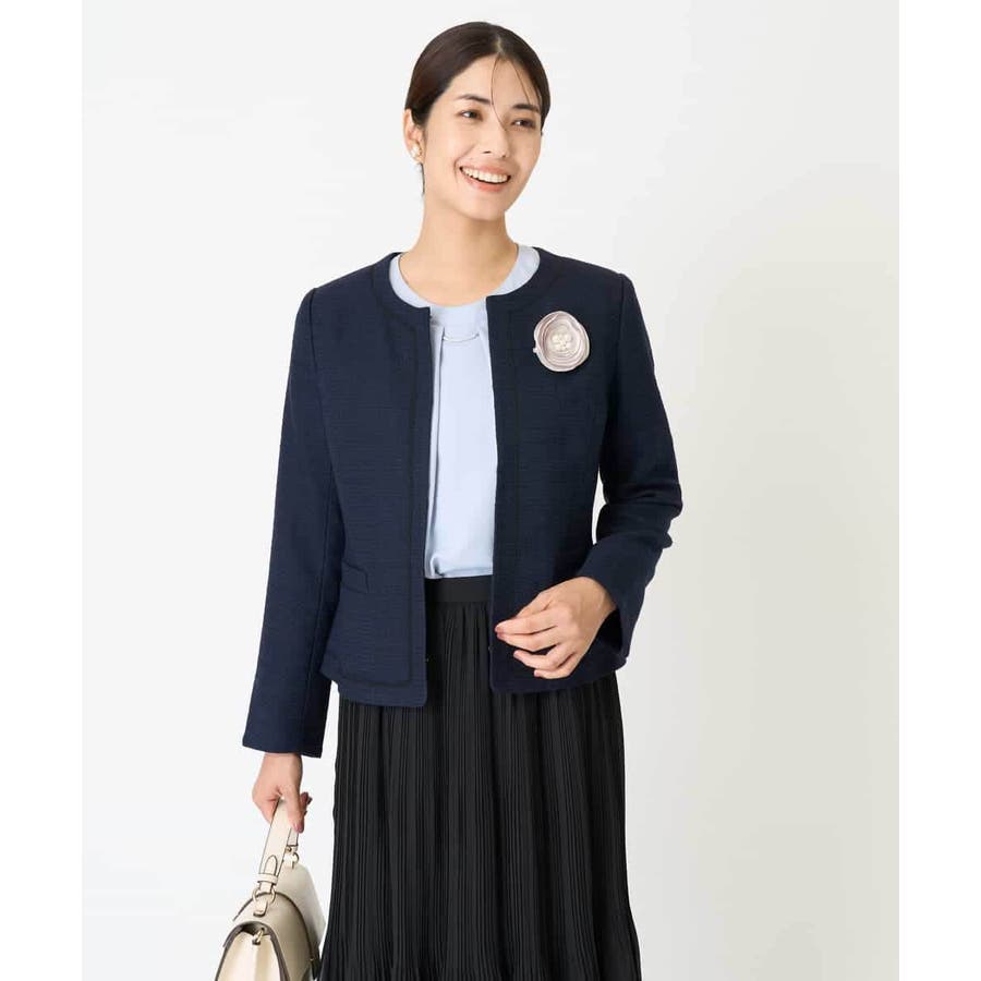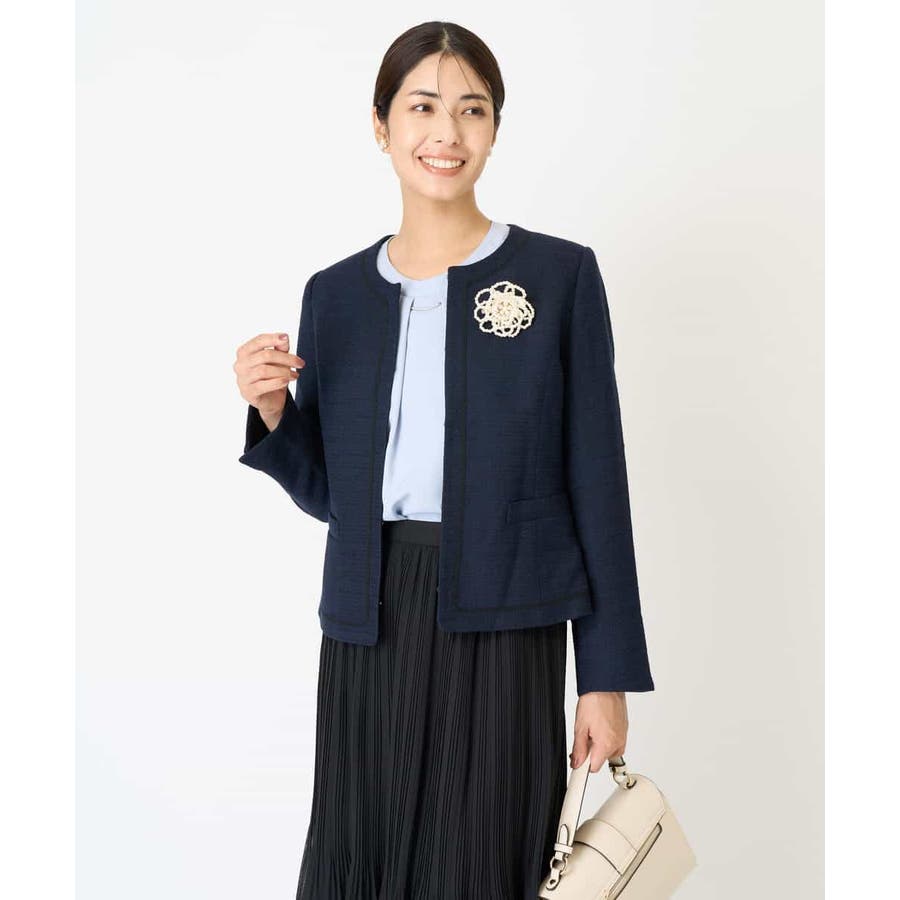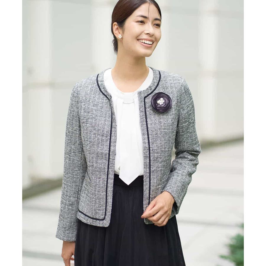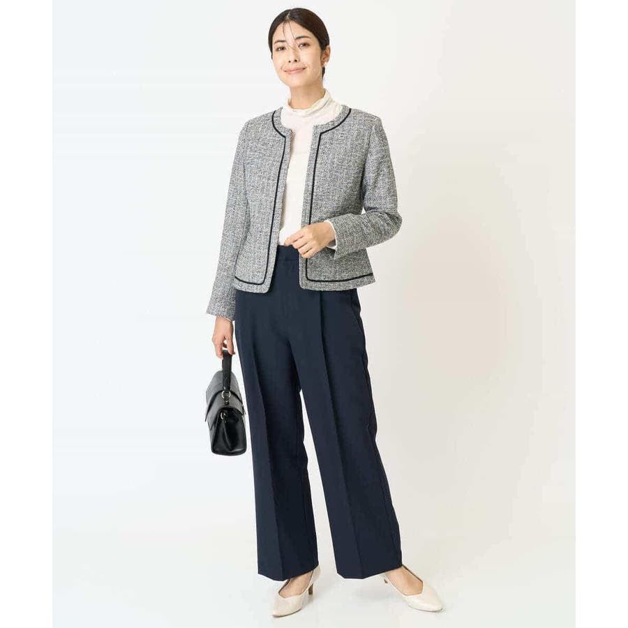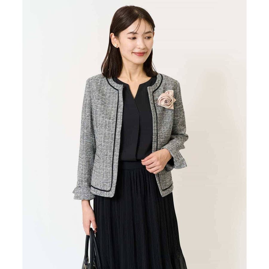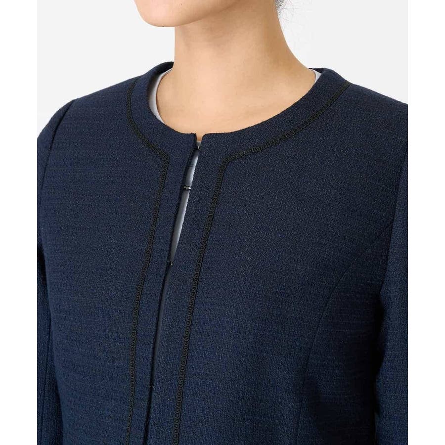 ・さり気ないラメが華やかなジャケットは上品なコードテープがアクセントに