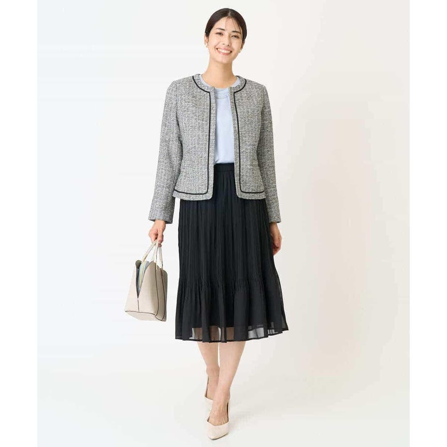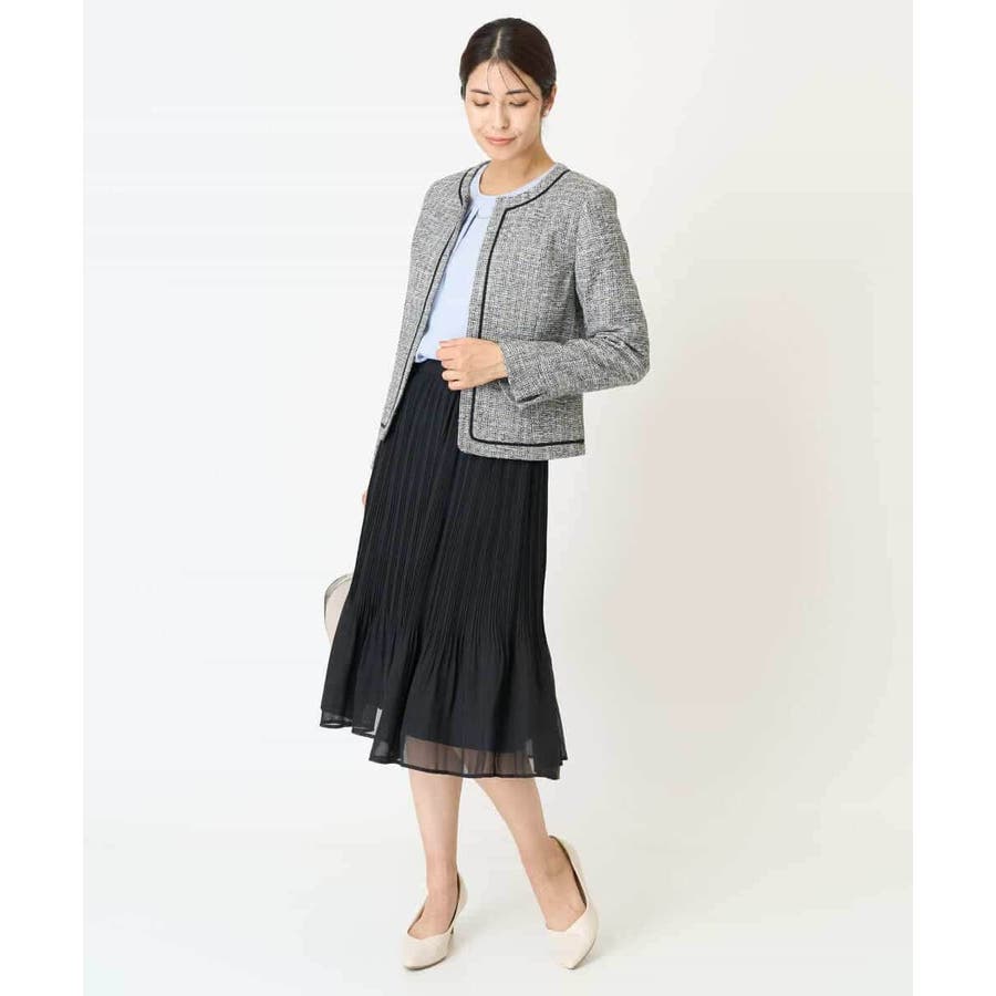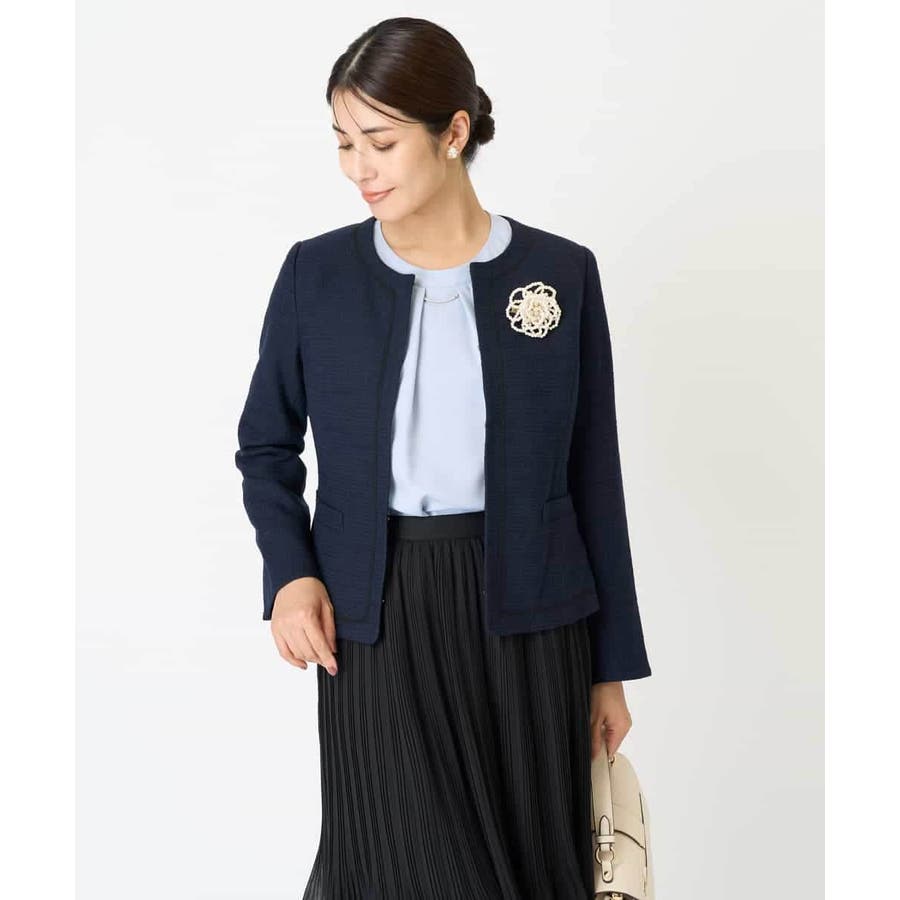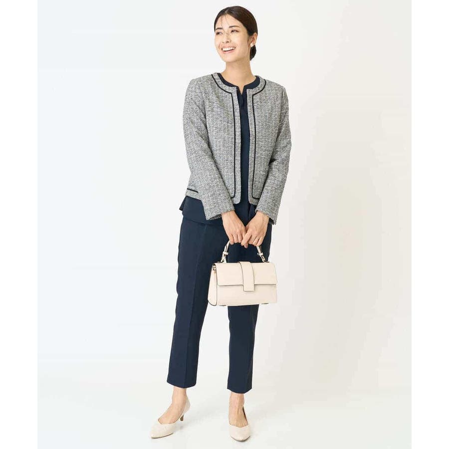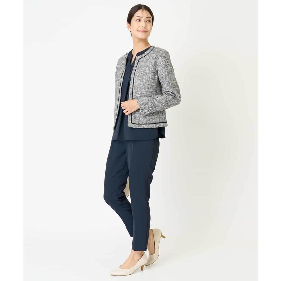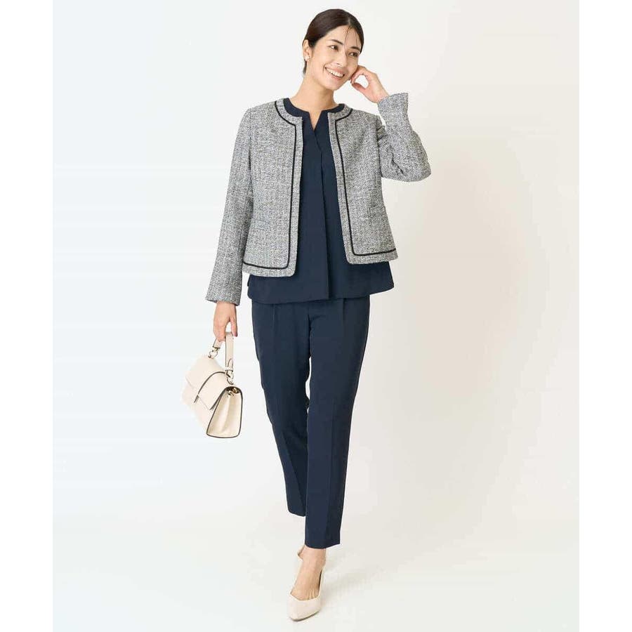 ・さり気ないラメが華やかなジャケットは上品なコードテープがアクセントに