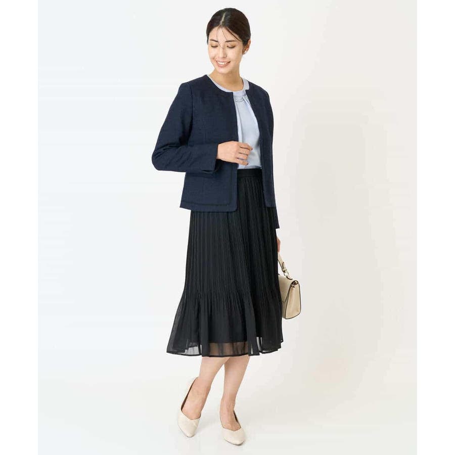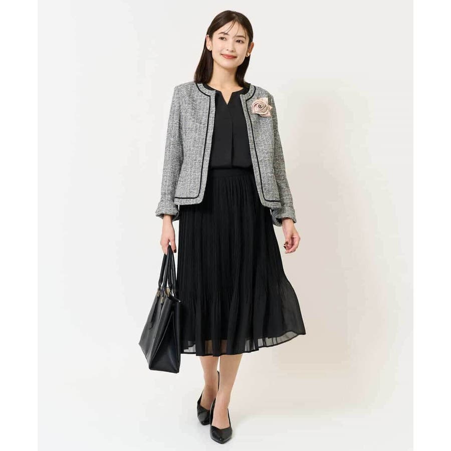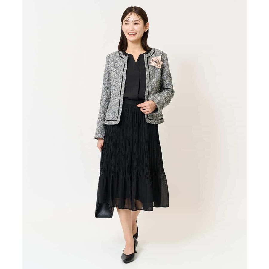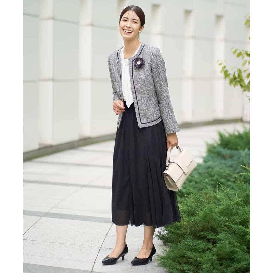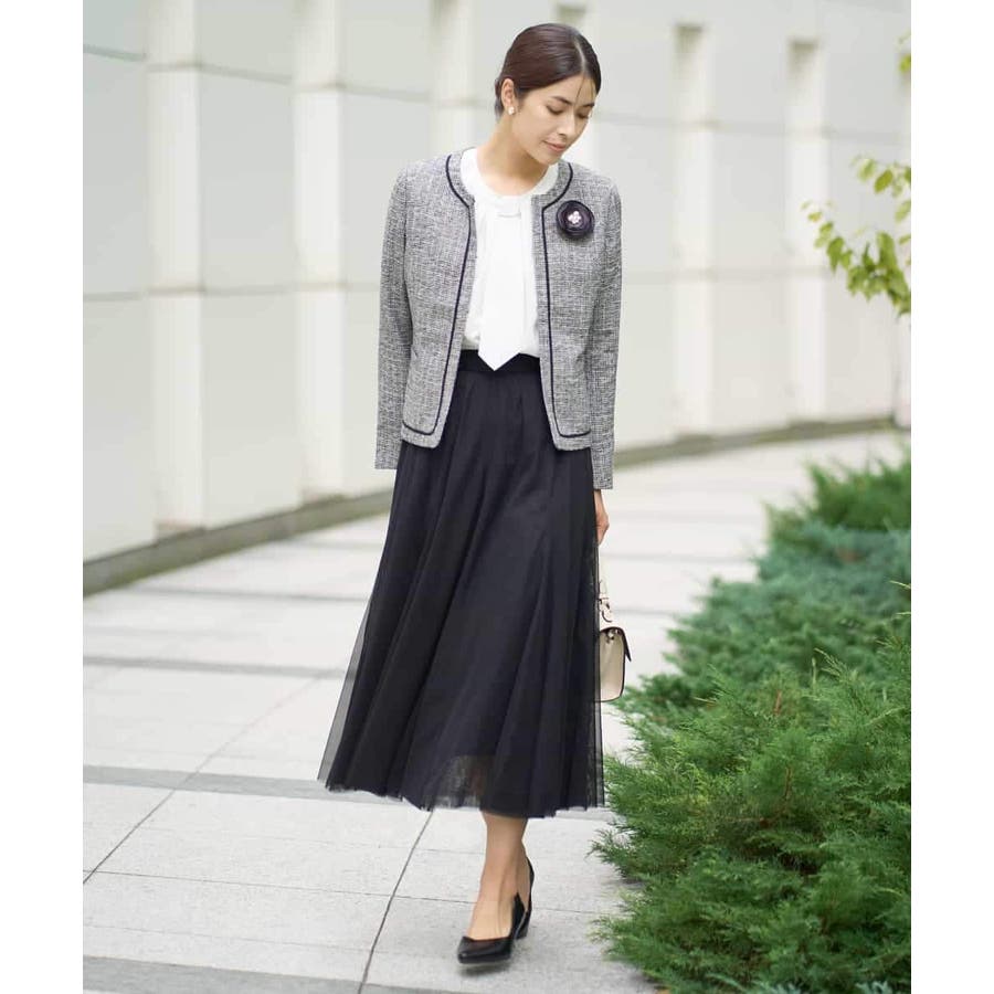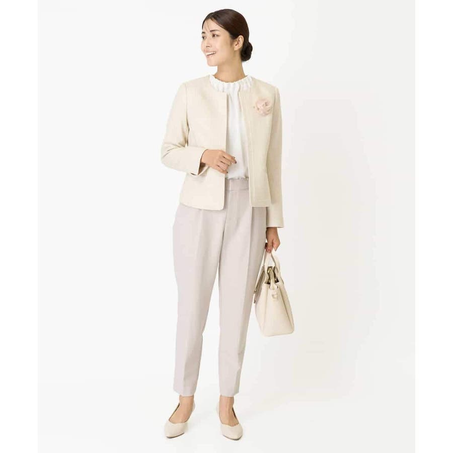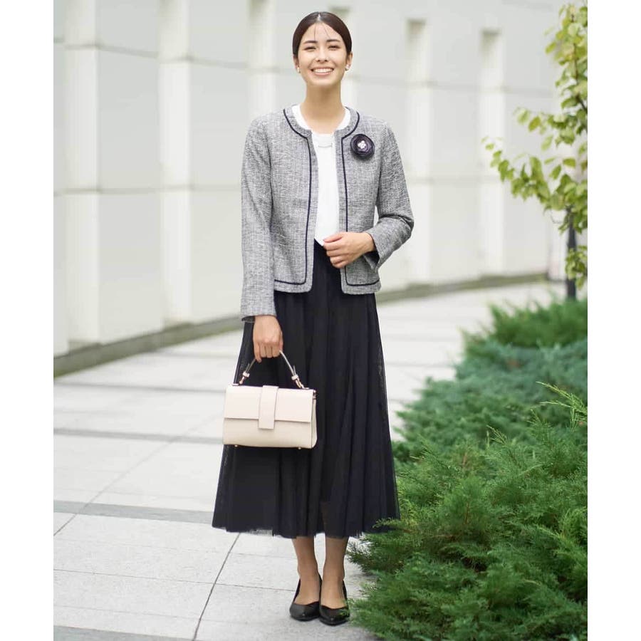 ・さり気ないラメが華やかなジャケットは上品なコードテープがアクセントに