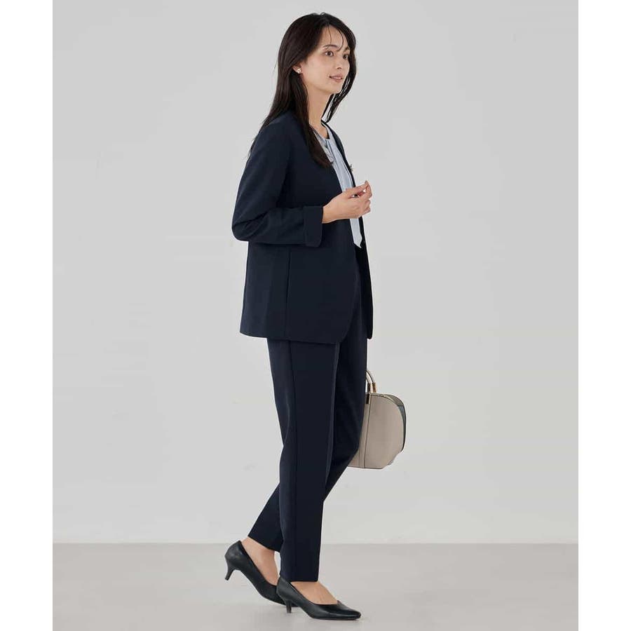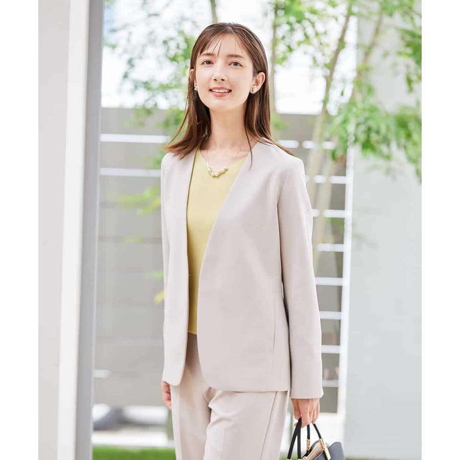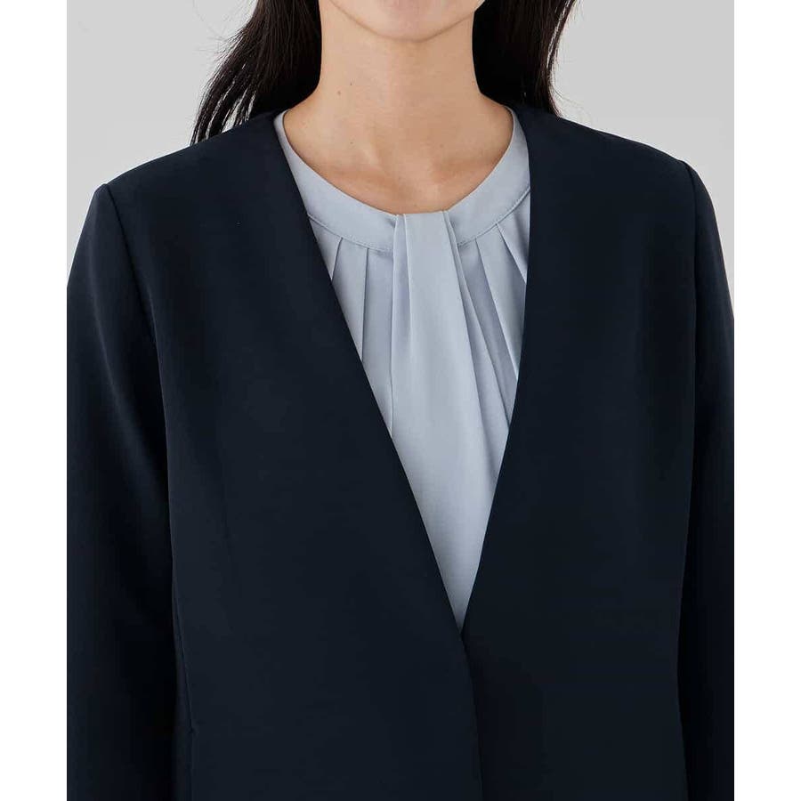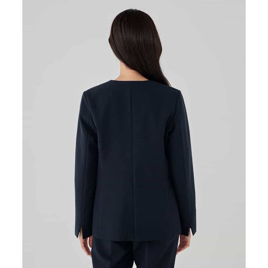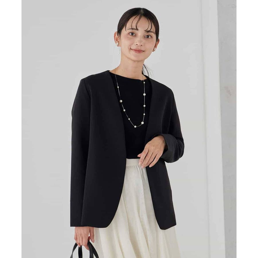 【洗える ストレッチ セットアップ対応】ダブルクロスVネックノーカラージャケット