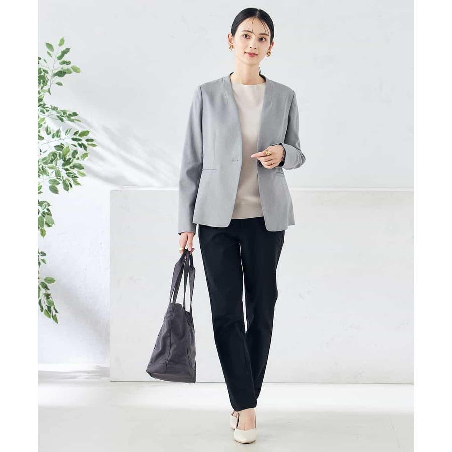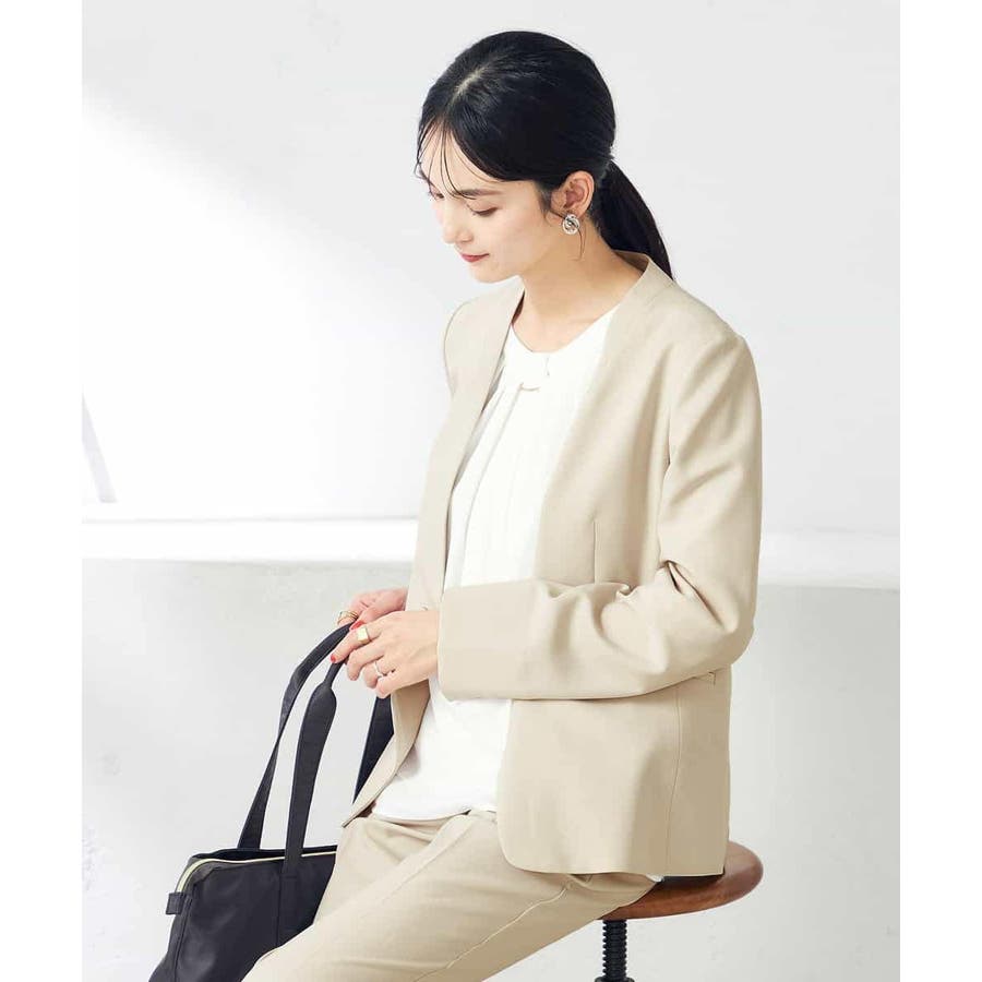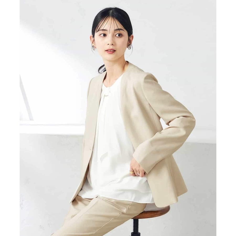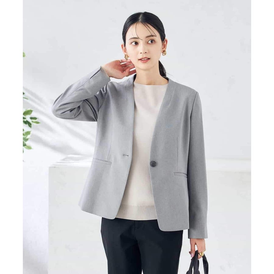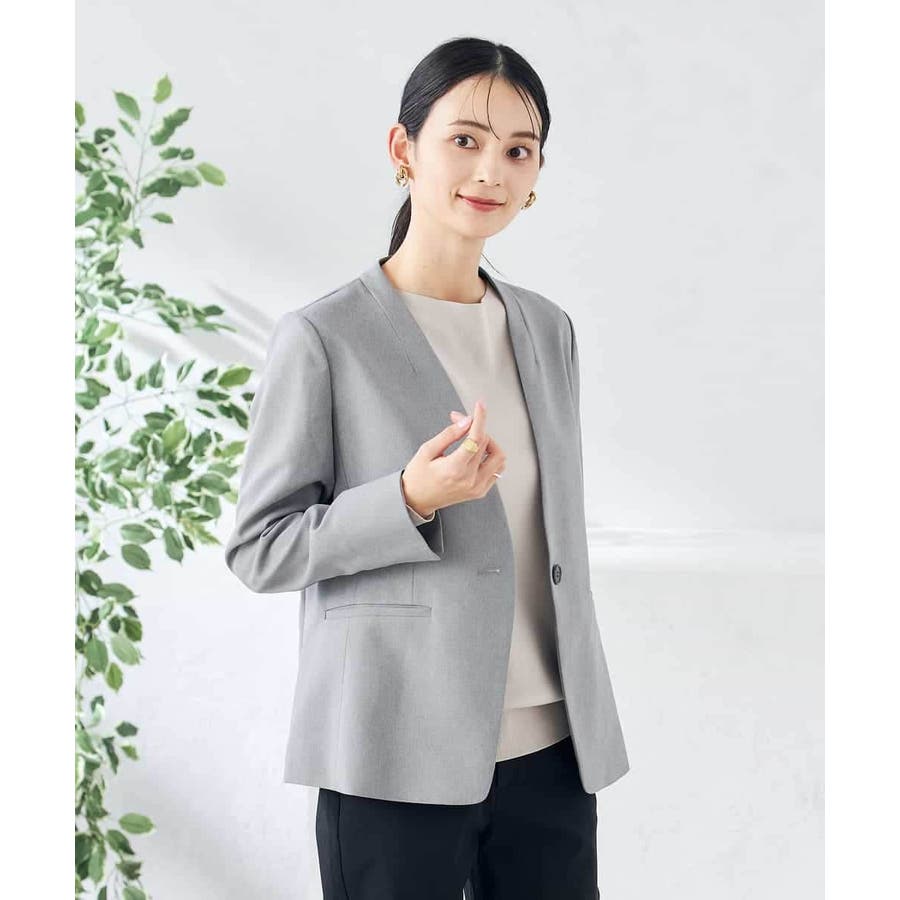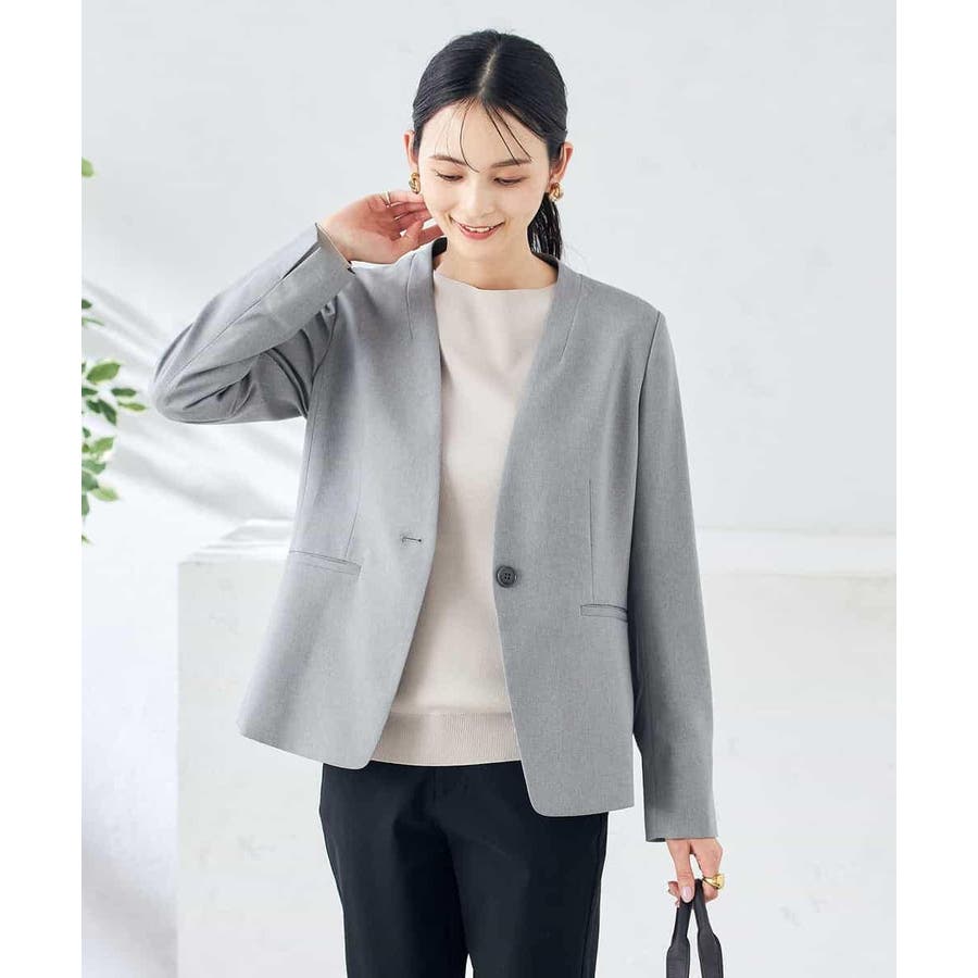 【洗える/ストレッチ/UVカット】麻調ストレッチノーカラージャケット