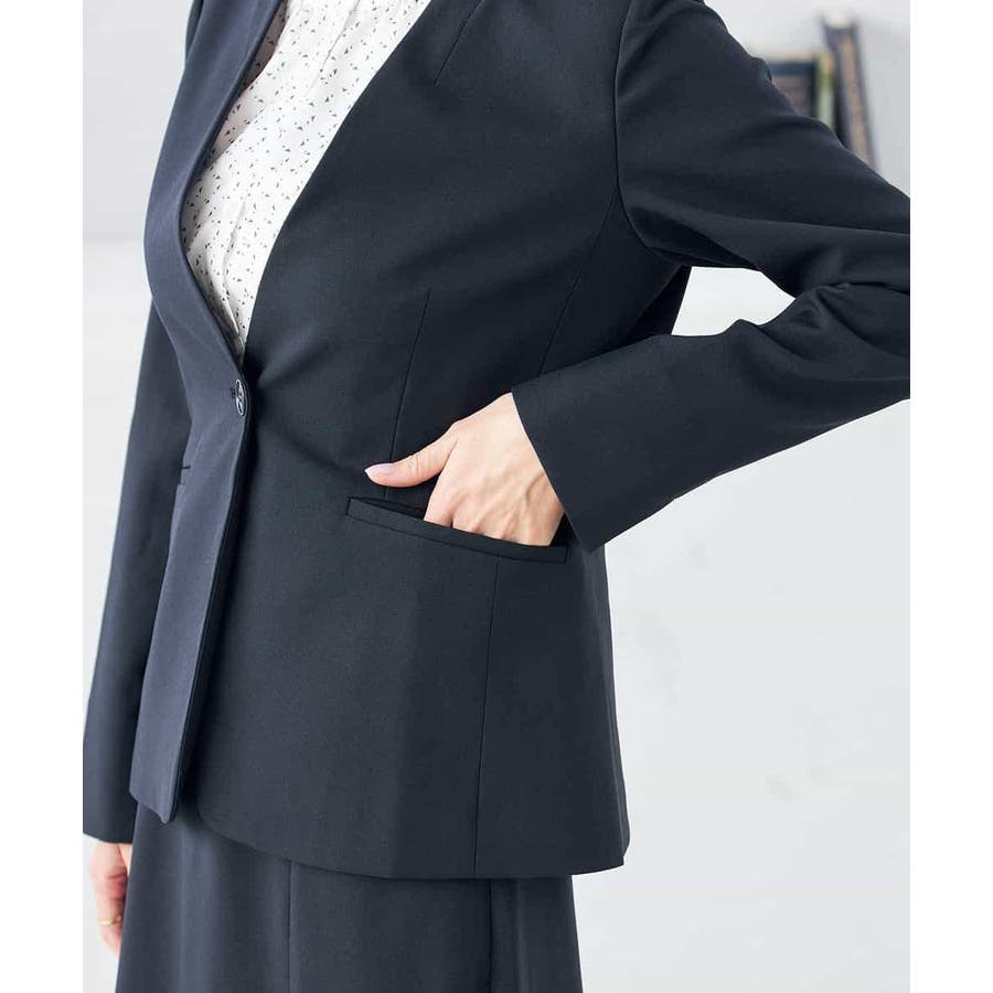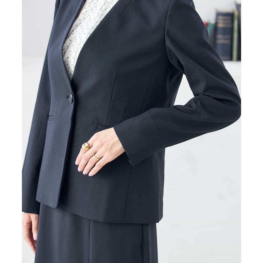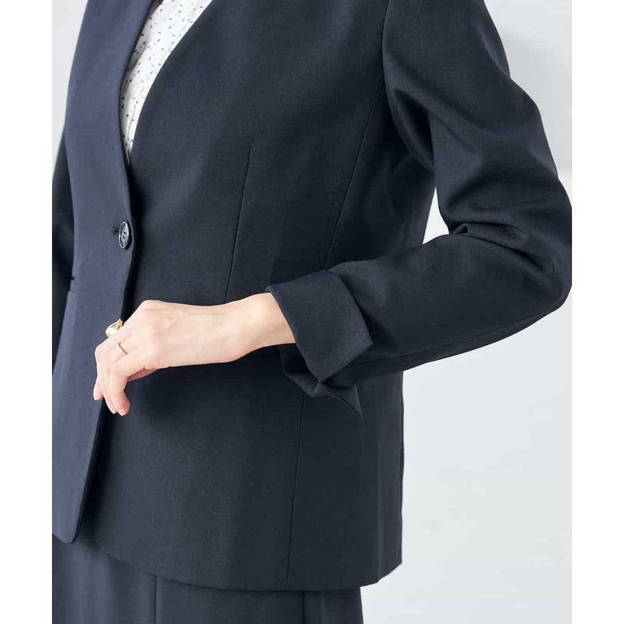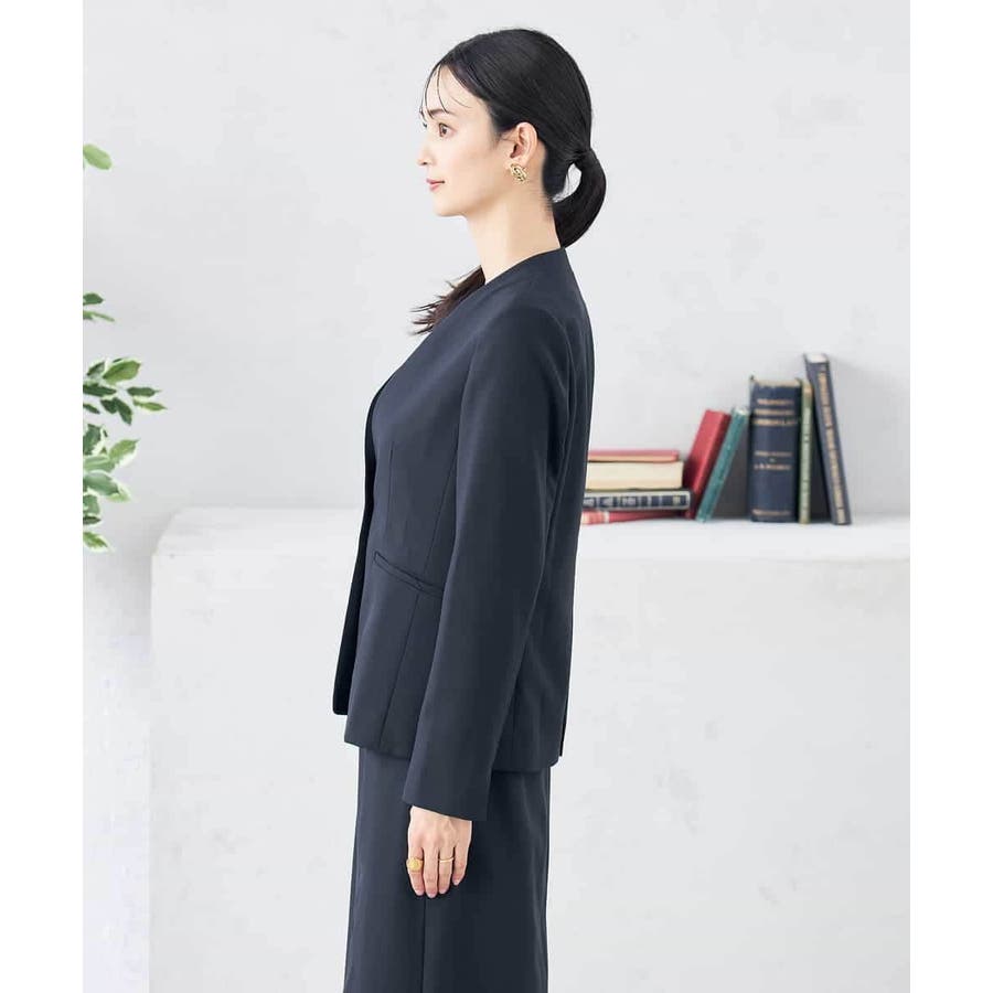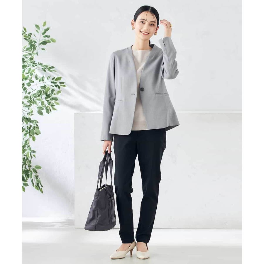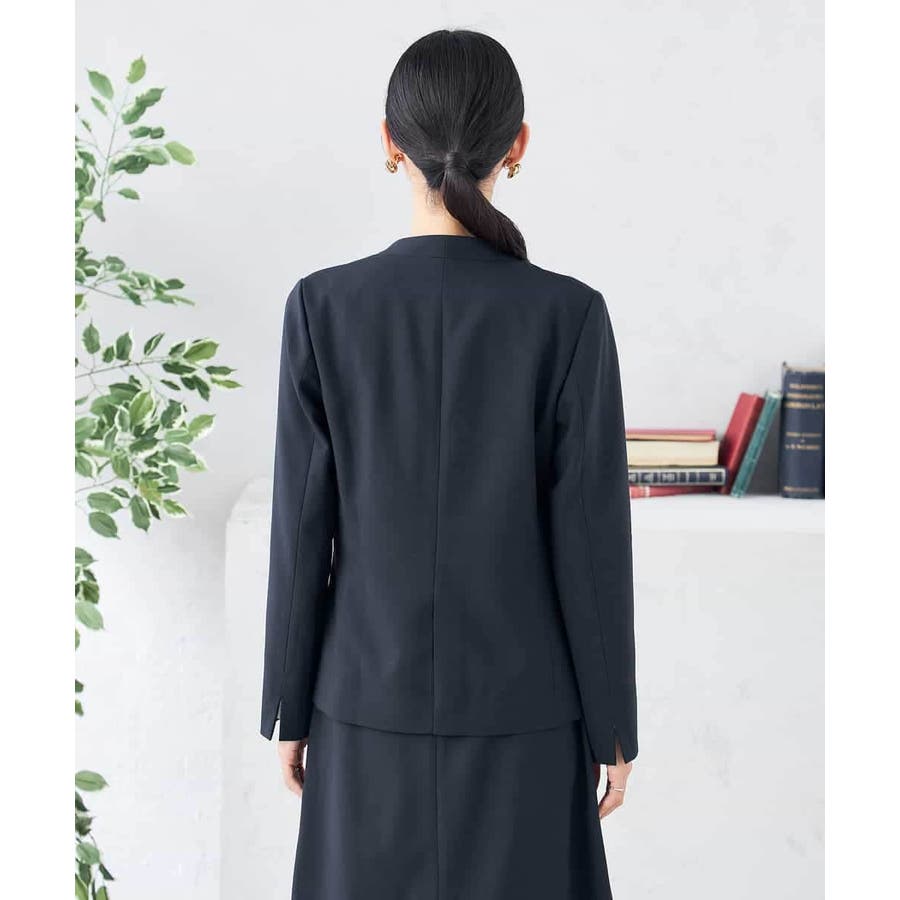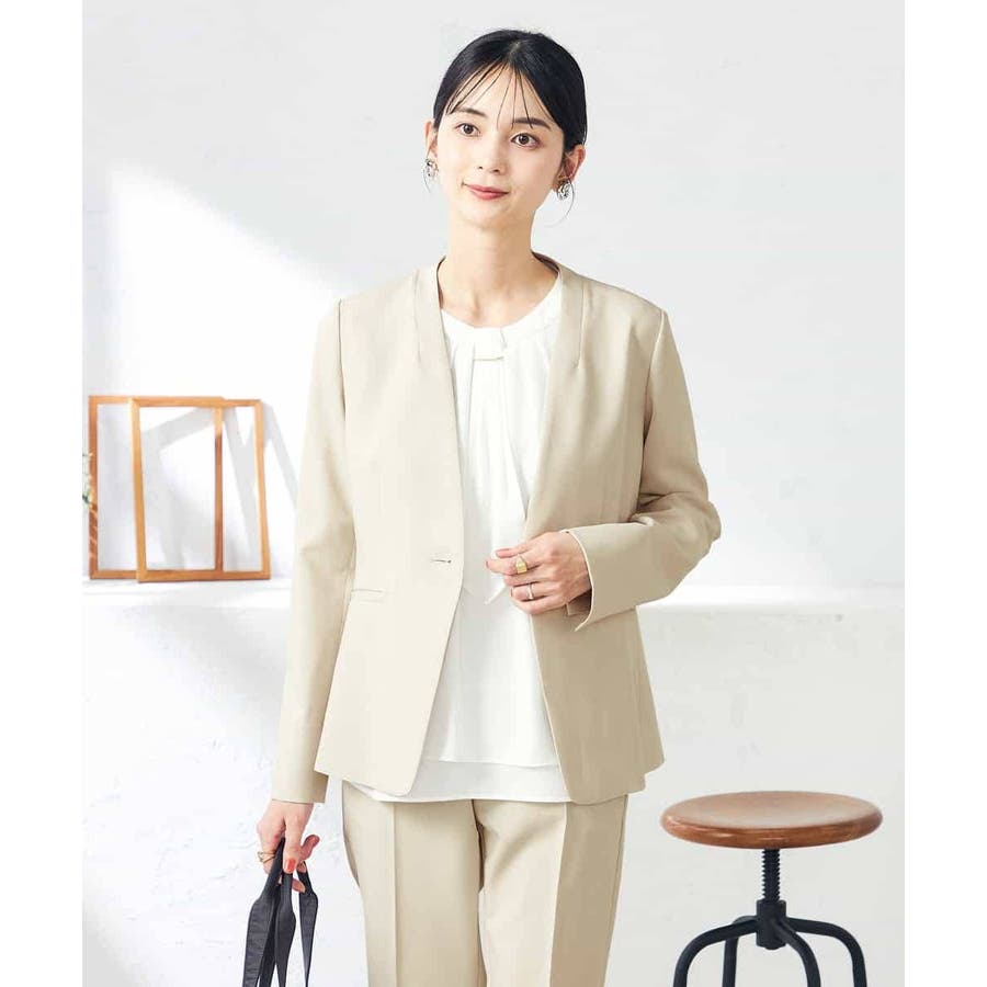【洗える/ストレッチ/UVカット】麻調ストレッチノーカラージャケット