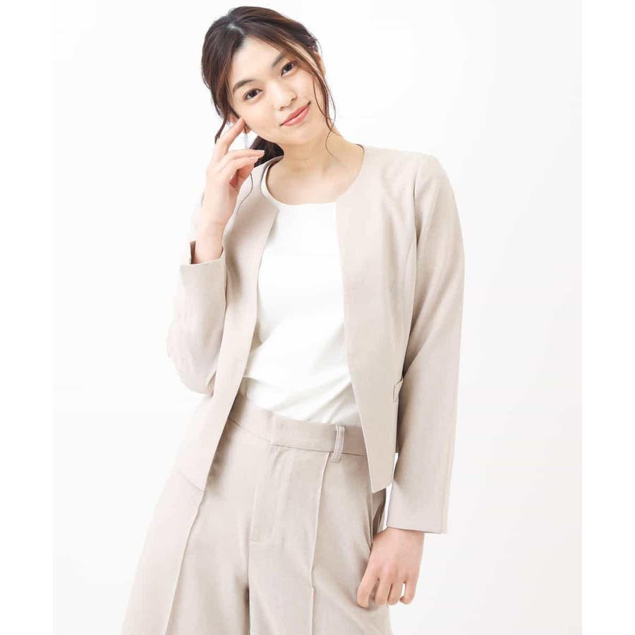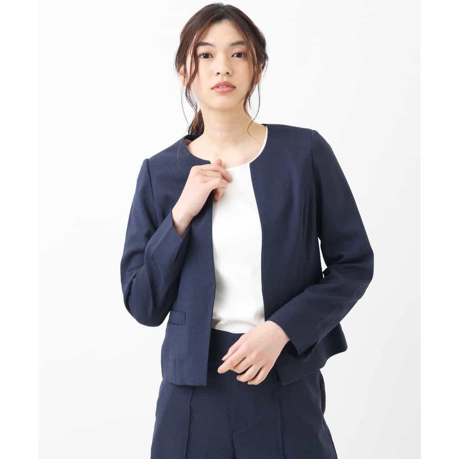 【セットアップ対応/洗える】リネンライクキーネックジャケット