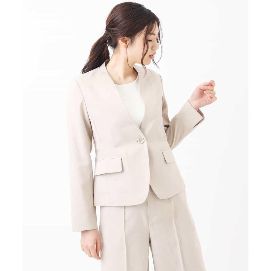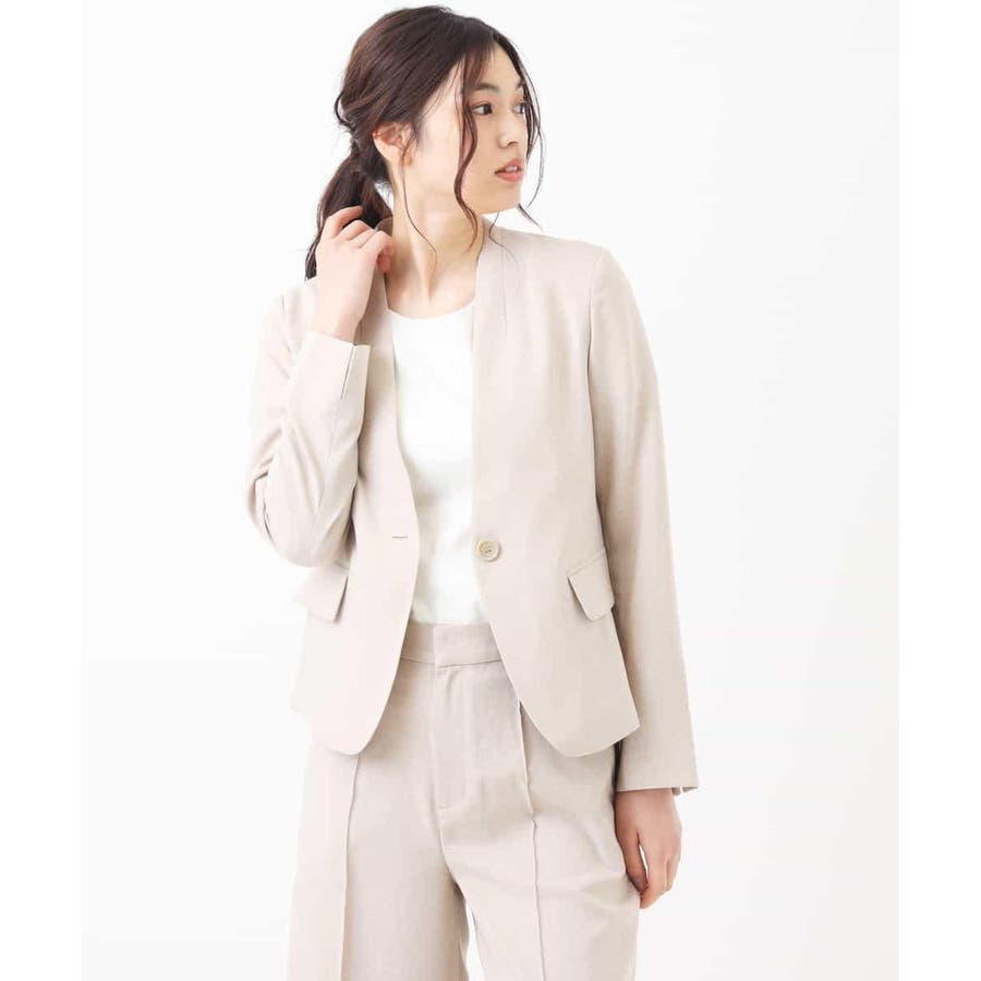 【セットアップ対応/洗える】リネンライクVネックジャケット