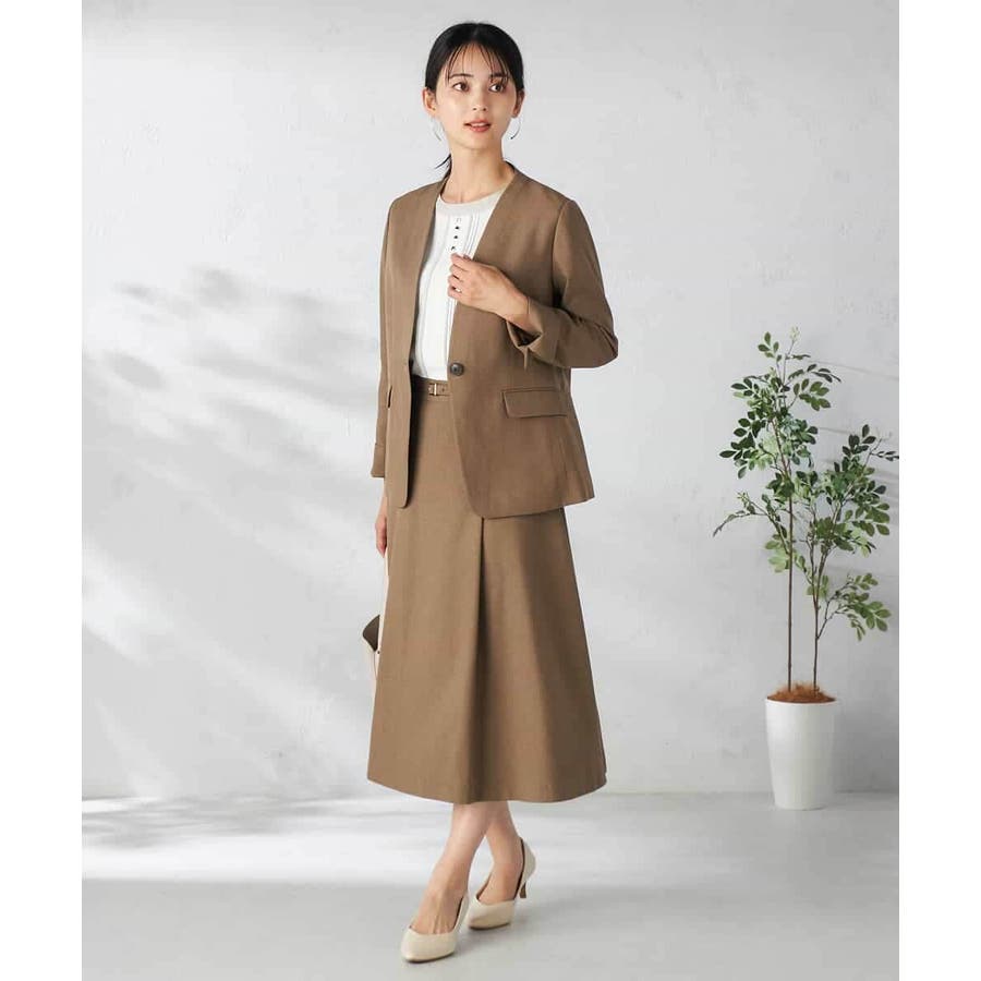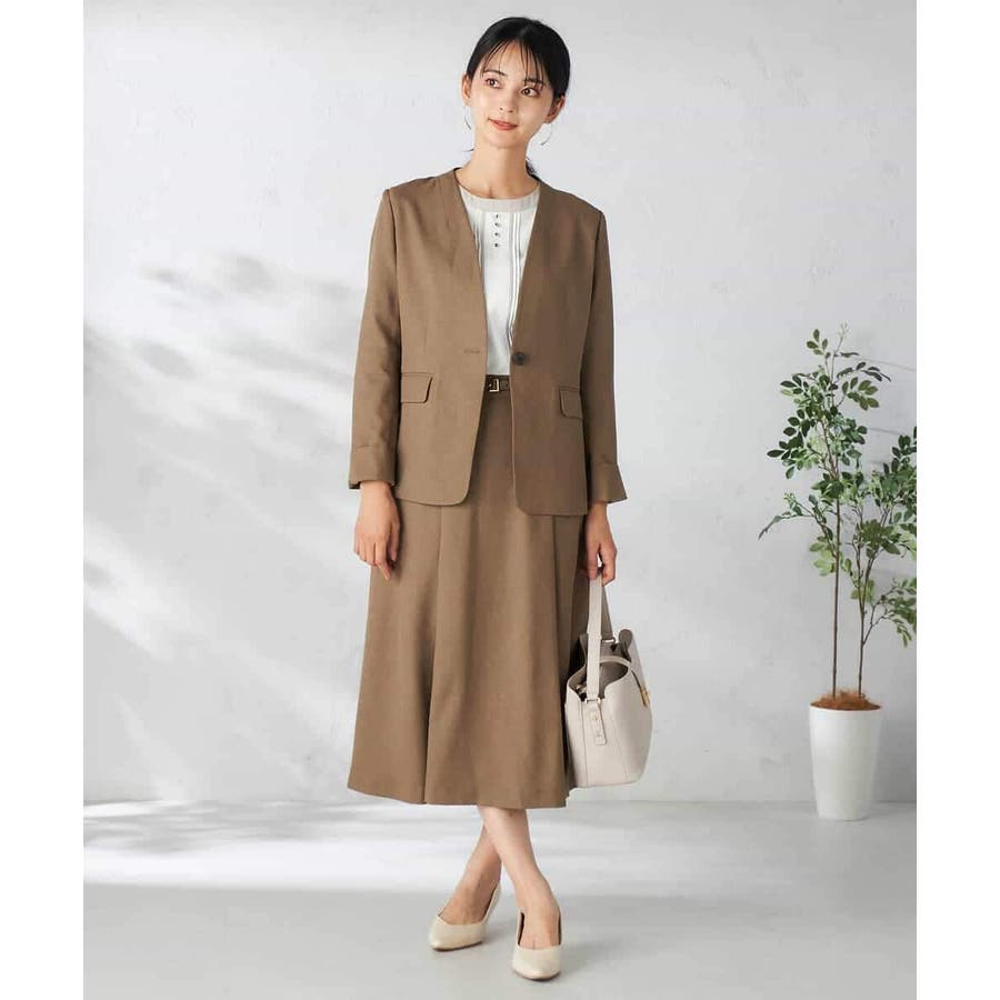 同素材ボトムとのセットアップ着用できれいめお仕事スタイルが完成。