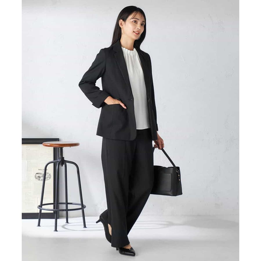 同素材ボトムとのセットアップ着用できれいめお仕事スタイルが完成。