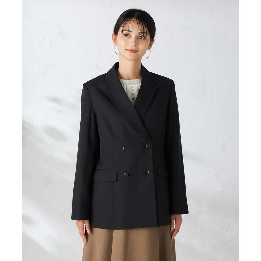 【洗える/イージーケア/吸水速乾/ストレッチ】梳毛調ダブルブレストジャケット