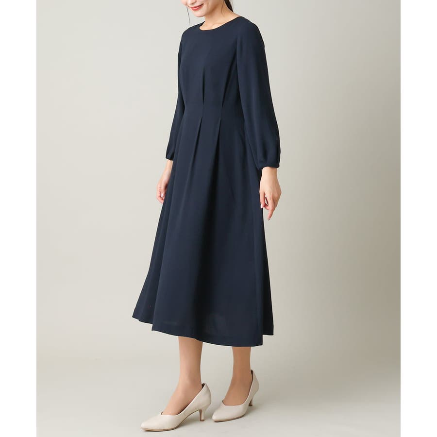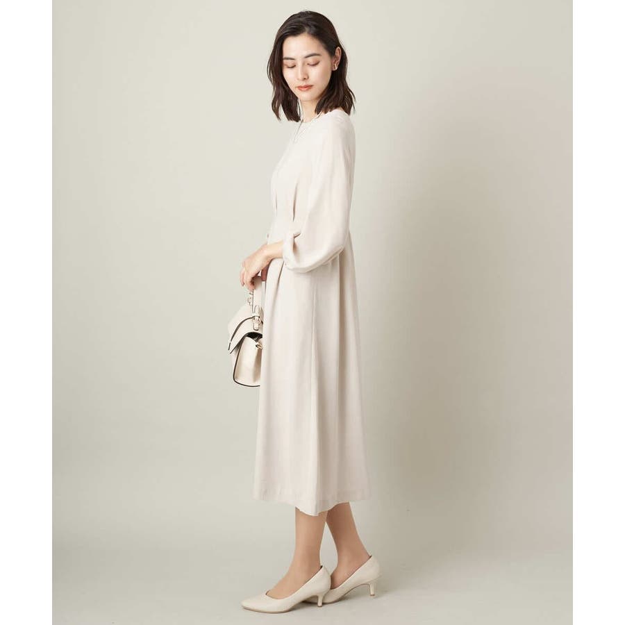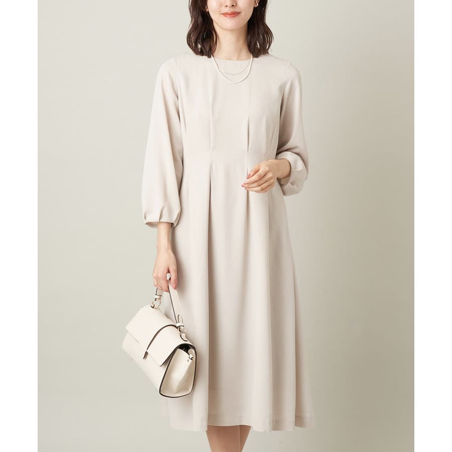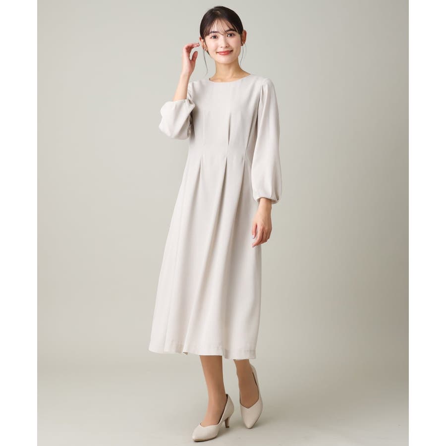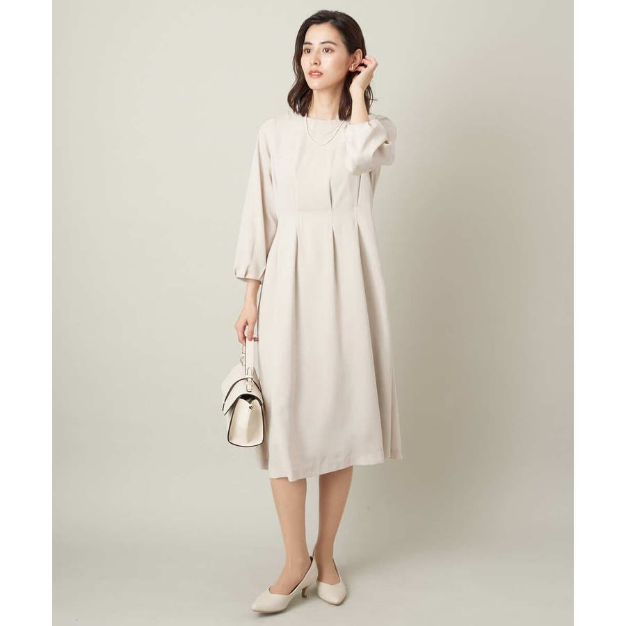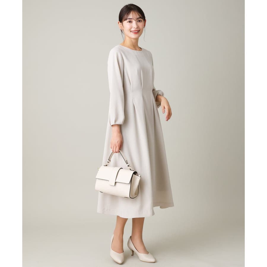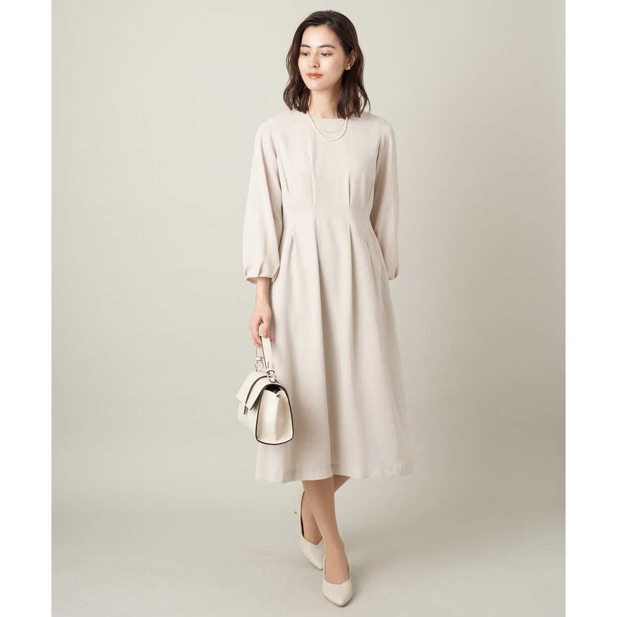 ・ウエストにタックを入れてメリハリのある上品なシルエットに仕上げたワンピース。
