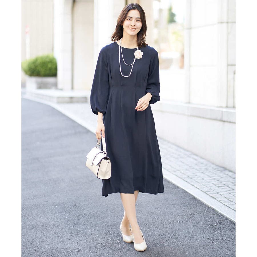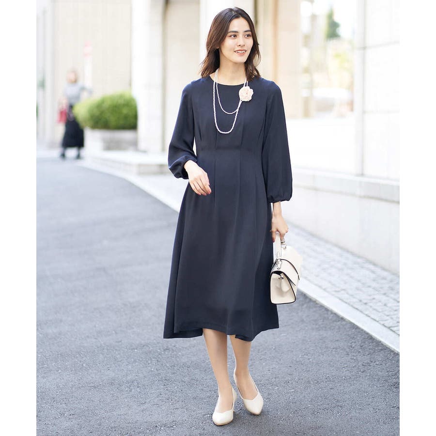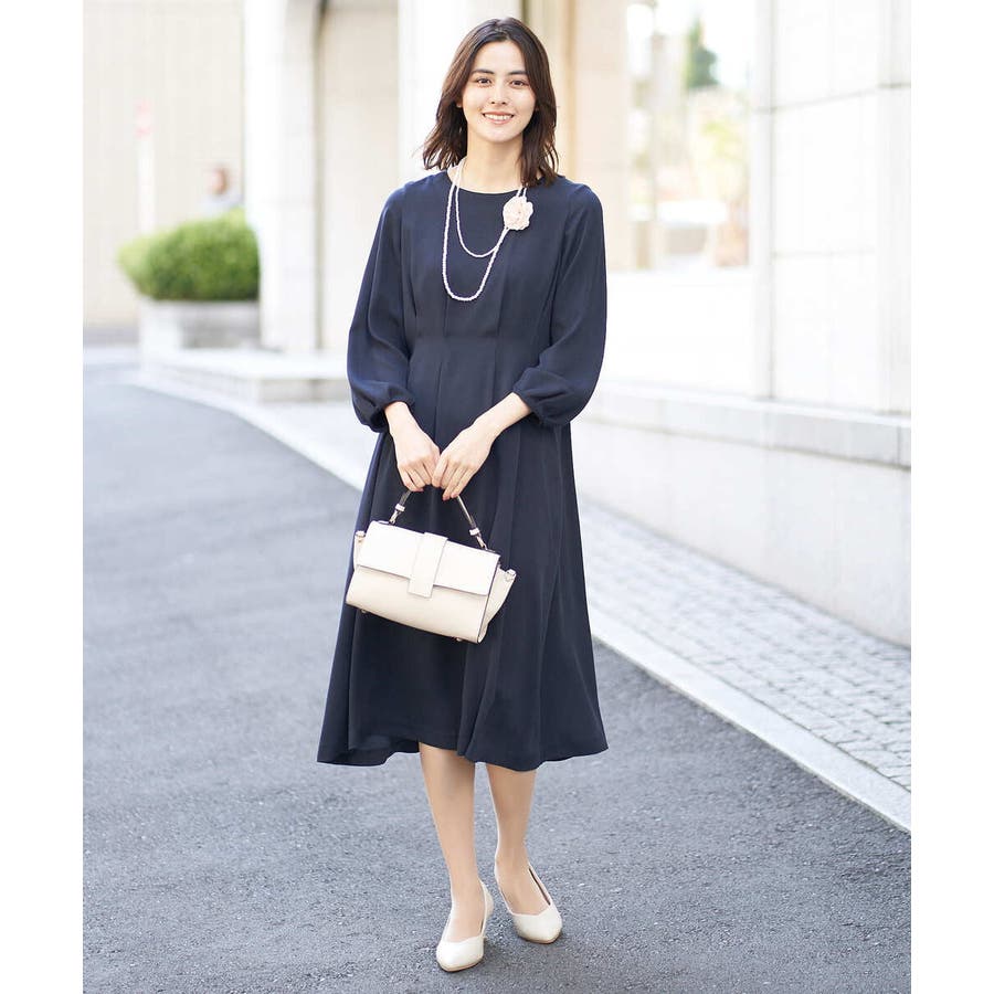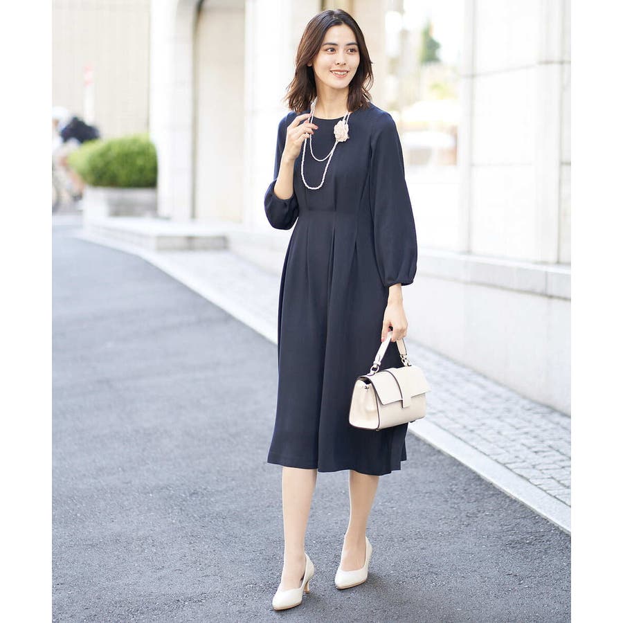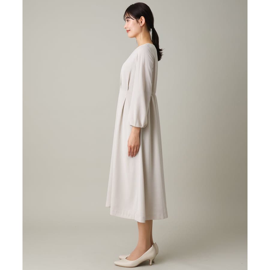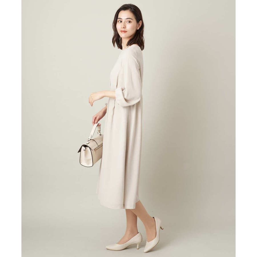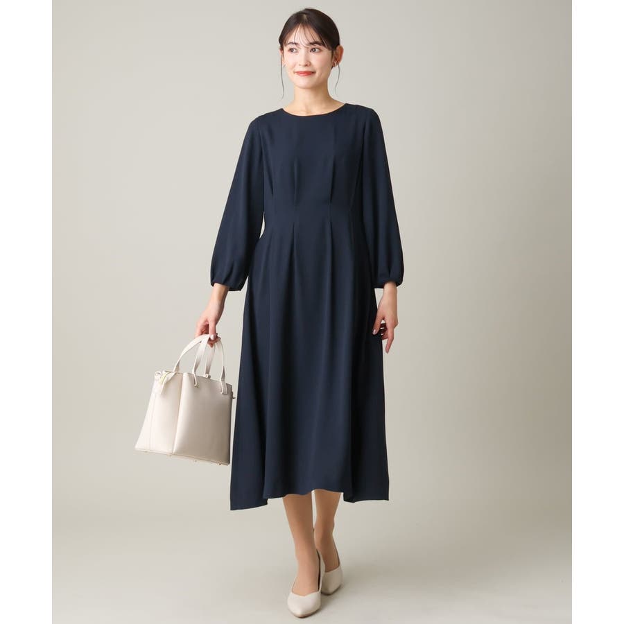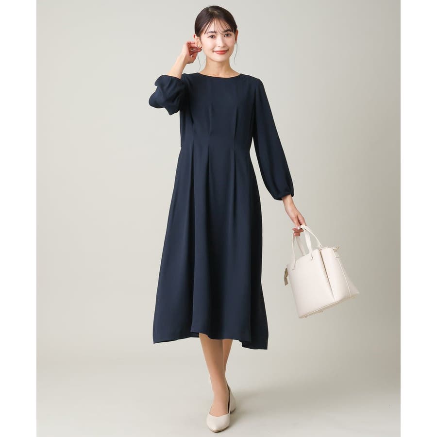 ・ウエストにタックを入れてメリハリのある上品なシルエットに仕上げたワンピース。