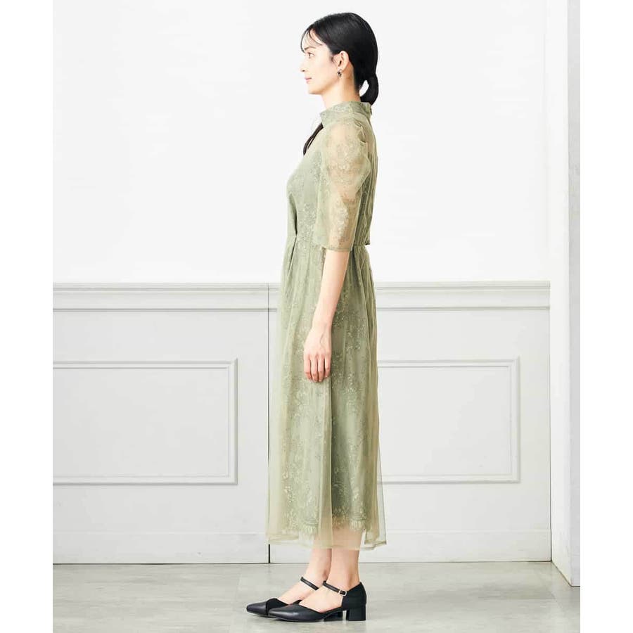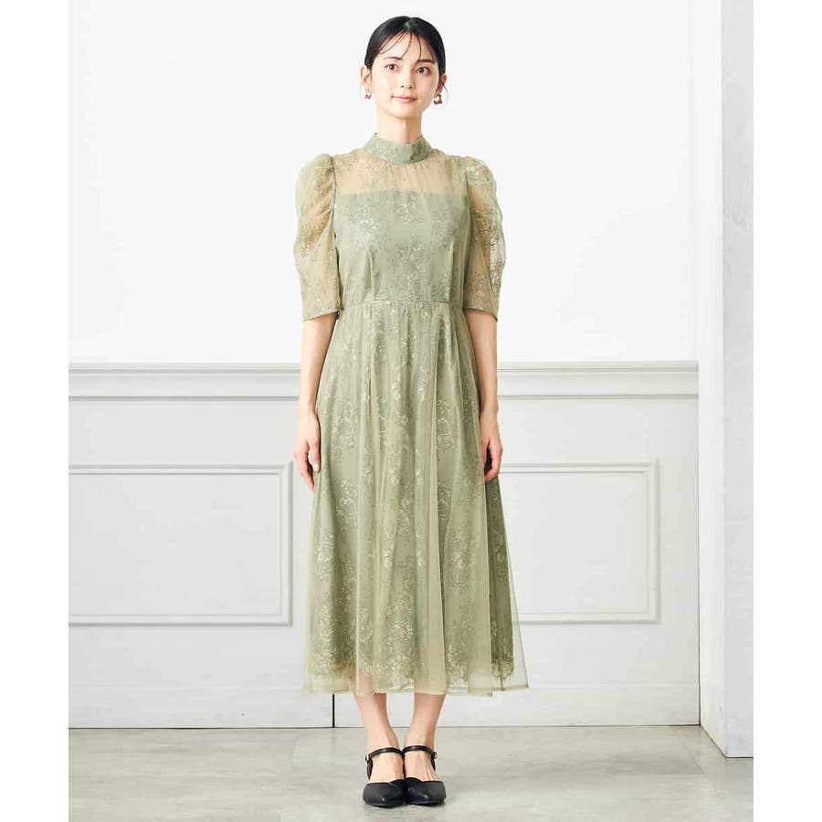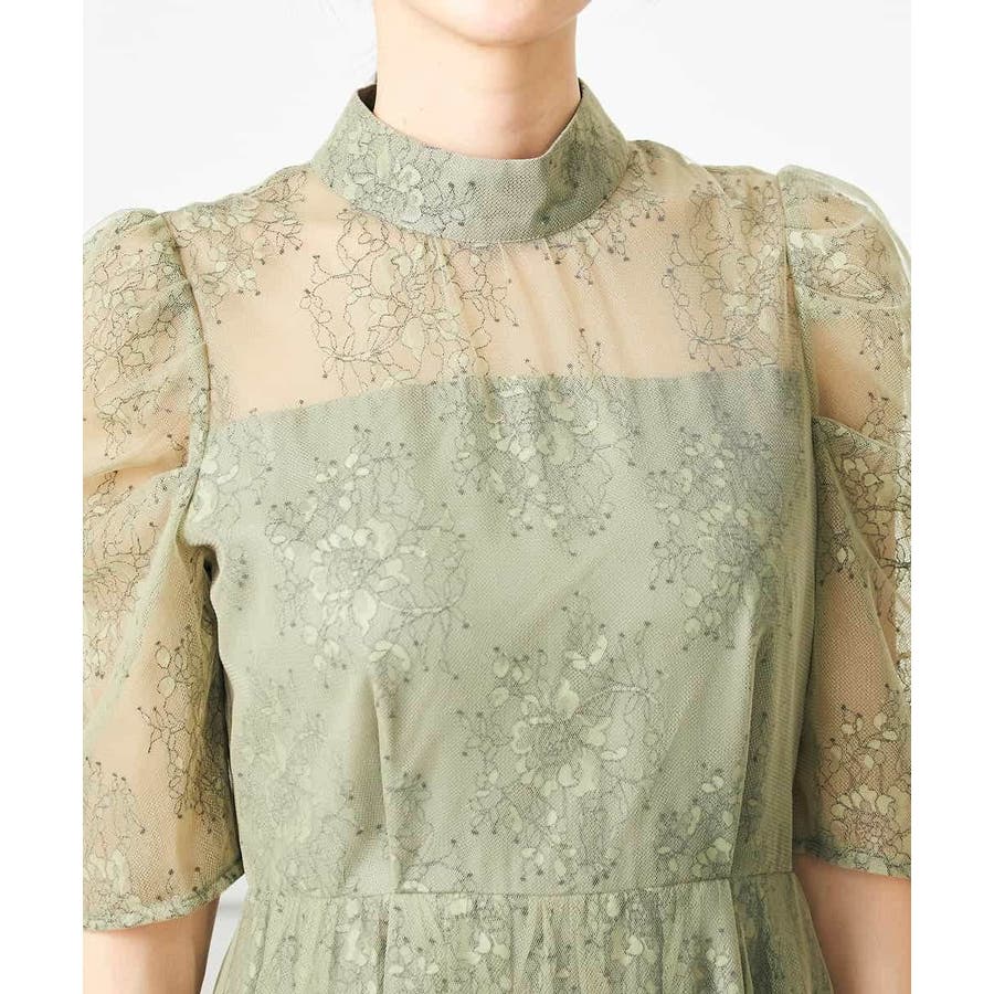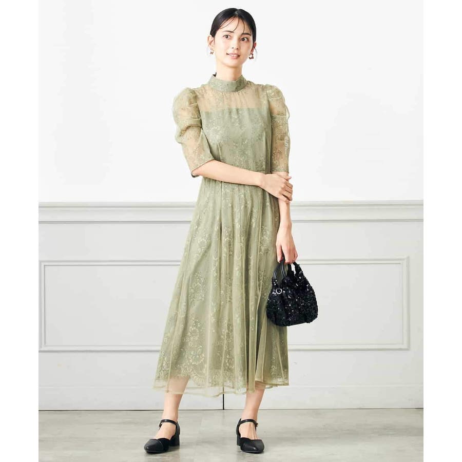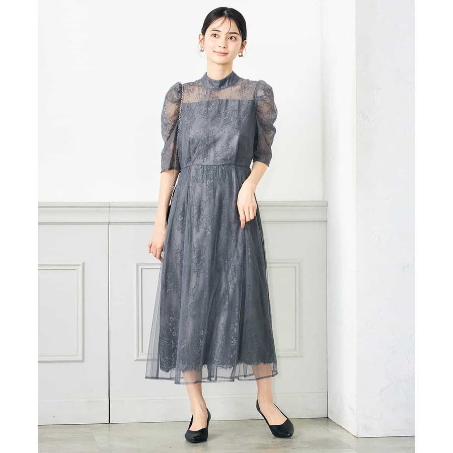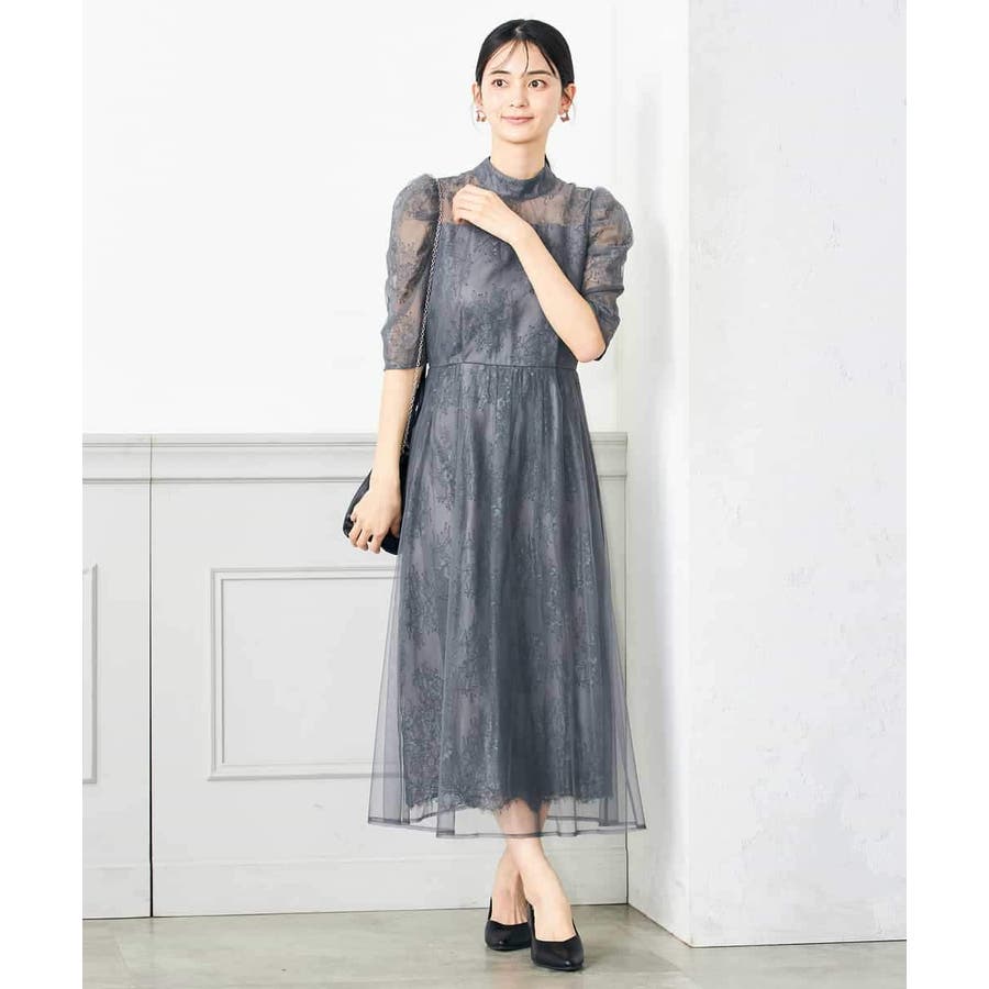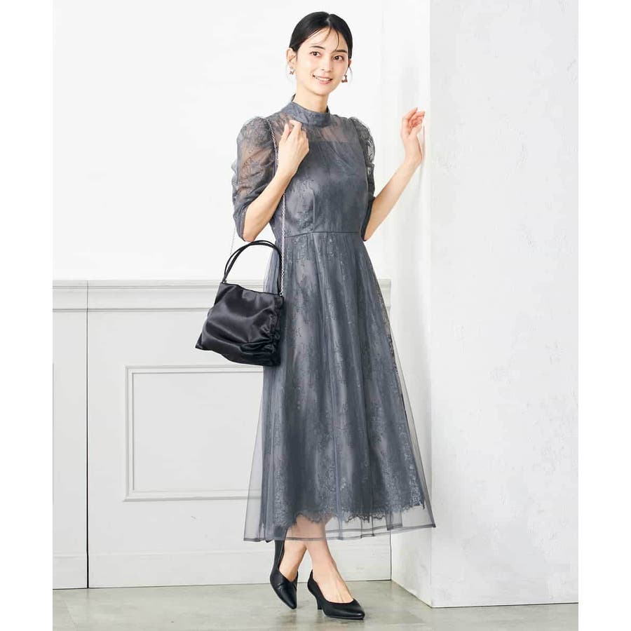 ・繊細なチュールレースの上に無地のチュールを重ねた2素材使いのワンピース